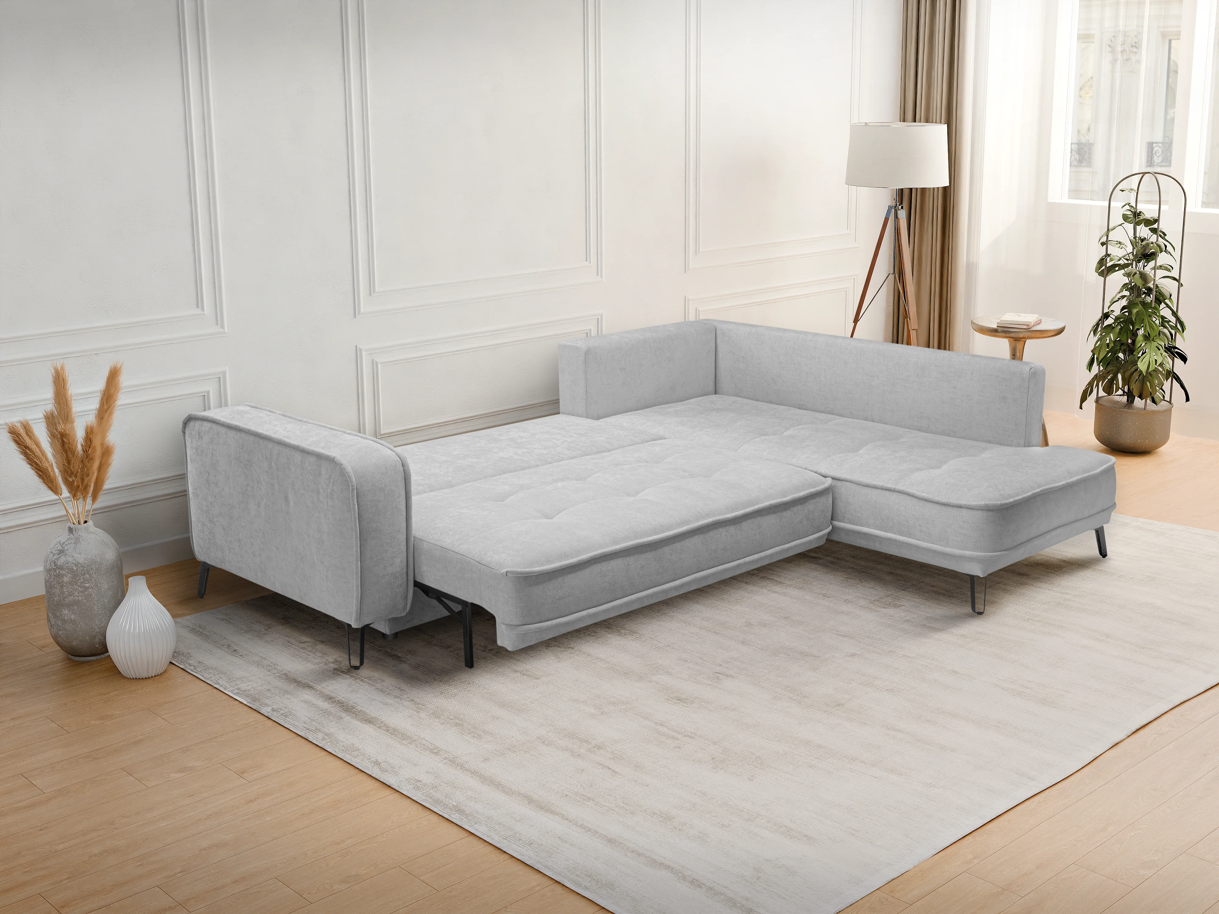 Canapé d'angle droit convertible en tissu gris clair BALCORIA de Maison Céphy