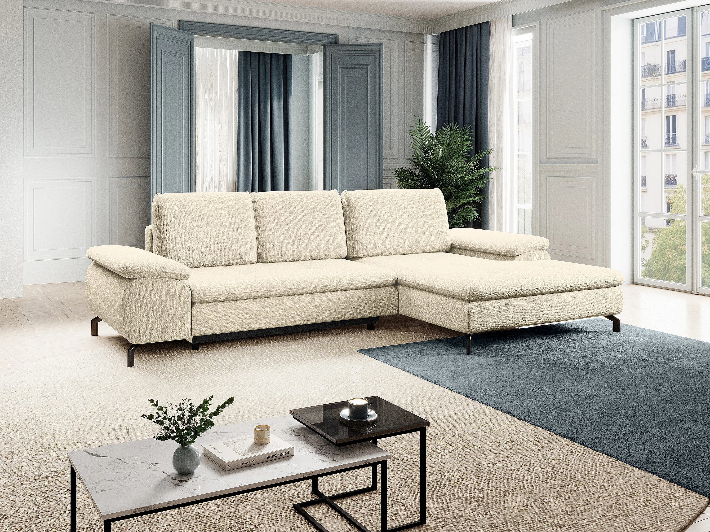 Canapé d'angle droit convertible en tissu texturé beige ARCHIBALD