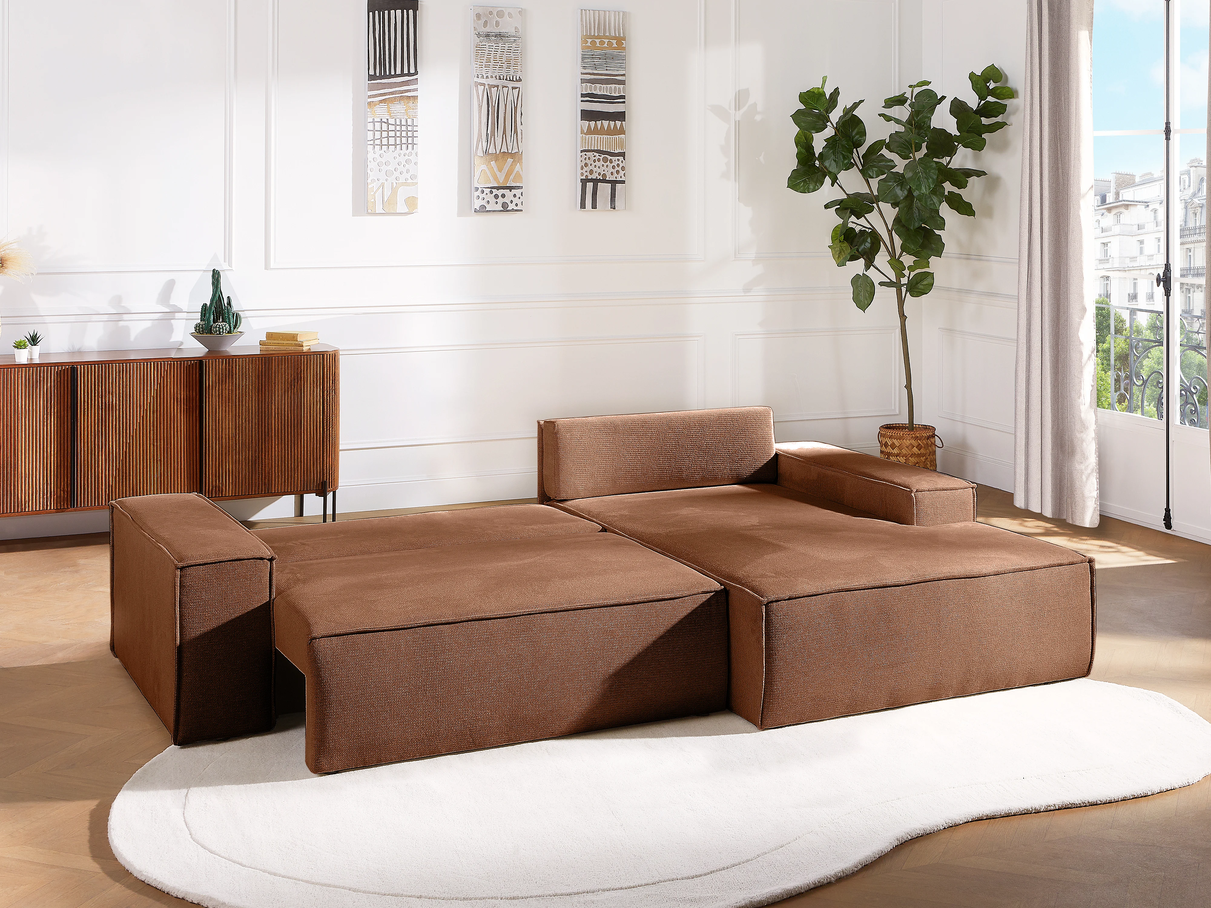 Canapé d'angle droit convertible en tissu texturé terracotta AMELIA
