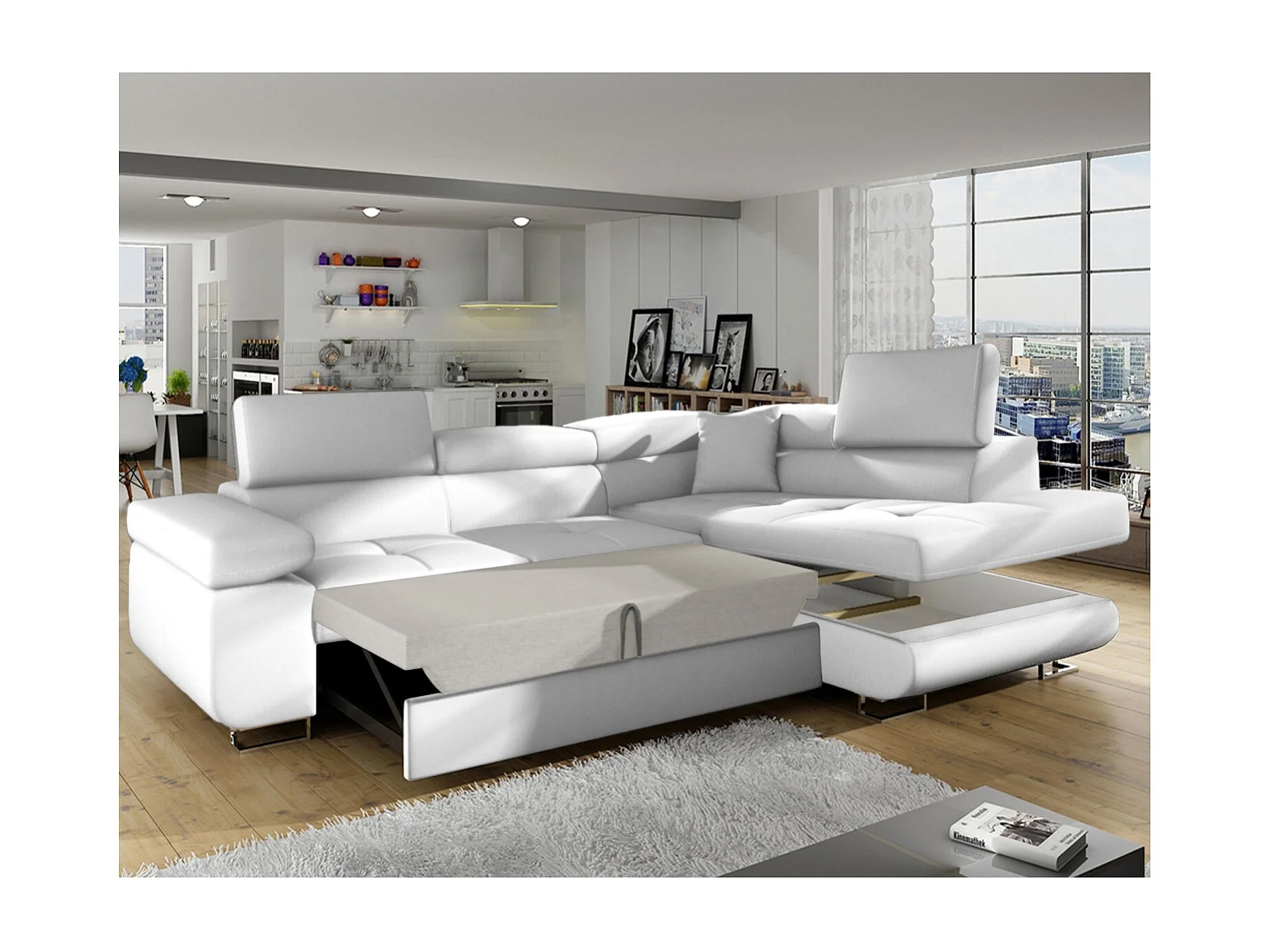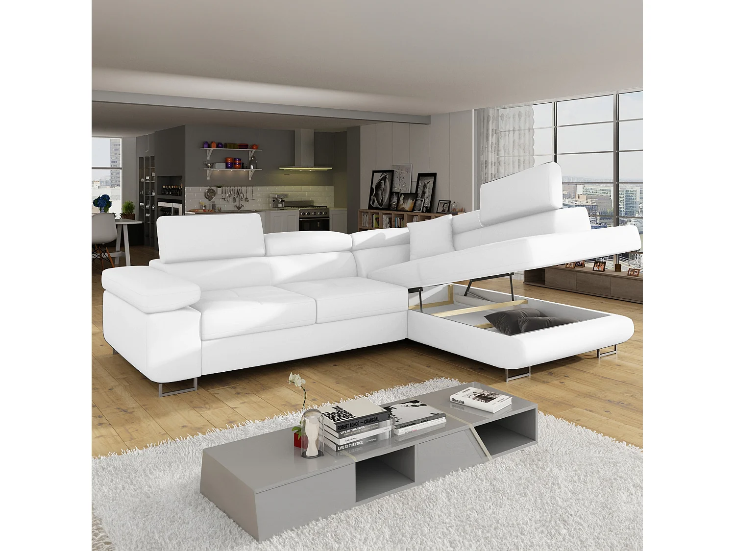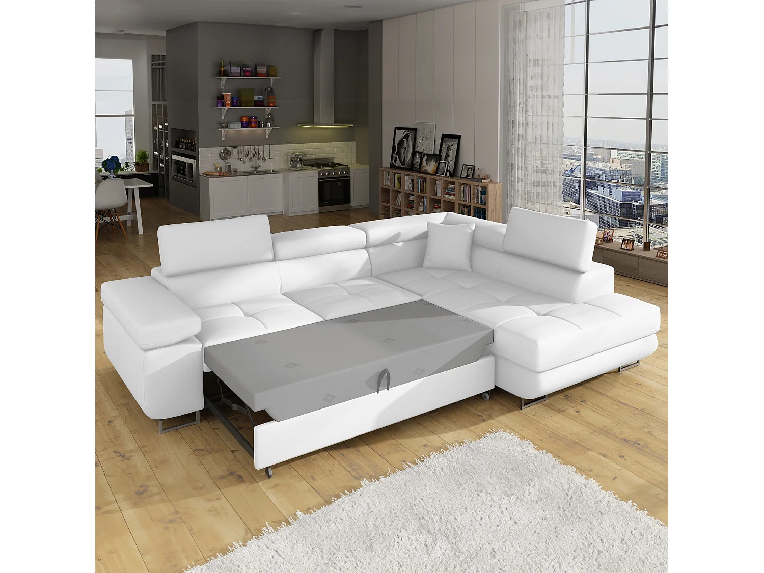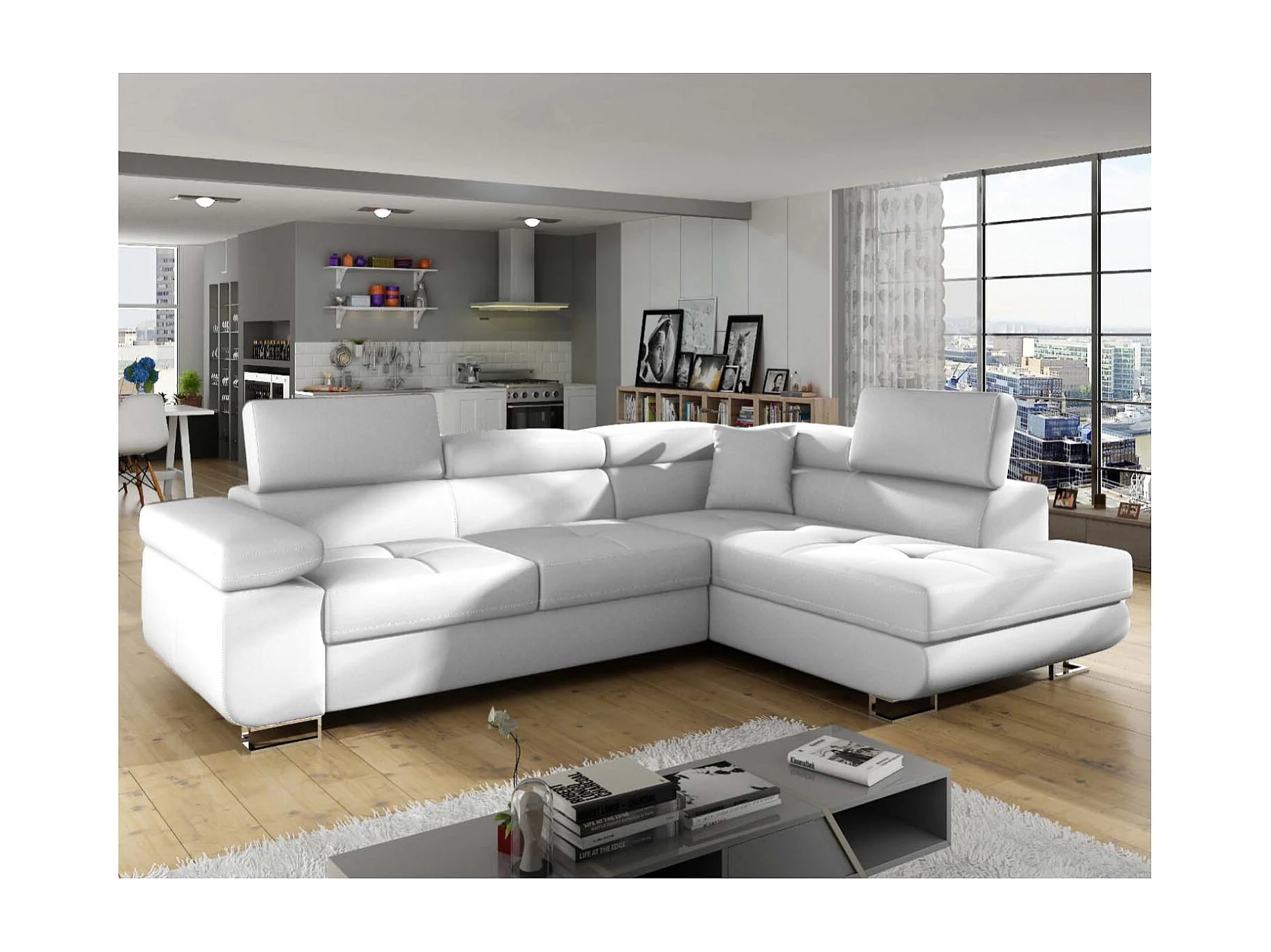 Canapé d'angle droit convertible Marius Simili Blanc