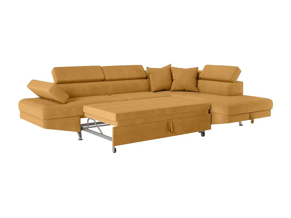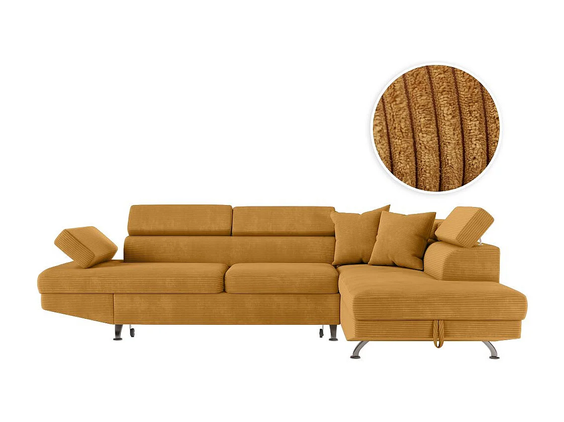 Canapé d'angle droit convertible RIO 5 places avec coffre de rangement en velours côtelé - Jaune