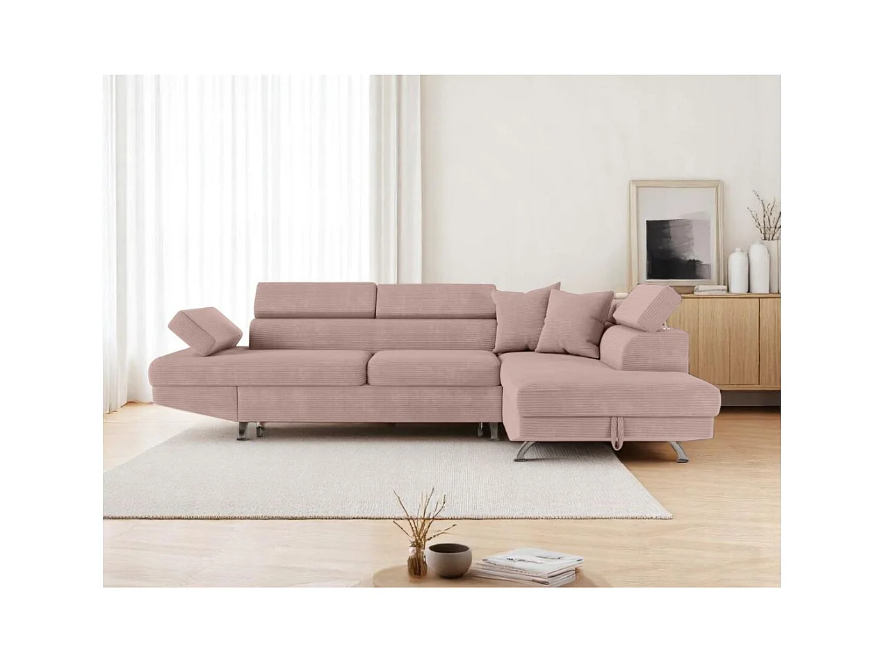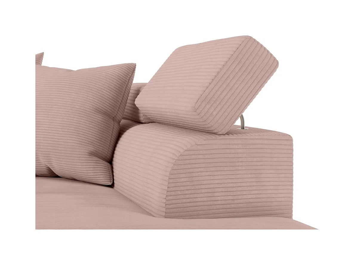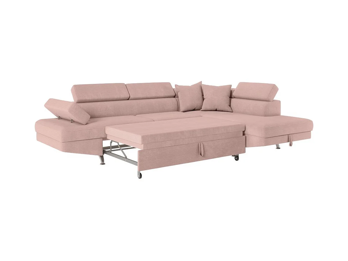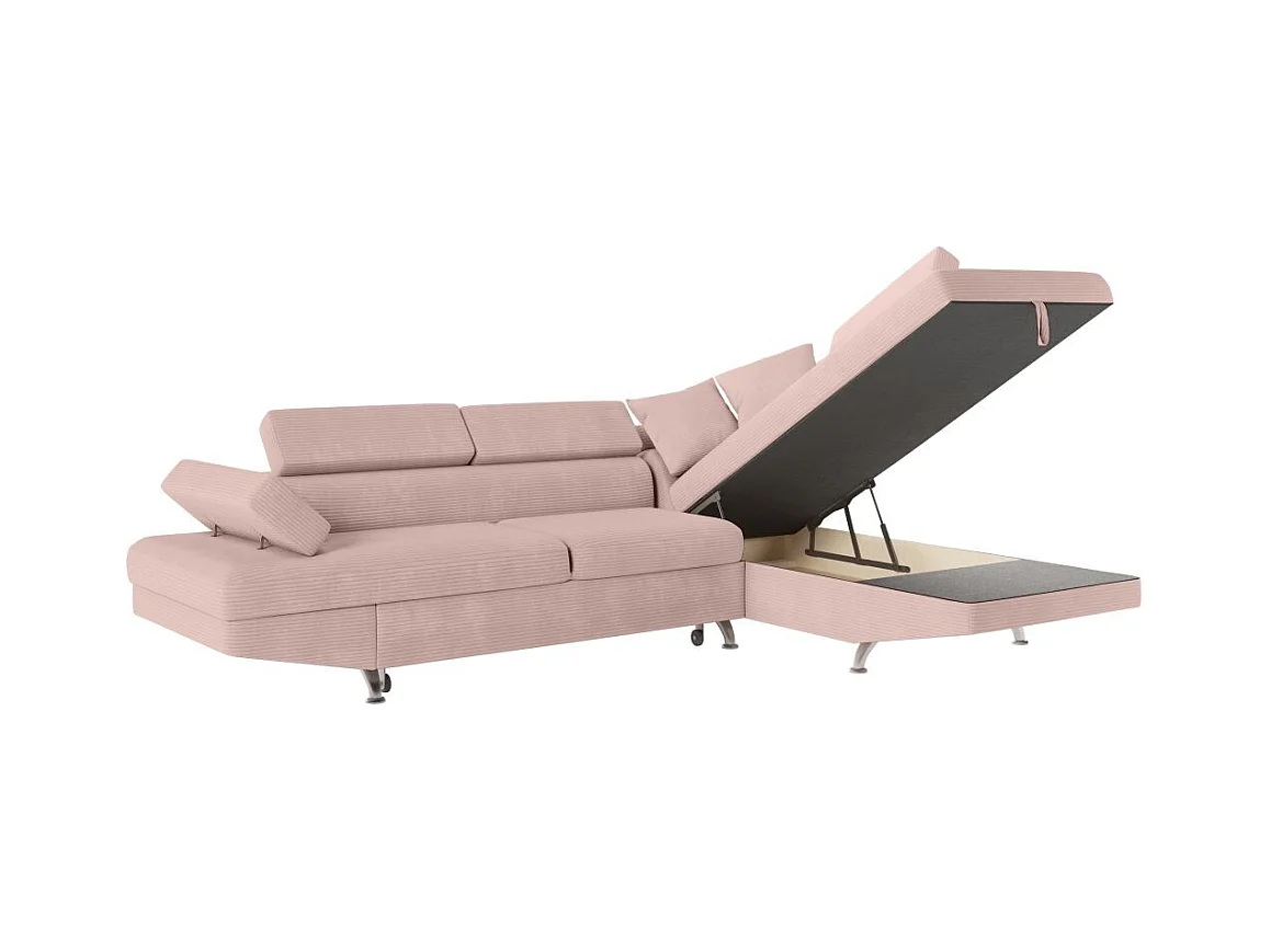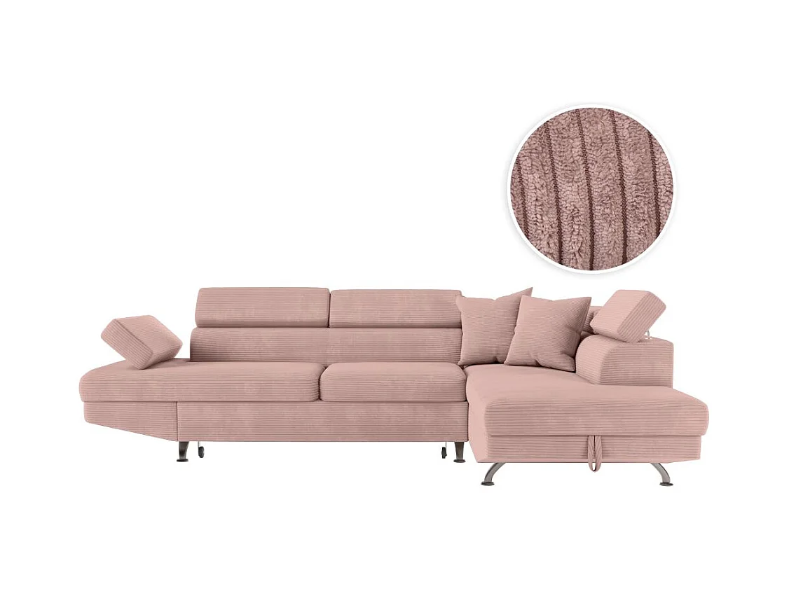 Canapé d'angle droit convertible RIO 5 places avec coffre de rangement en velours côtelé vieux rose
