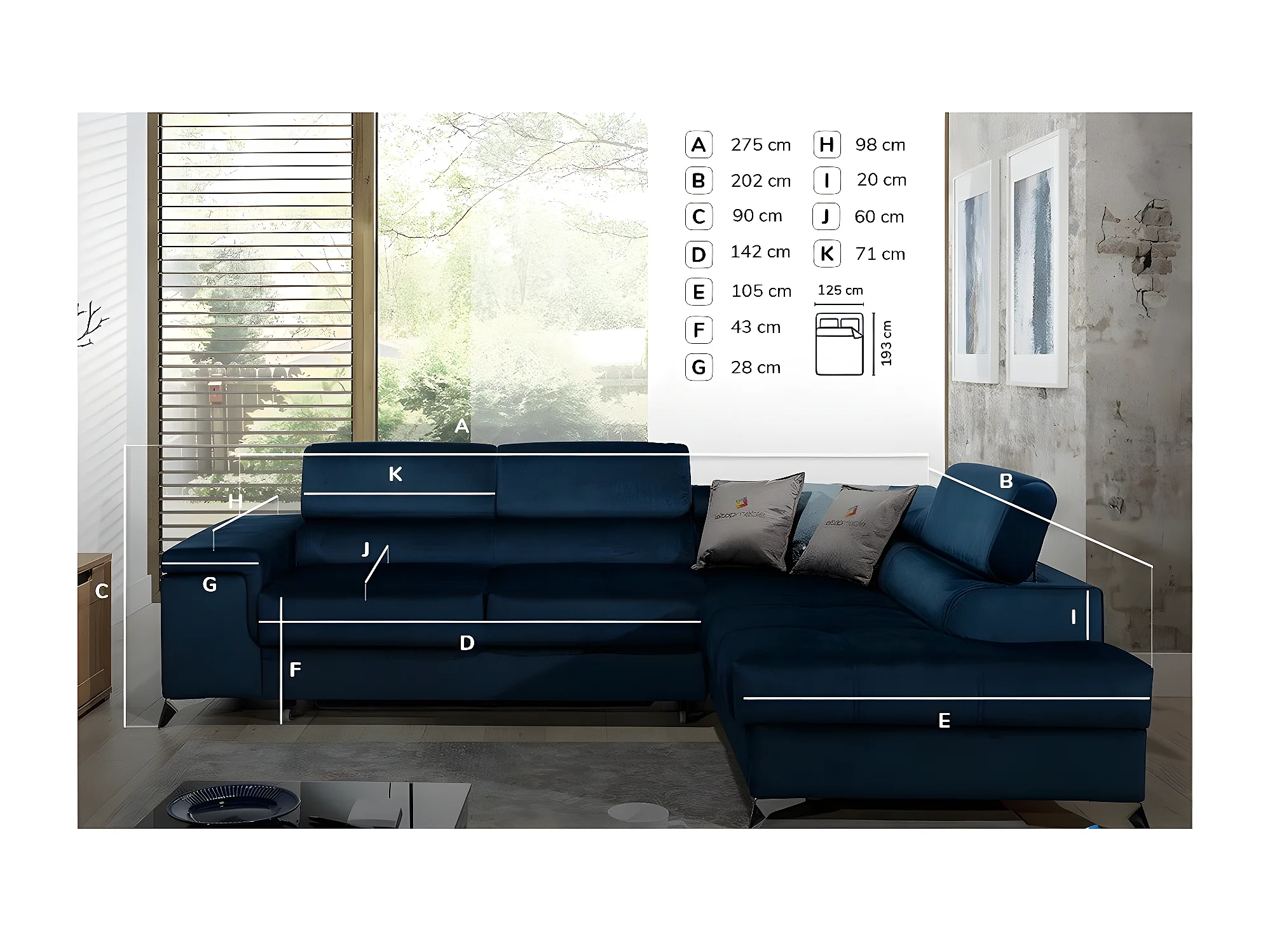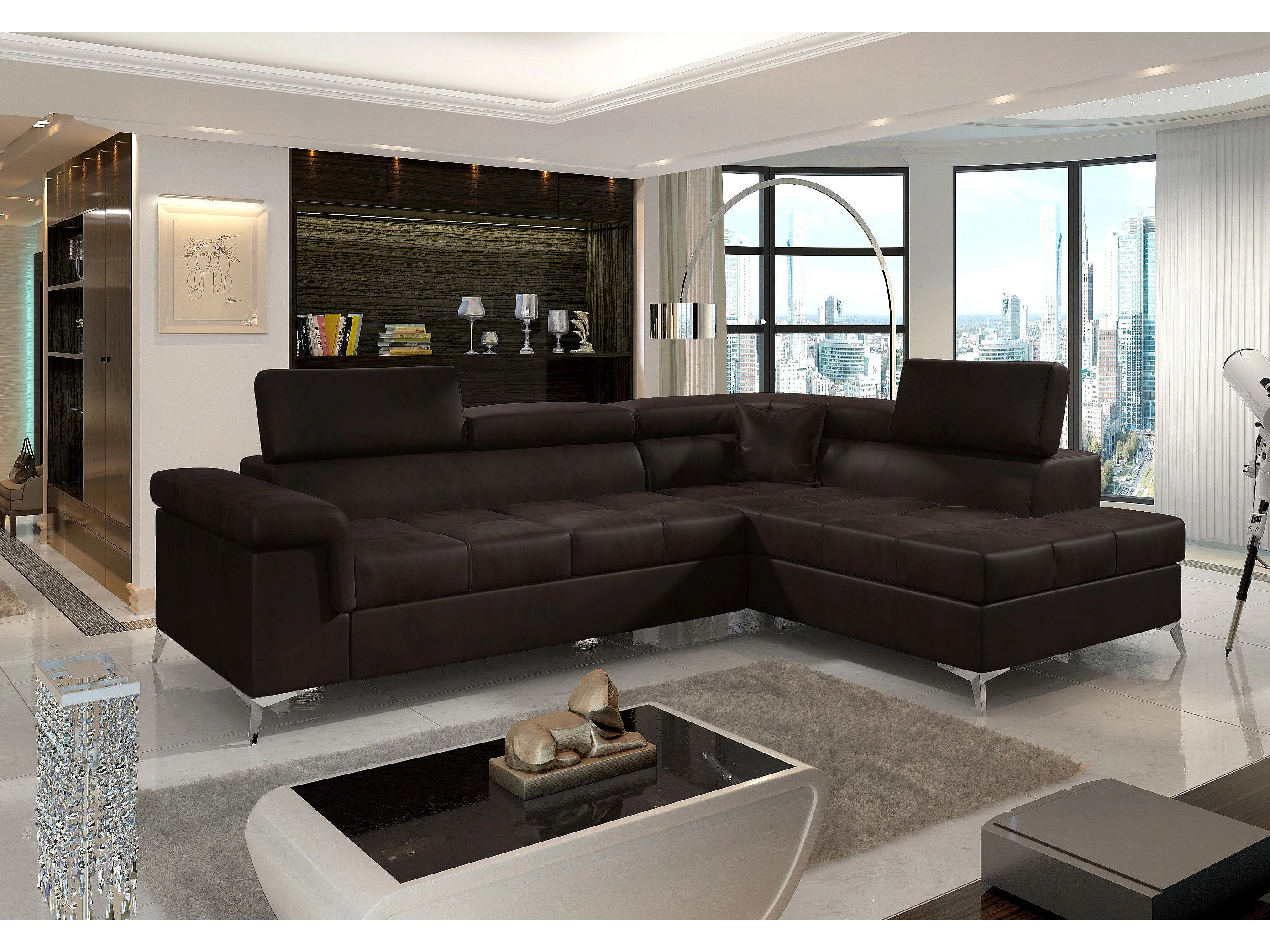 Canapé d'angle droit convertible velours marron foncé Marido 275cm