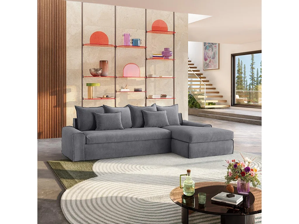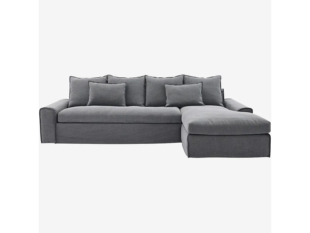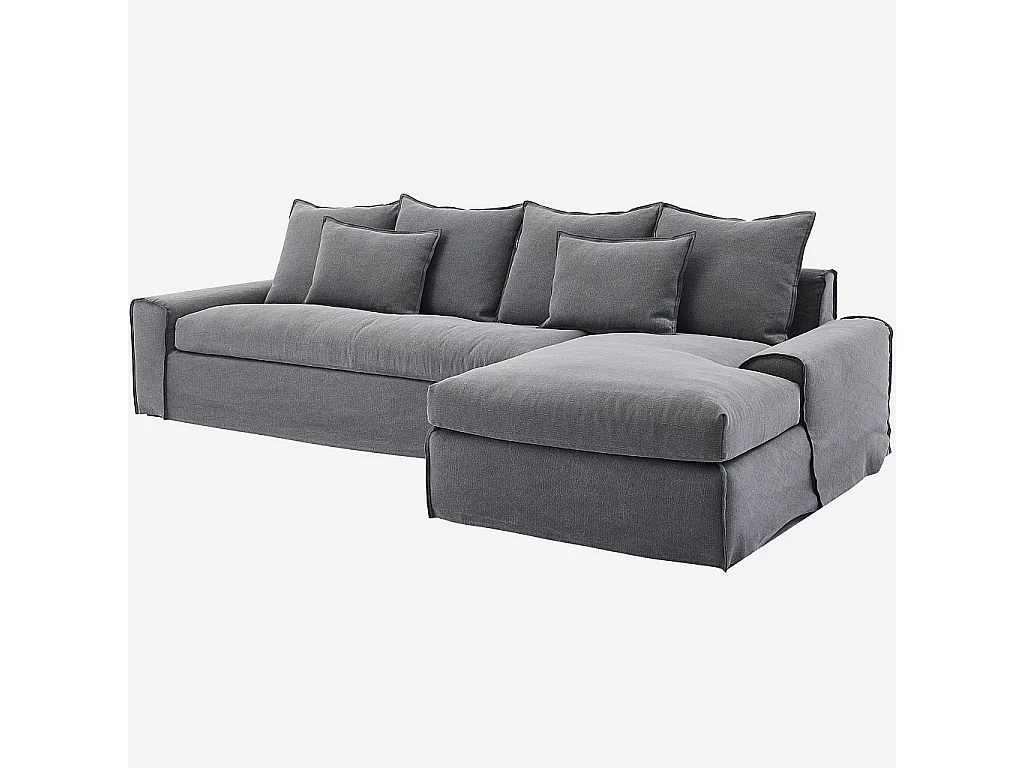 Habitat - Canapé d'angle droit déhoussable en coton et lin garni de plumes - Gris ardoise - Ginosa