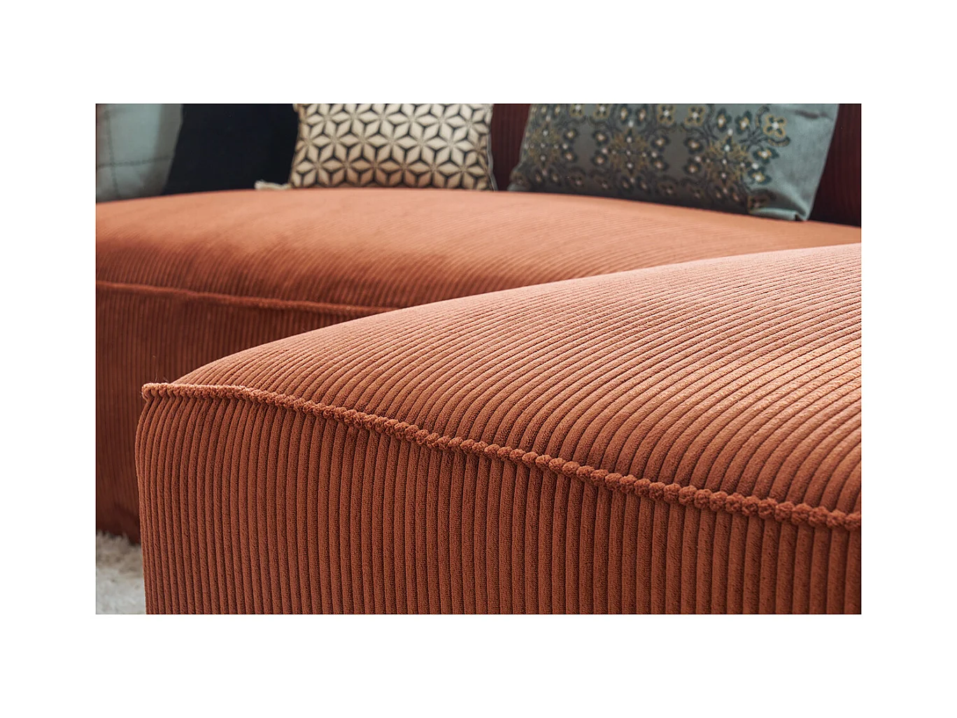 Canapé d'angle droit design en tissu velours côtelé terre brûlée 3-4 places PANAM