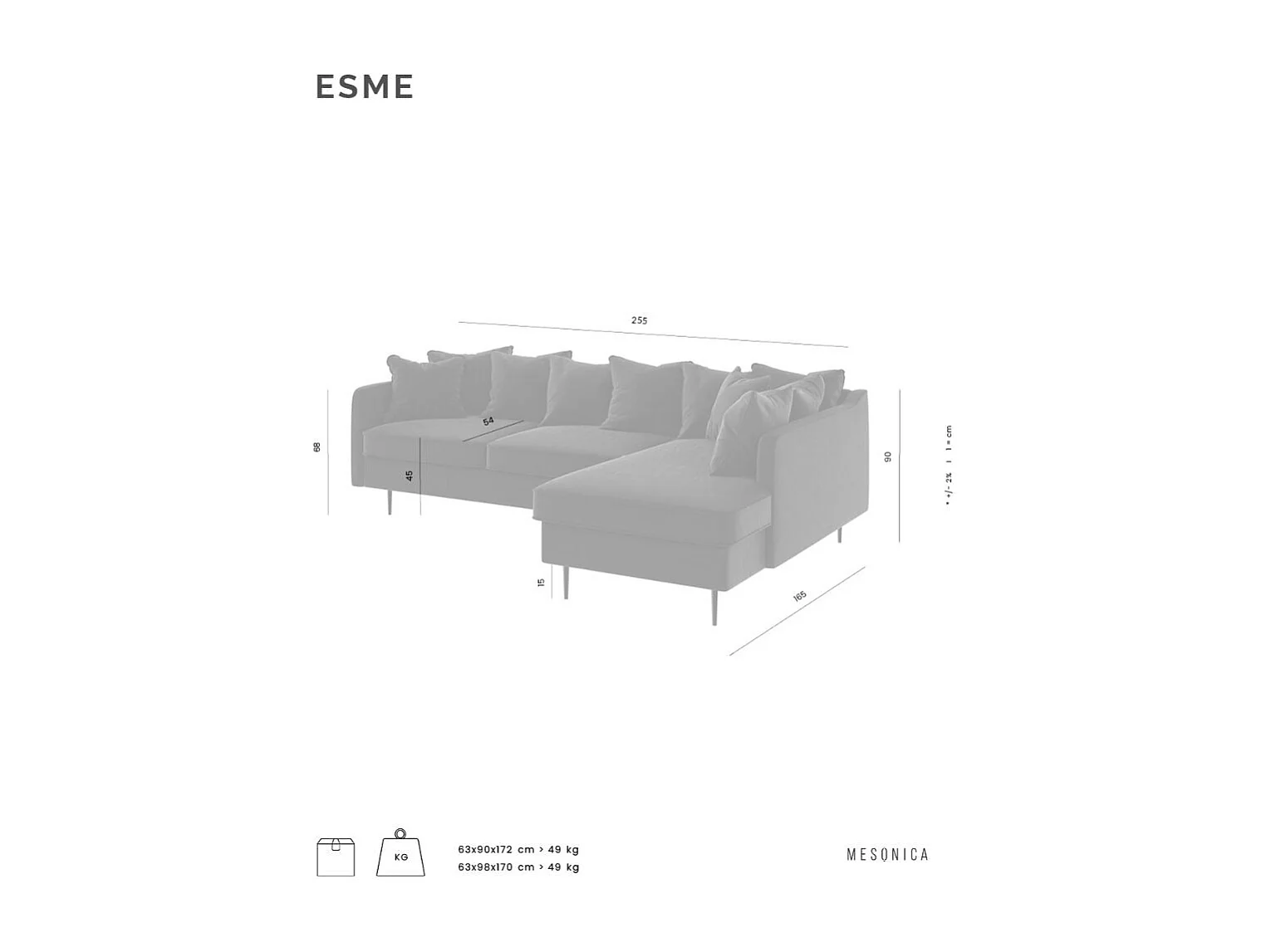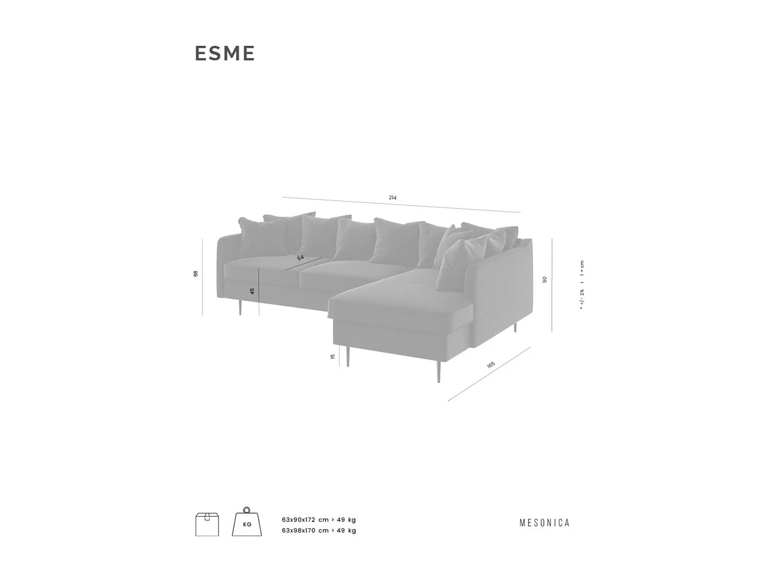 Canapé d'angle droit Esme - Gris clair
