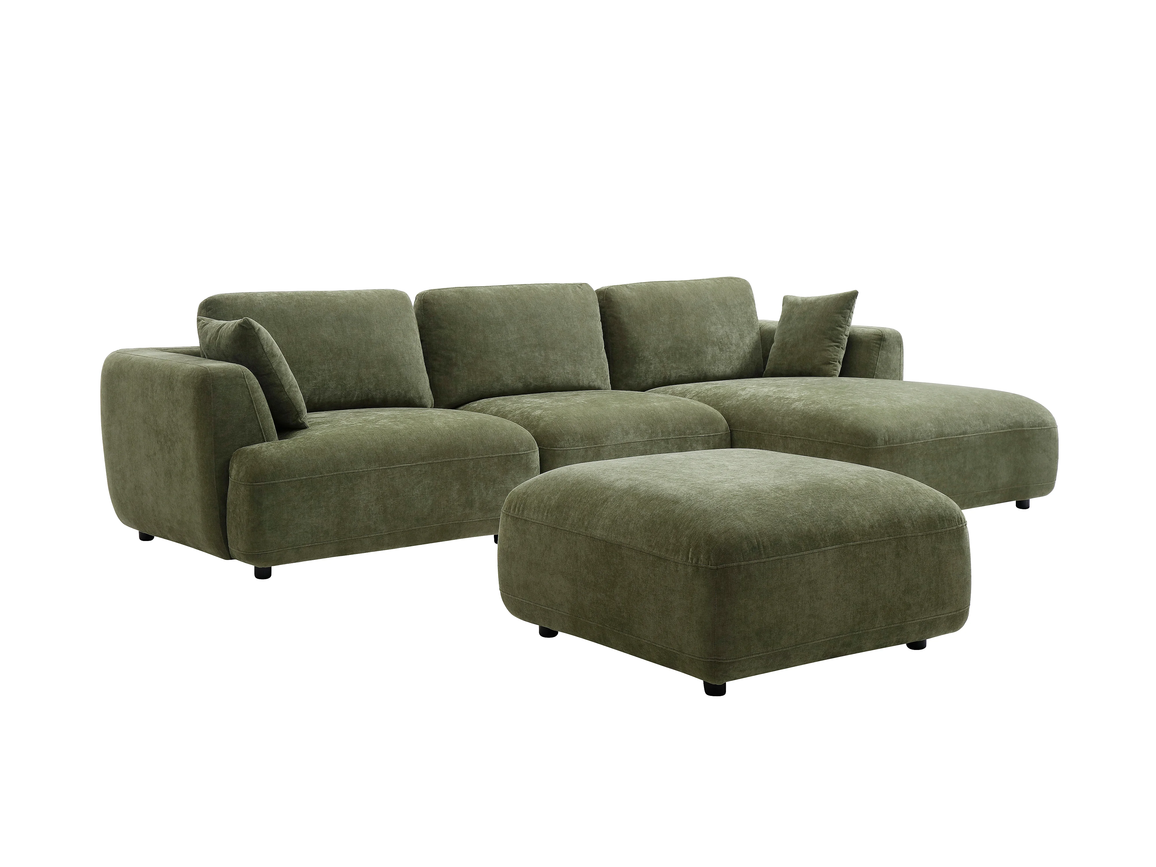 Canapé d'angle droit et pouf en tissu vert TINDRALO