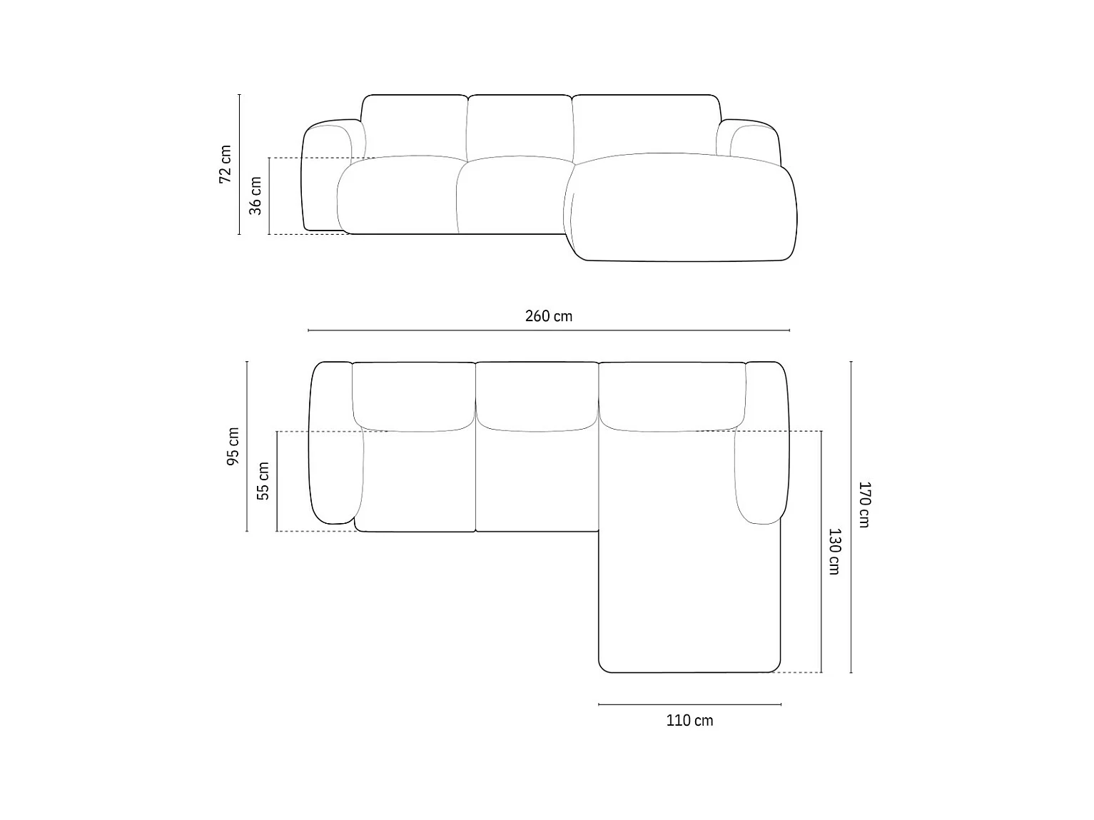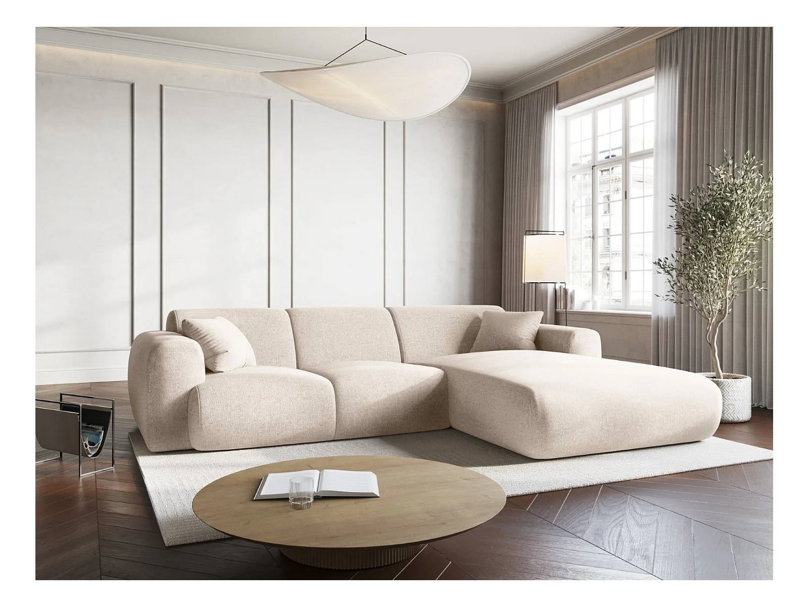 Cosmopolitan Design - Canapé d'angle droit "Nolio" 4 places en chenille beige clair - 260x170x72cm