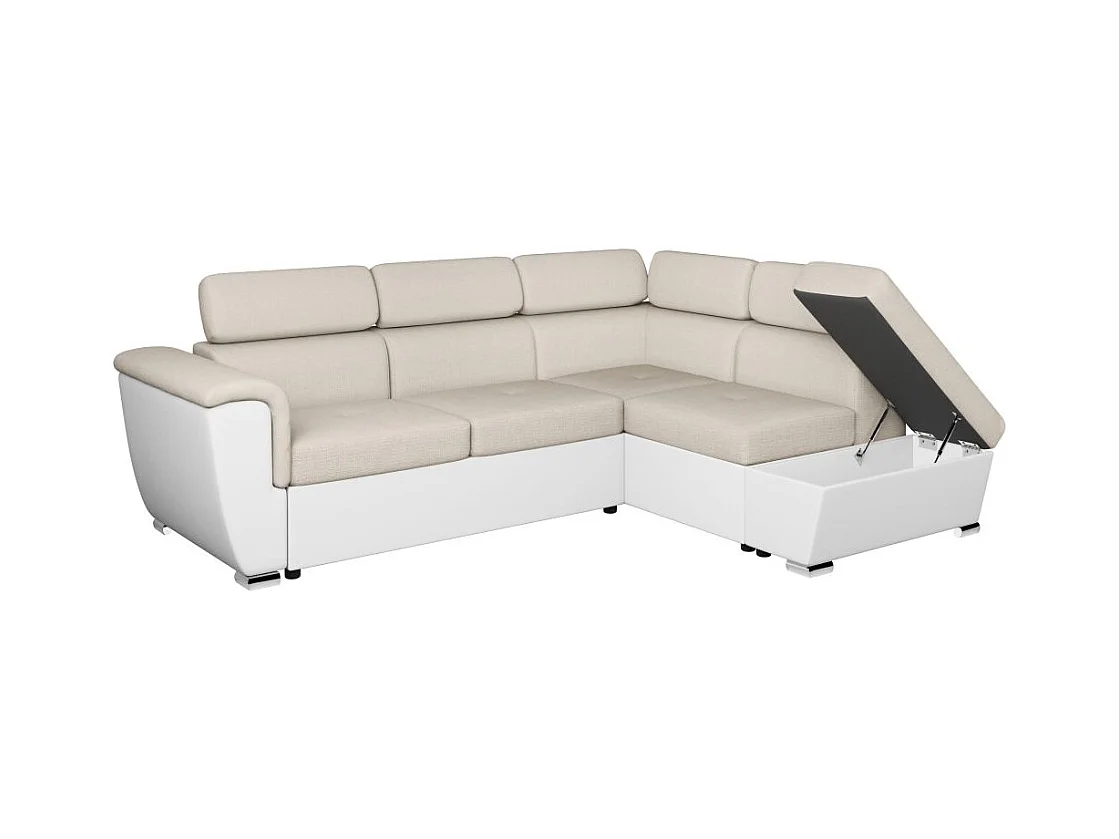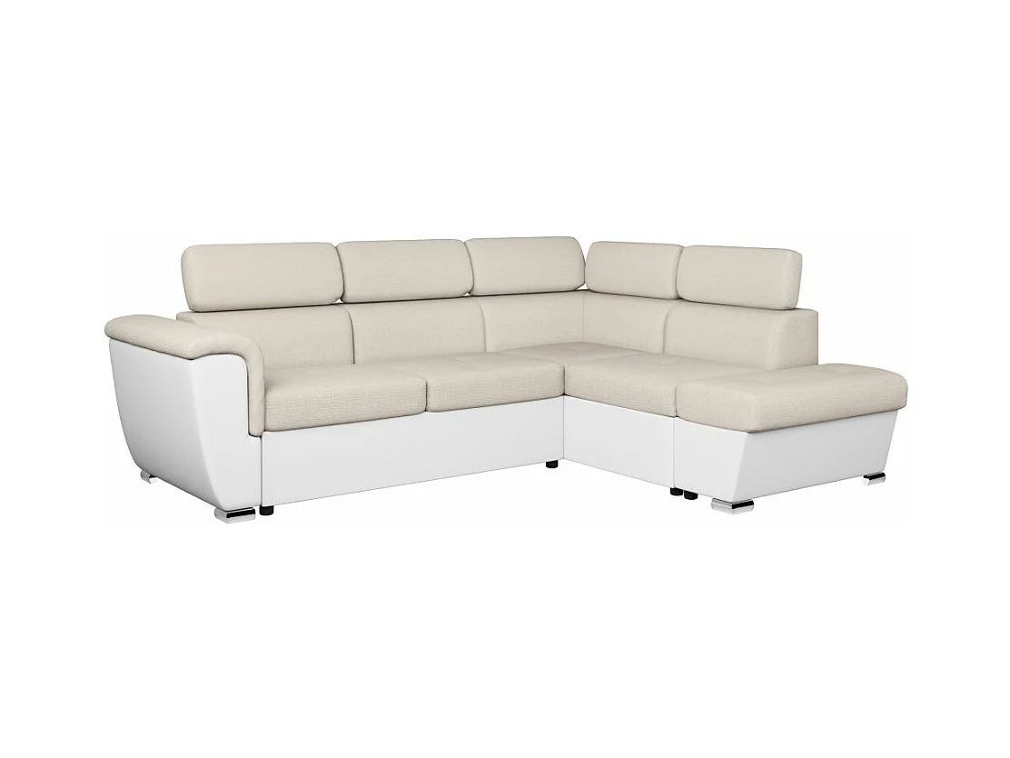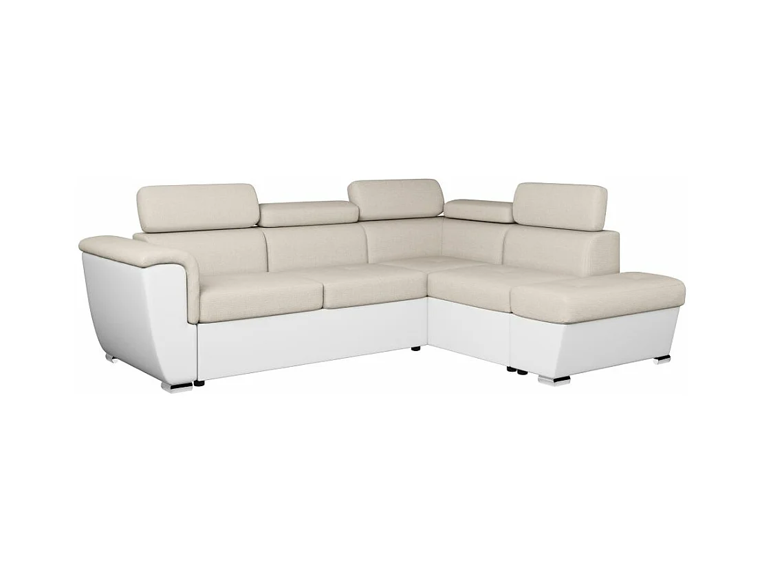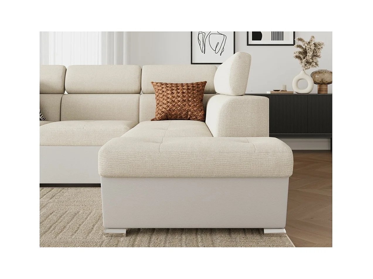 Canapé d'angle droit PAOLA convertible 4 places tissu Easy Clean antitache et simili - Beige/Blanc