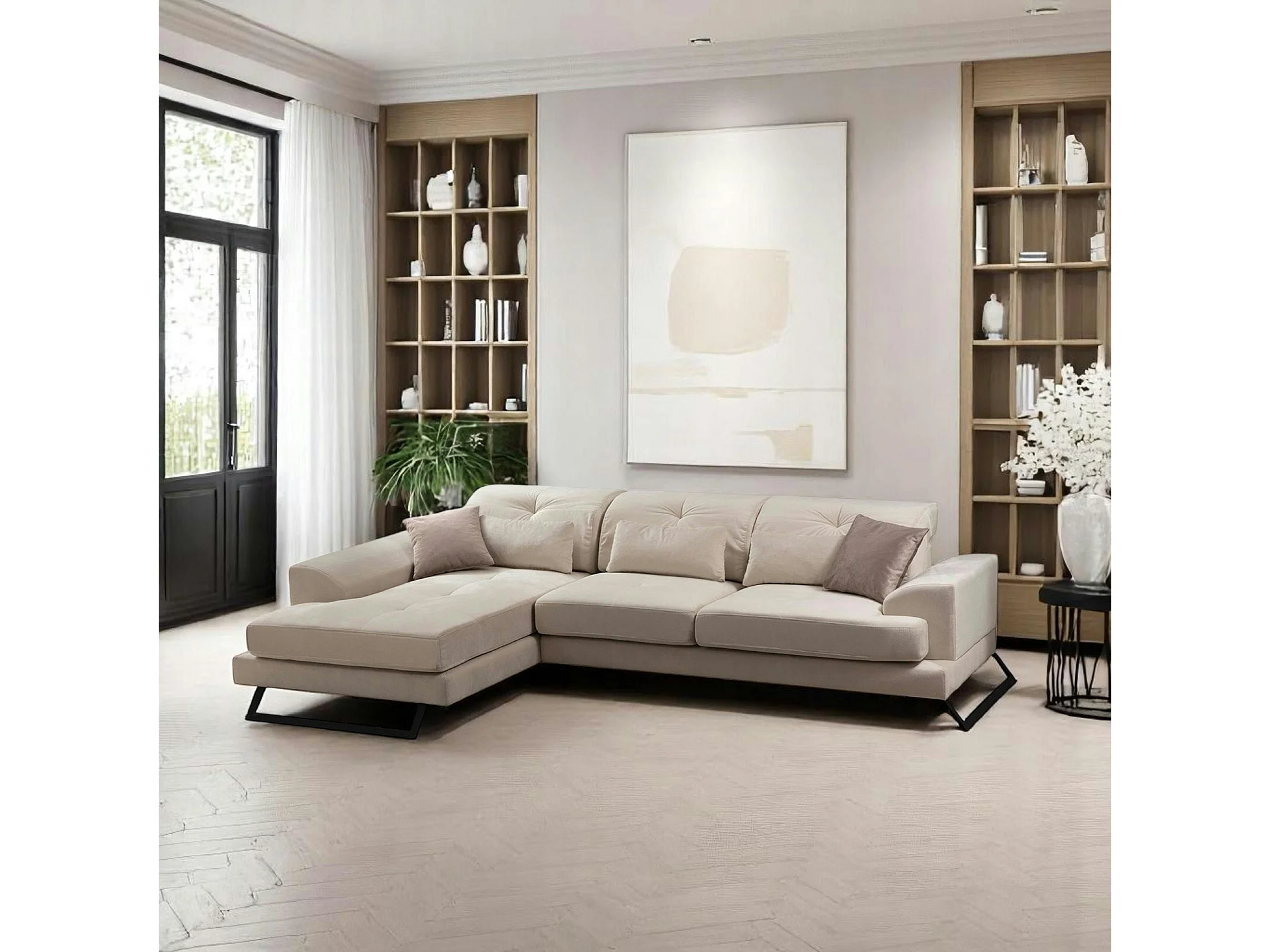 Canapé d'angle écru - dossier inclinable, côté gauche MILO