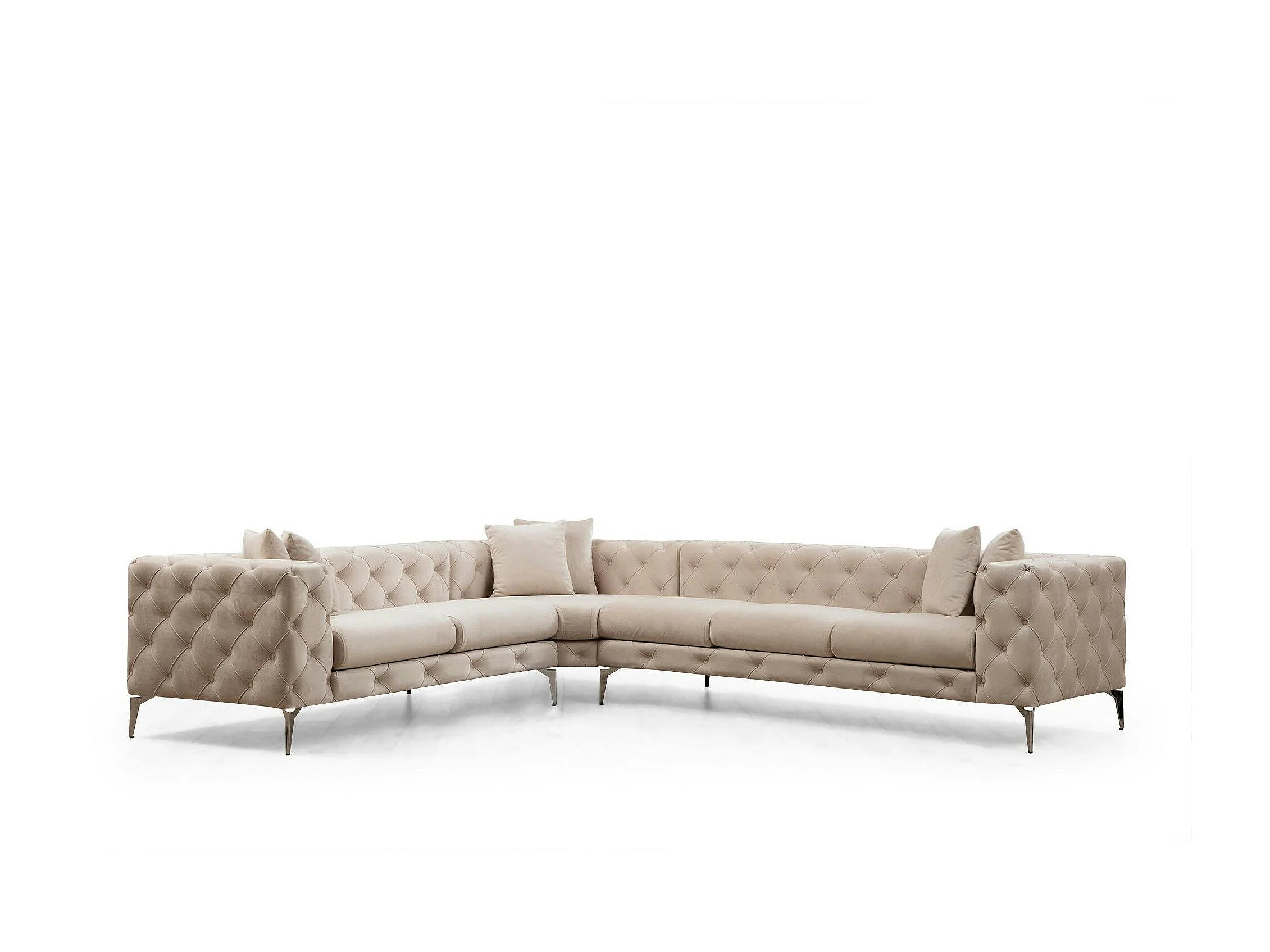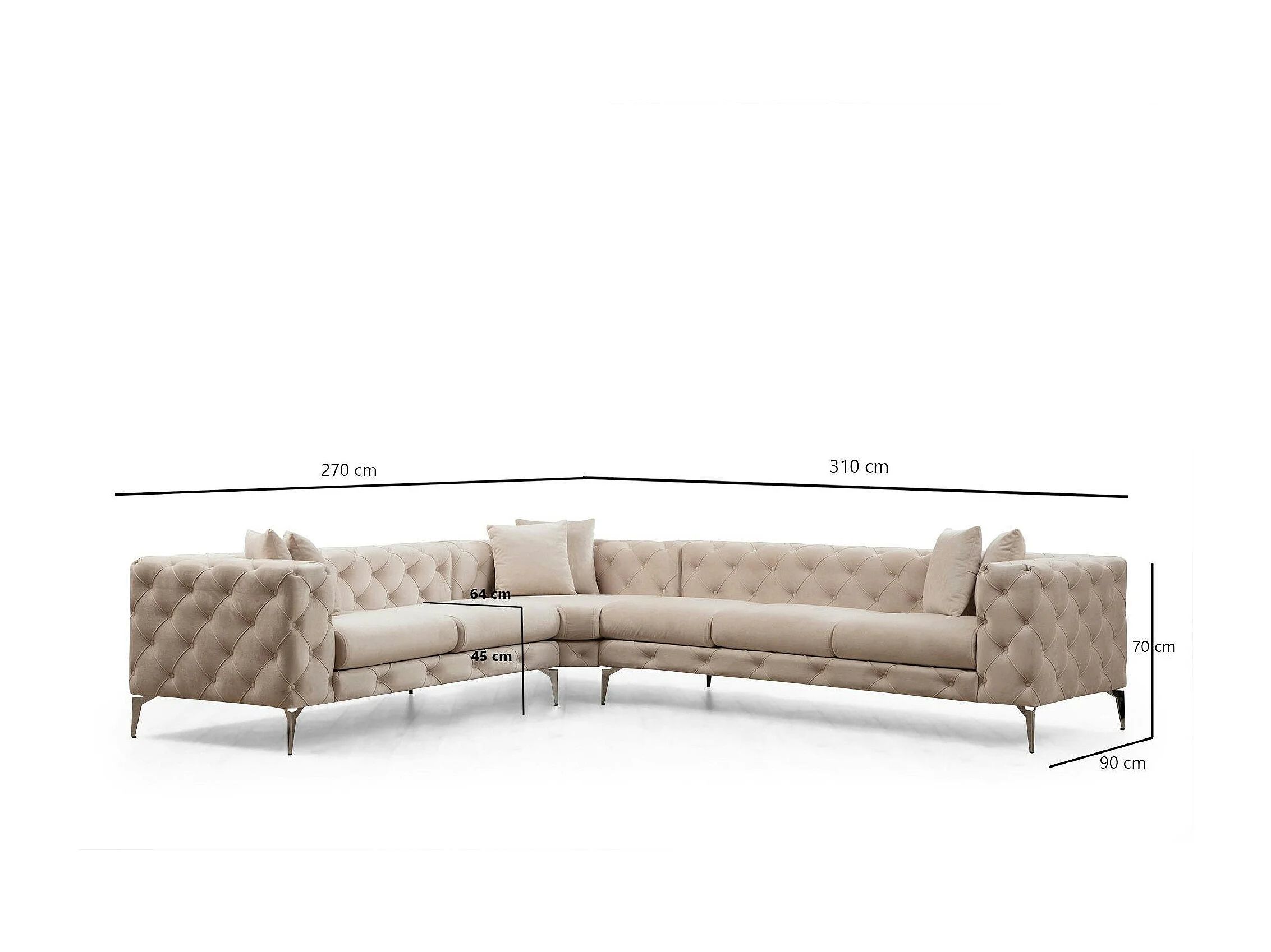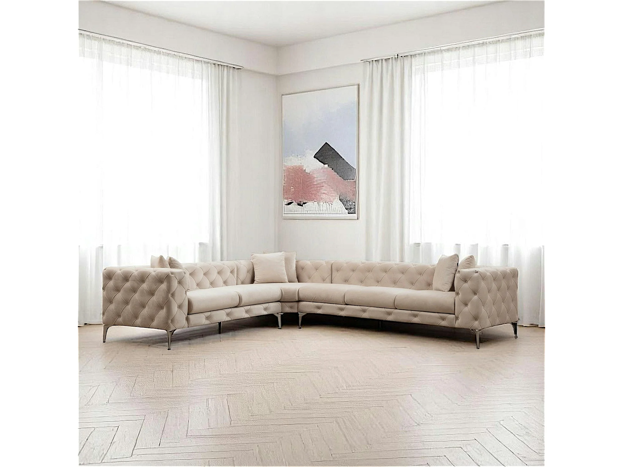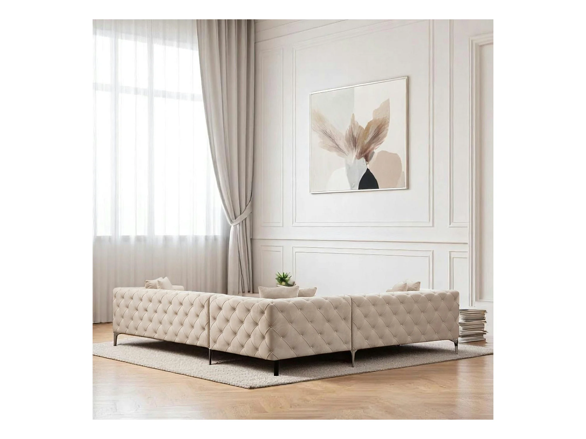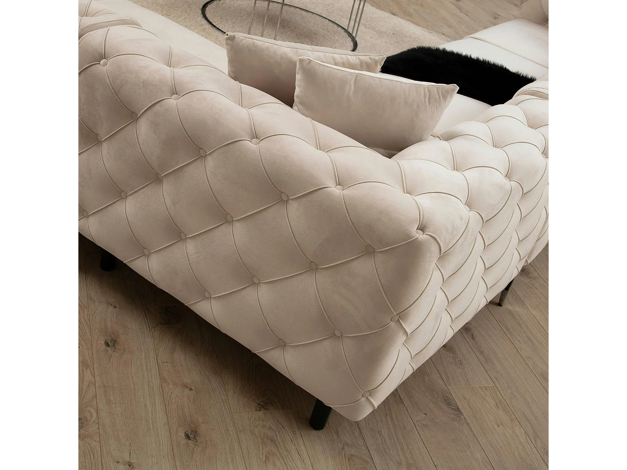 Canapé d'angle écru en velours capitonné - côté gauche DOVER