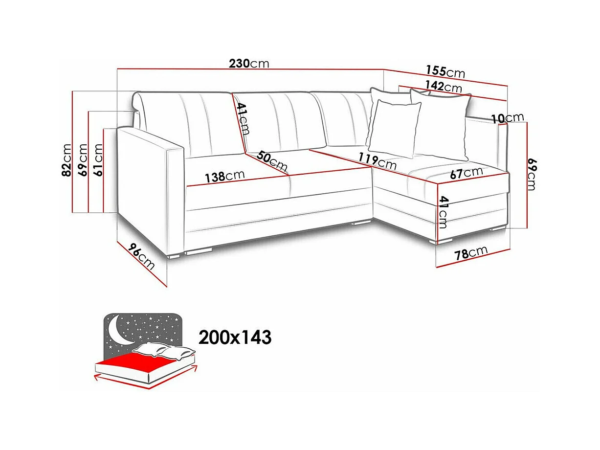 Canapé d'angle Edinburg 100, Brun clair, Fonction de couchage, Boîte de literie, 230x82cm