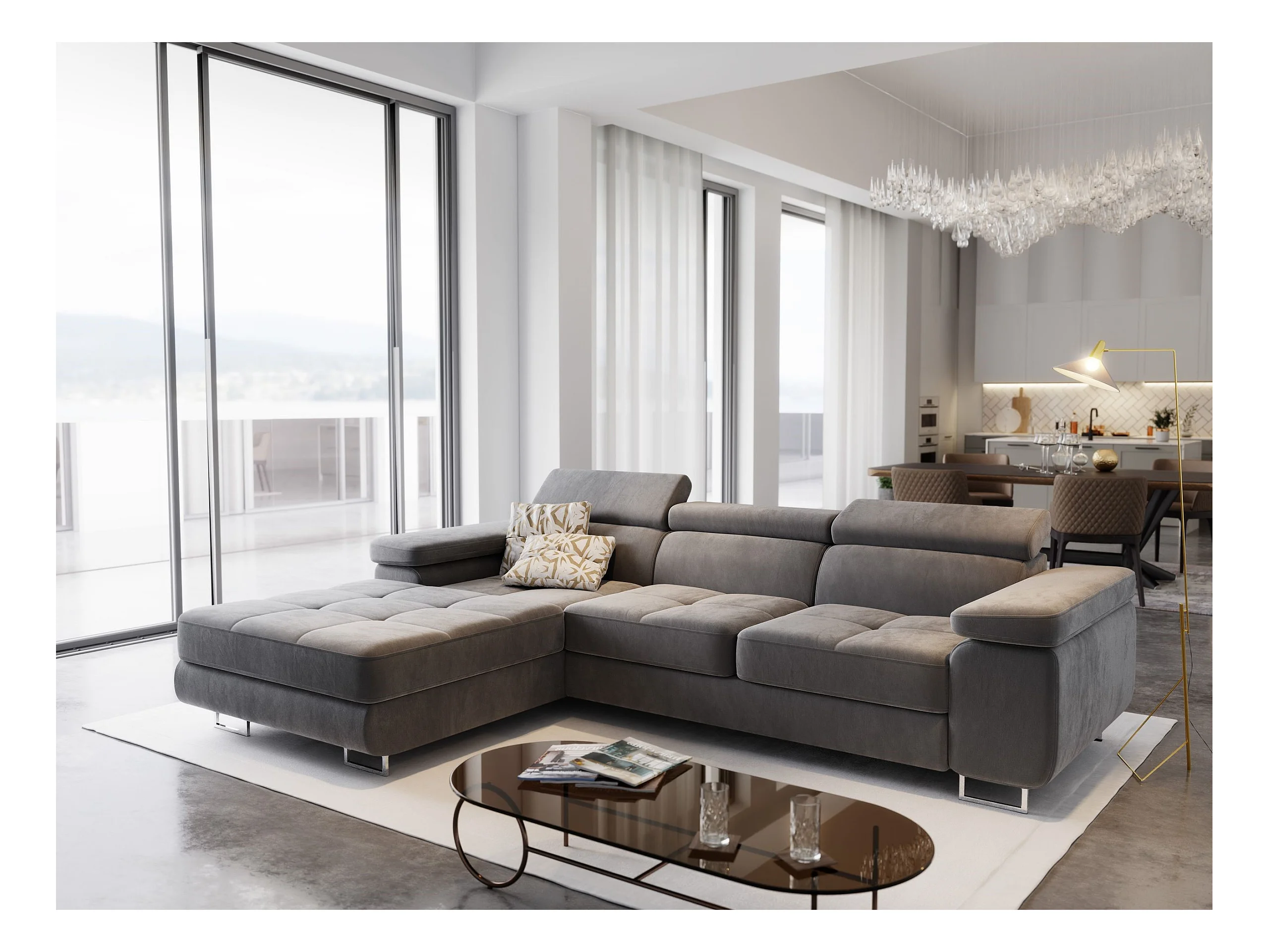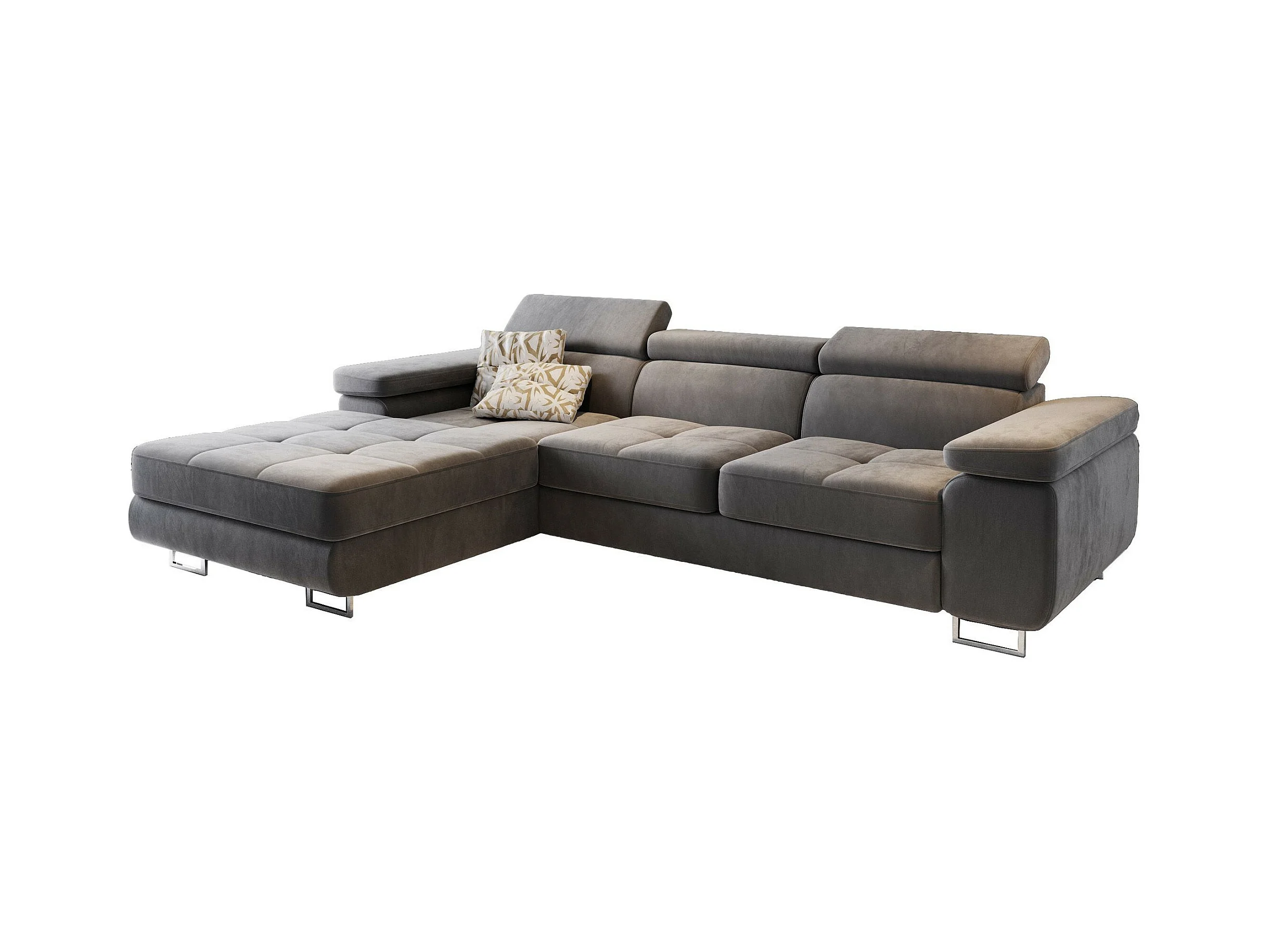 Canapé d'angle ELMA Gris en velours avec fonction de couchage