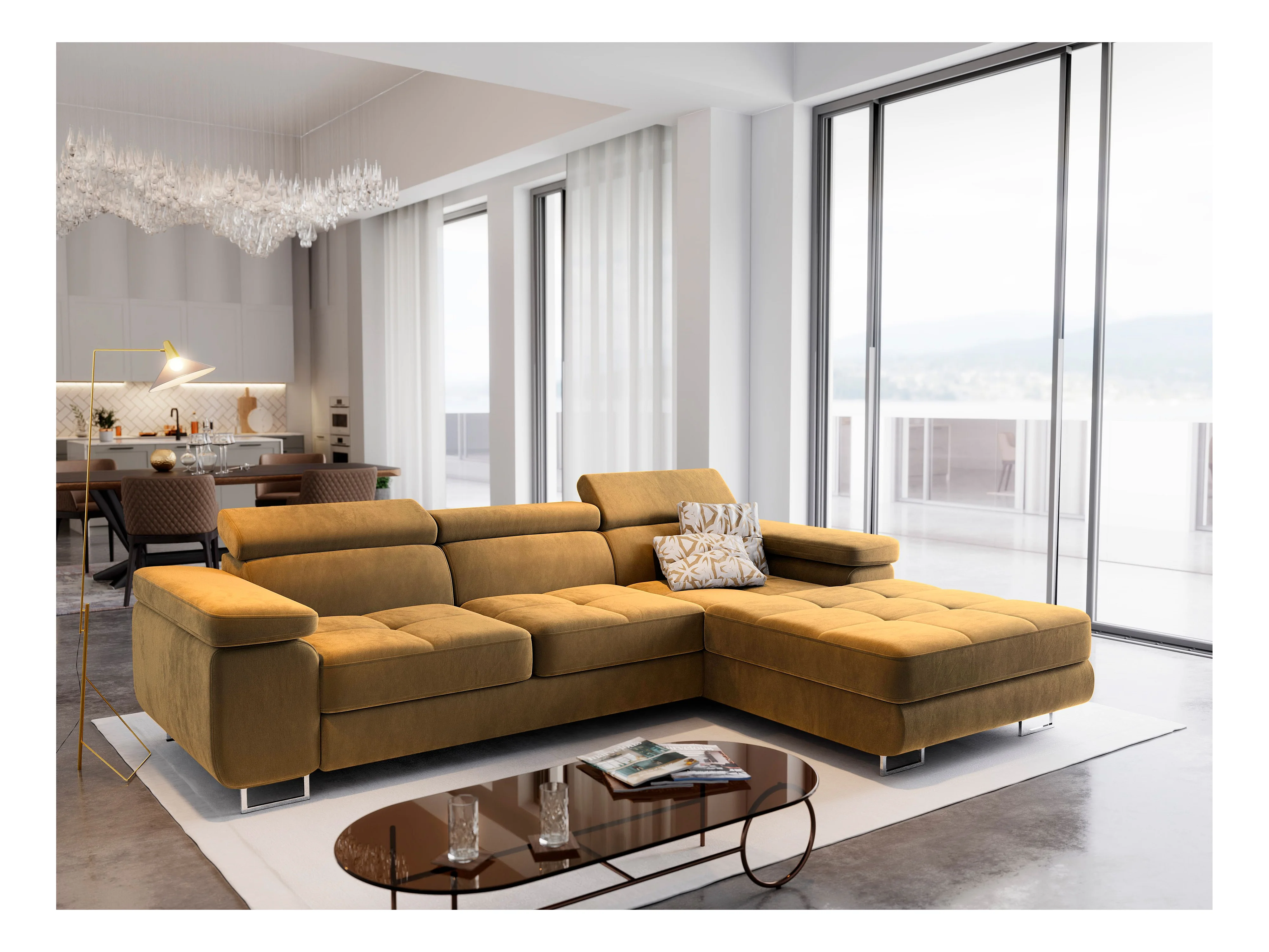 Canapé d'angle ELMA Jaune en velours avec fonction de couchage