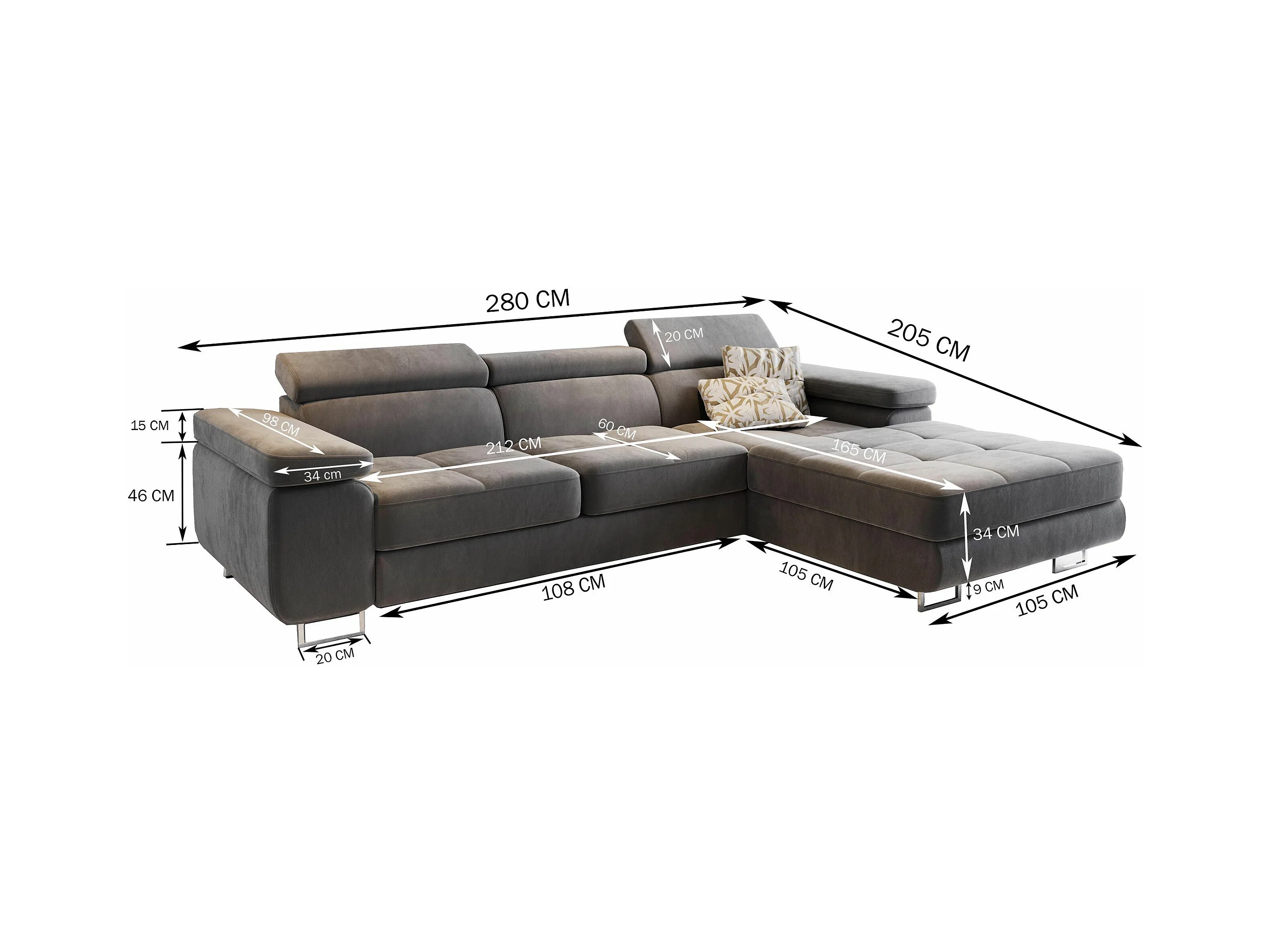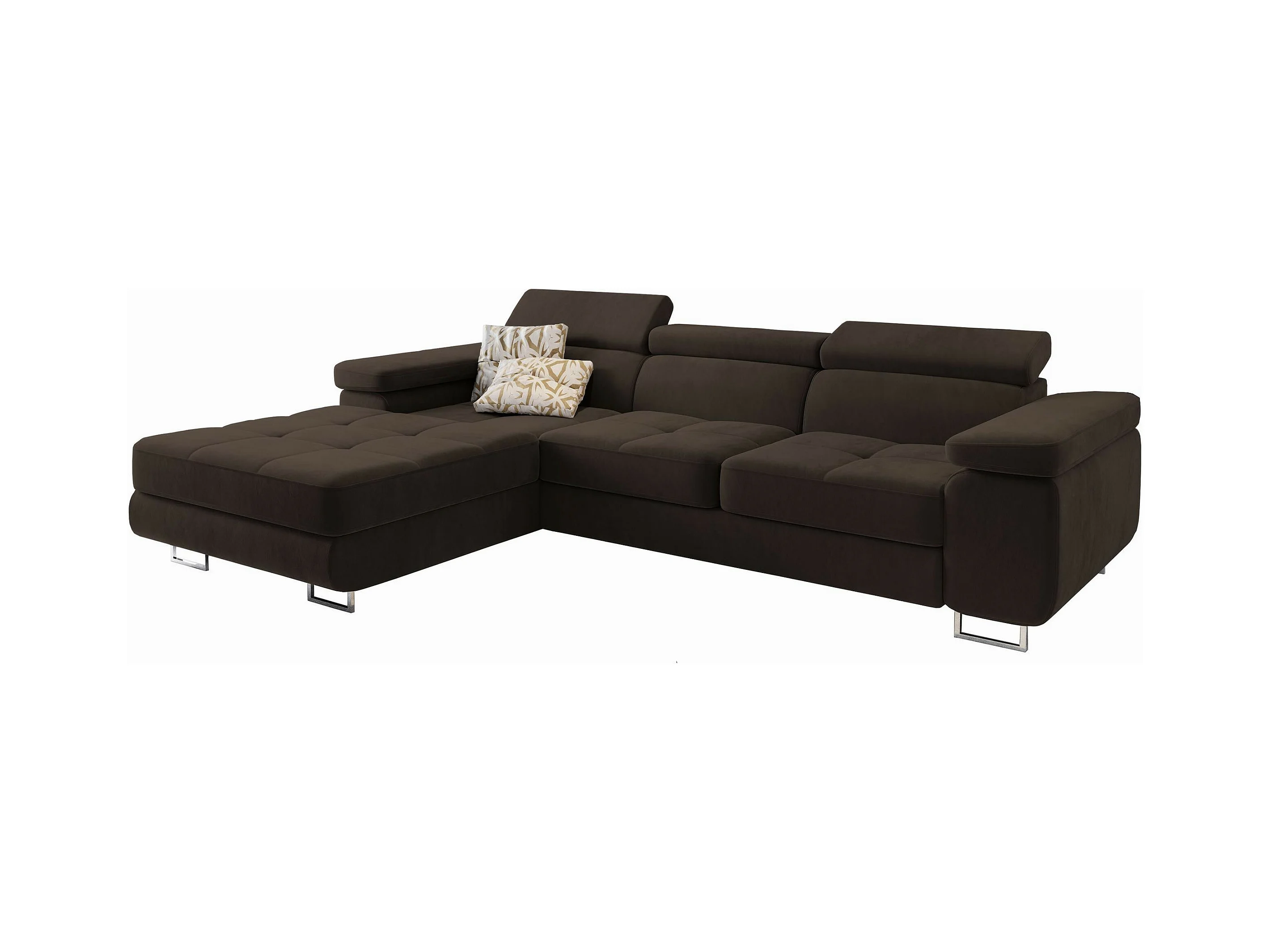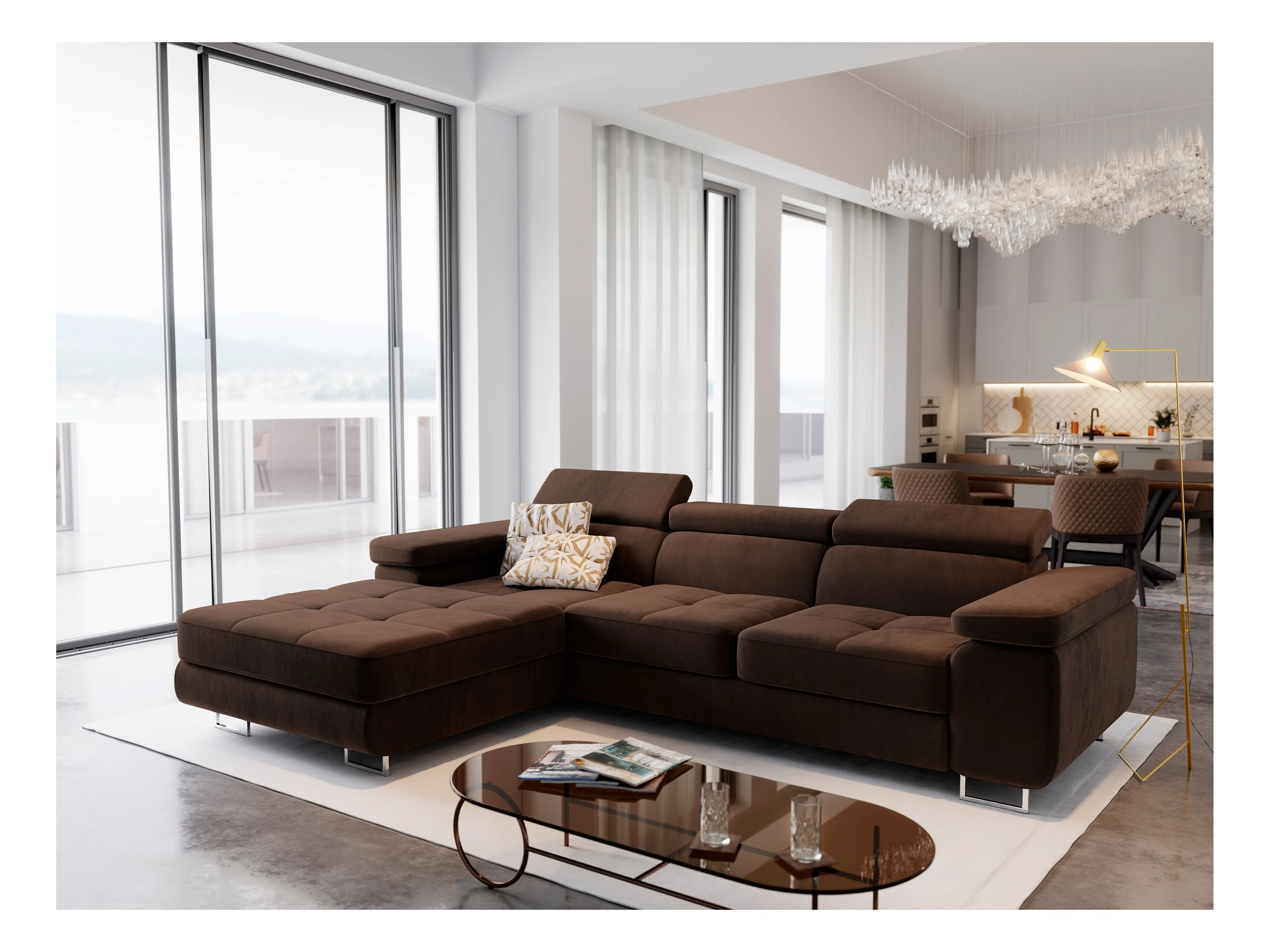 Canapé d'angle ELMA Marron en velours avec fonction de couchage