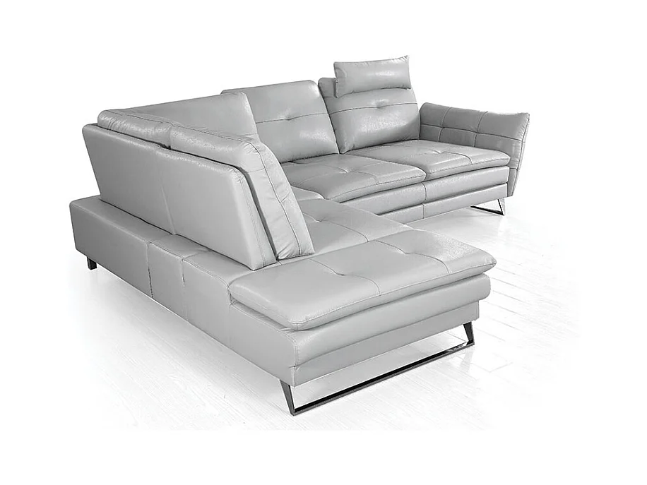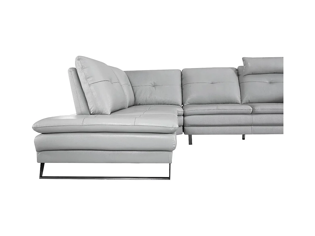 Canapé d'angle en cuir ELENA Gris perle - Angle Gauche