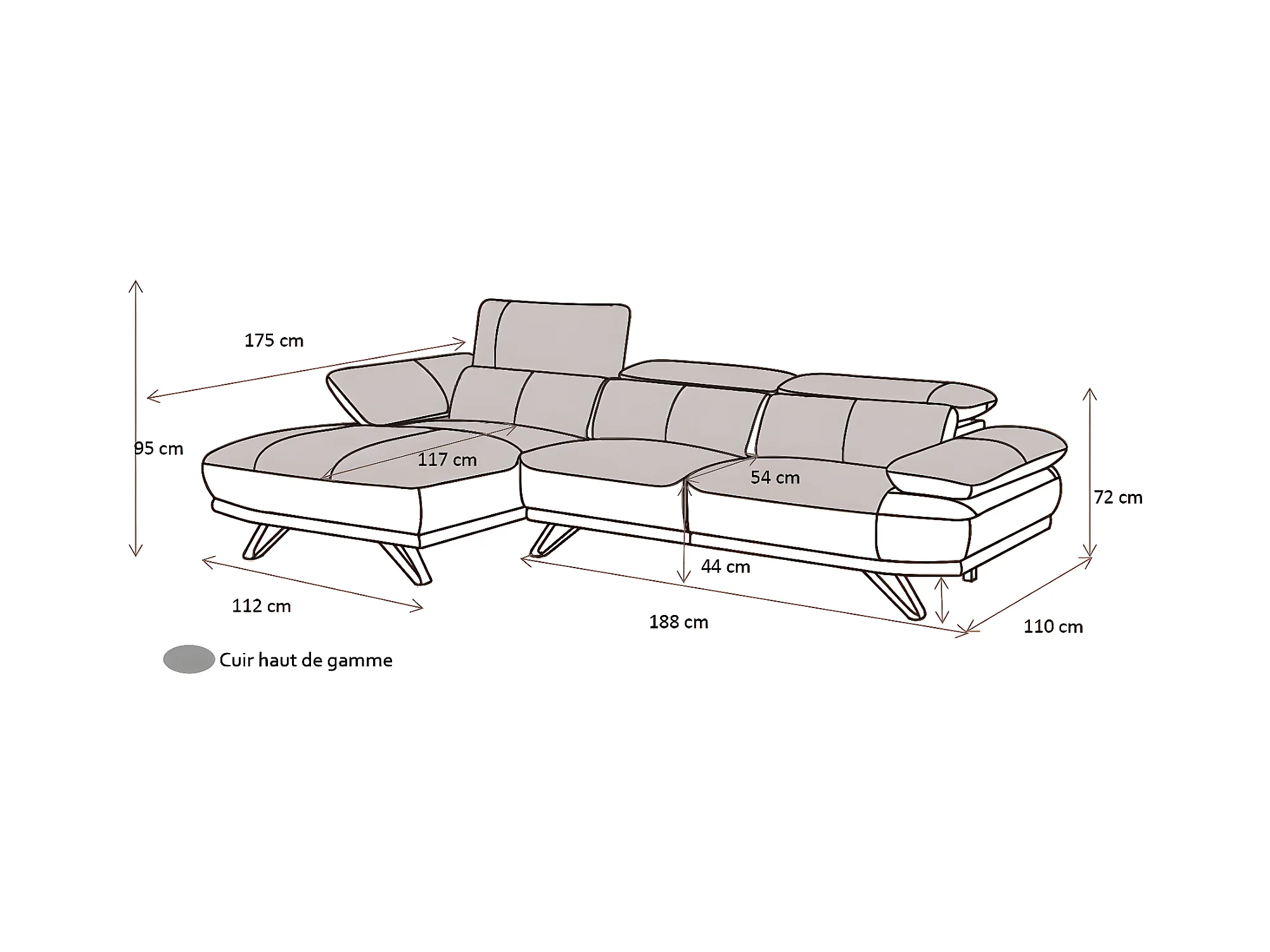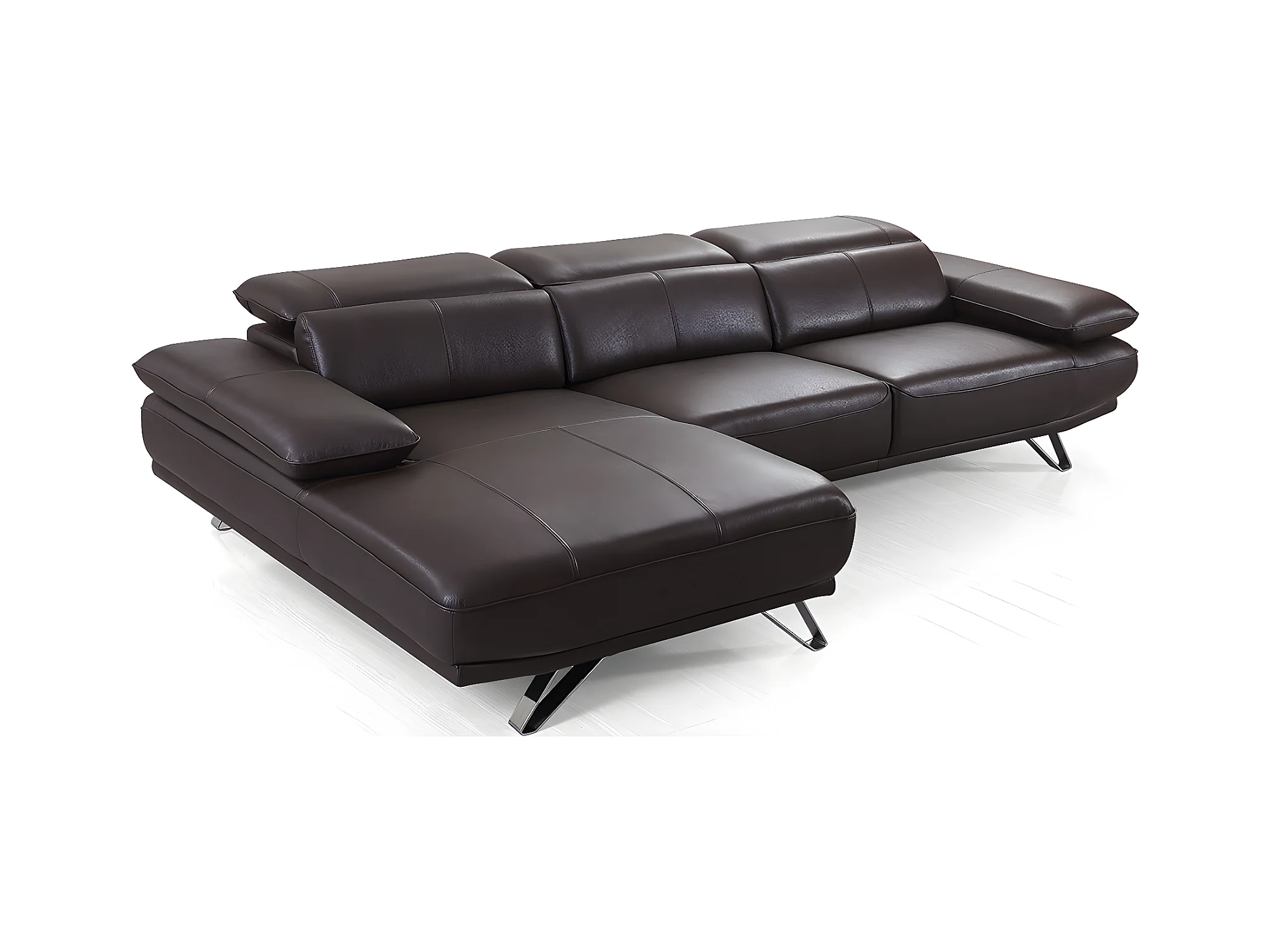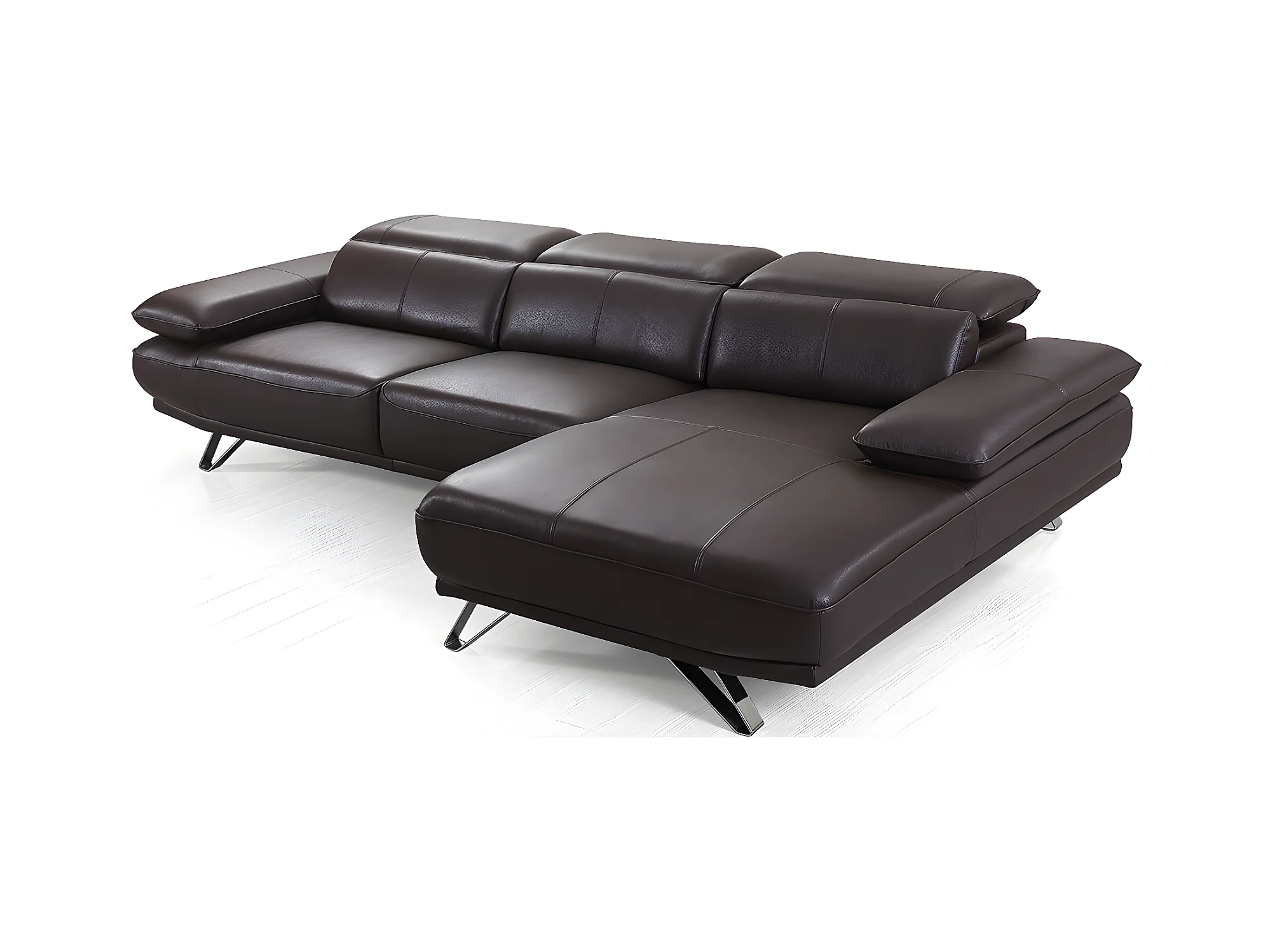 Canapé d'angle en cuir LUKA Marron - Angle Droit