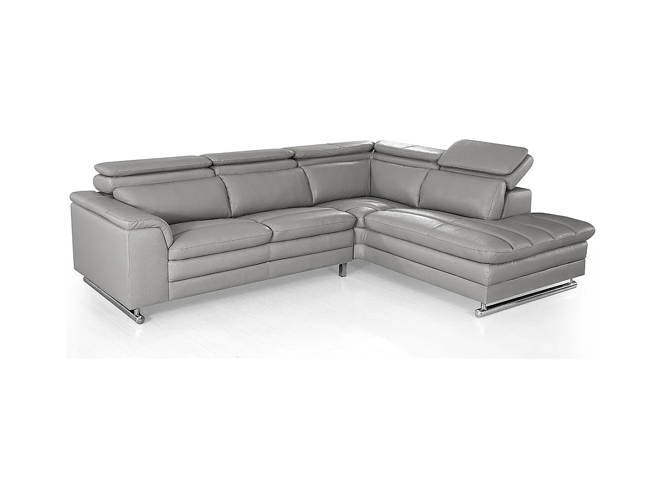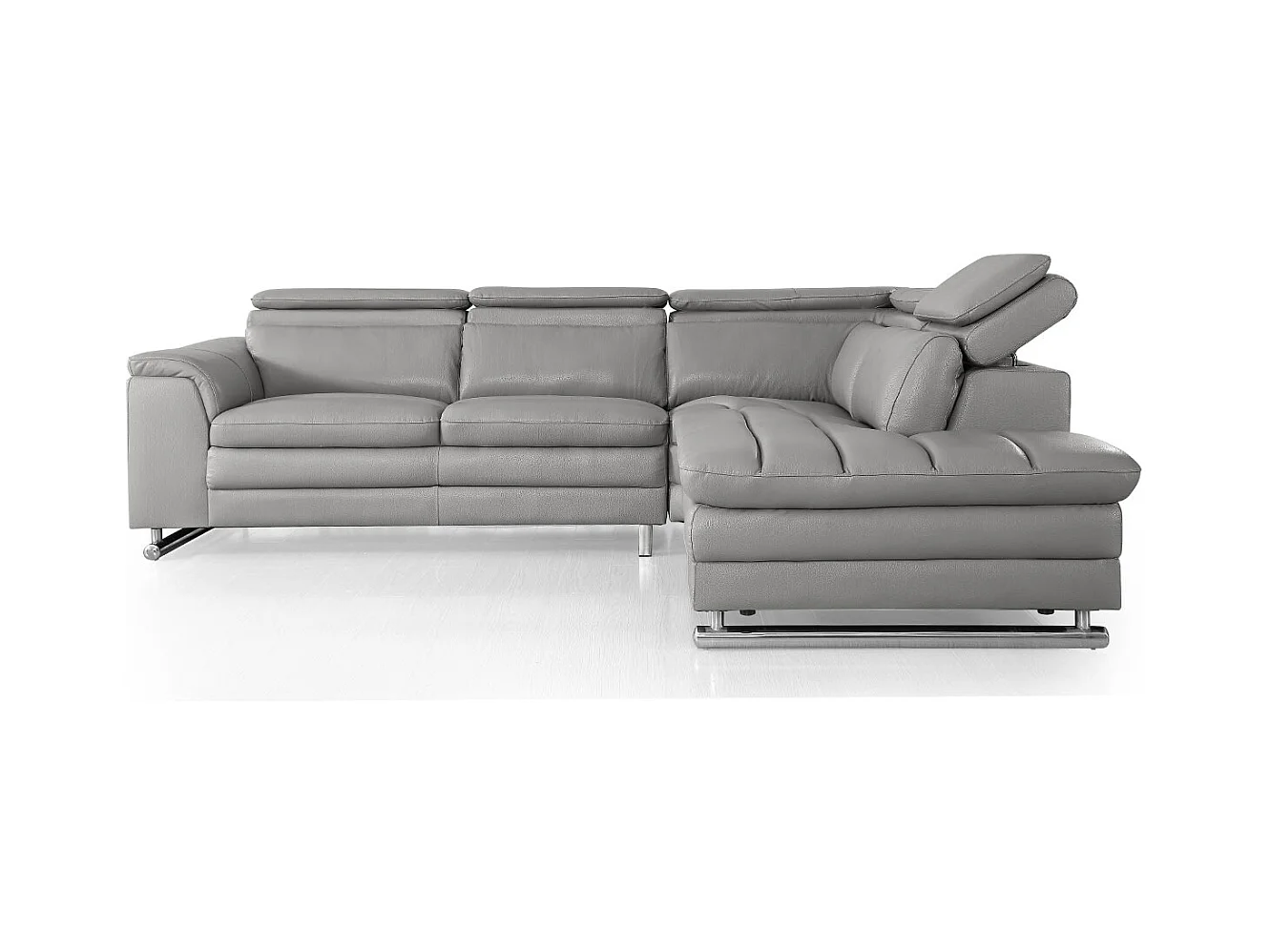 Canapé d'angle en cuir MYA Gris - Angle Droit