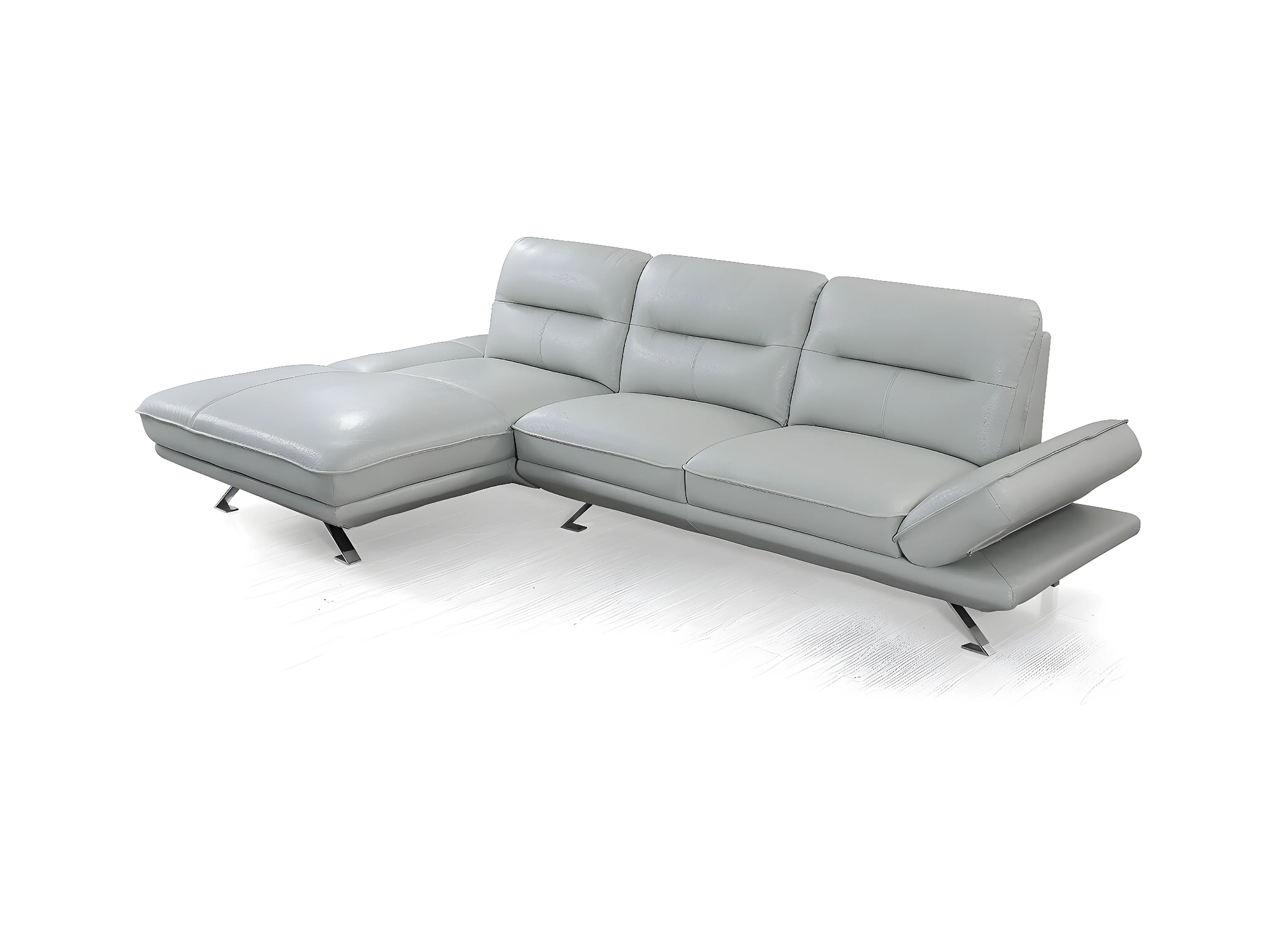 Canapé d'angle en cuir PALMA Gris perle - Angle Gauche