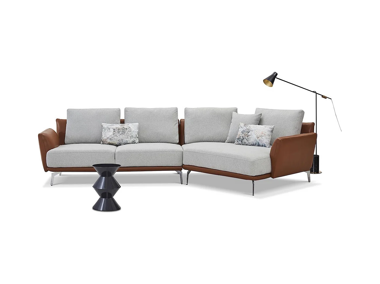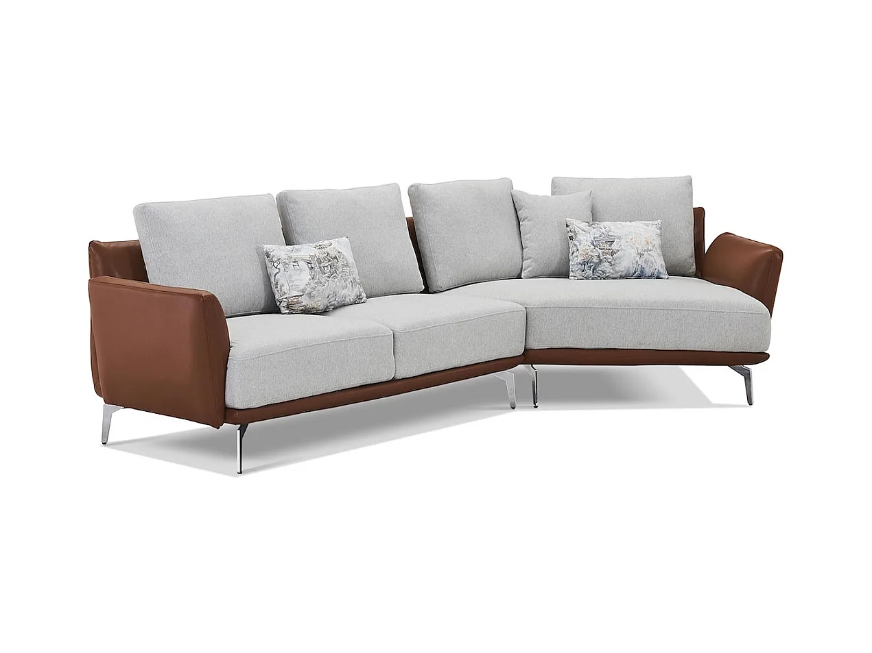 Canapé d'angle en tissu droit ARON - Gris clair et Marron - Angle Gauche