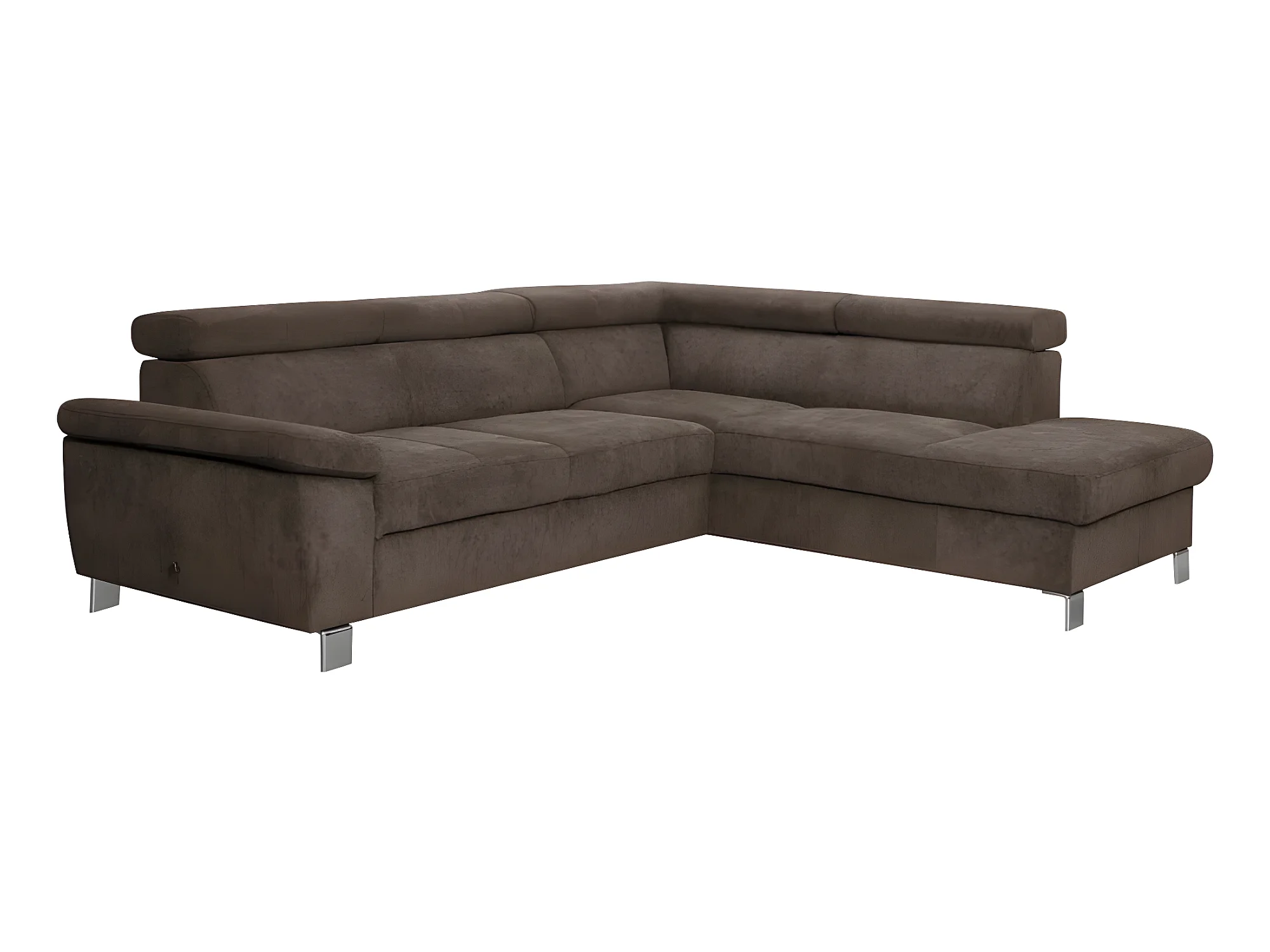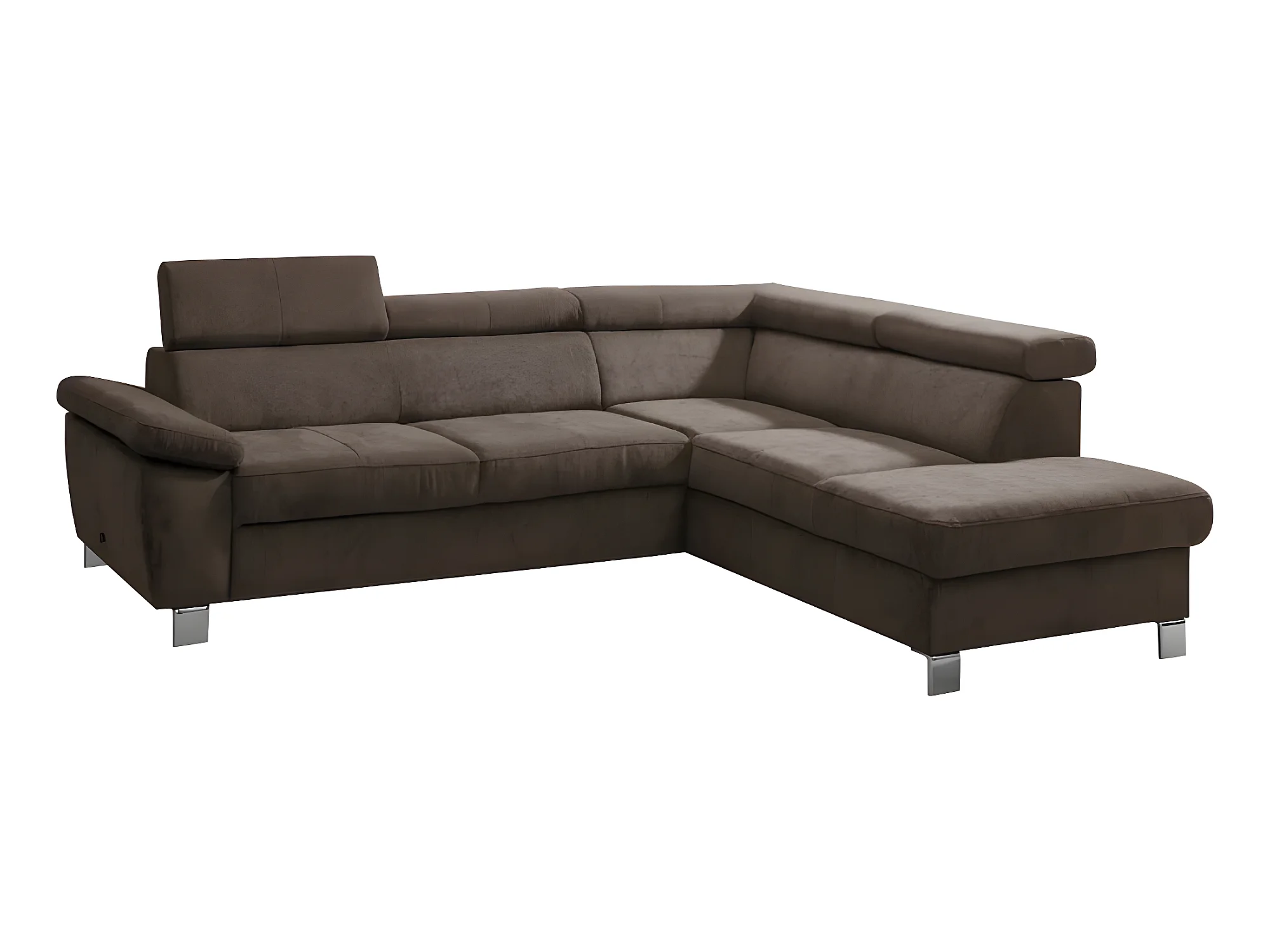 Canapé d'angle en tissu velours luxe 5 places LUGO chocolat, angle droit