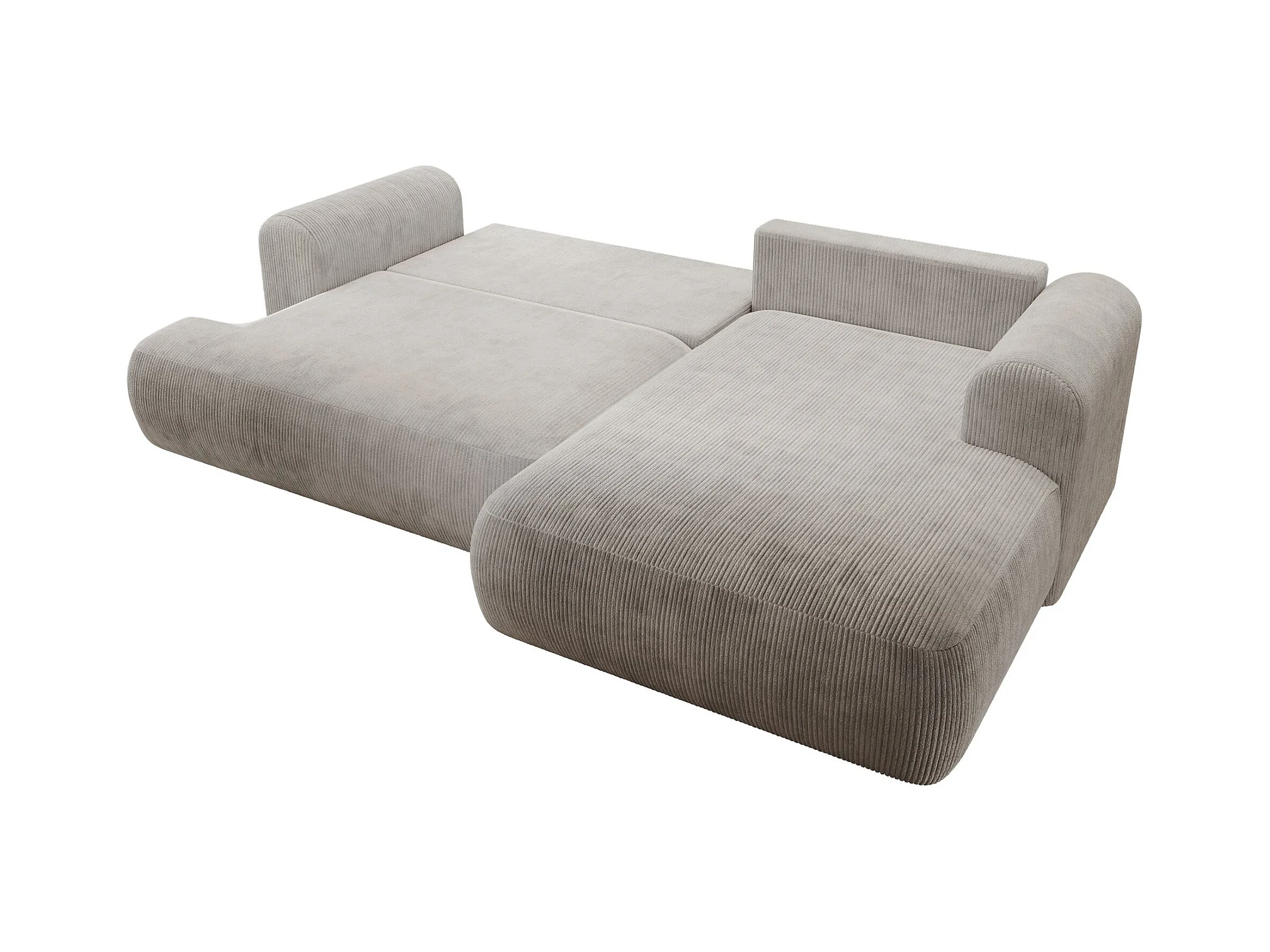Canapé d’angle en velours côtelé – convertible avec coffre de rangement – beige-gris – droit – OVO CORD