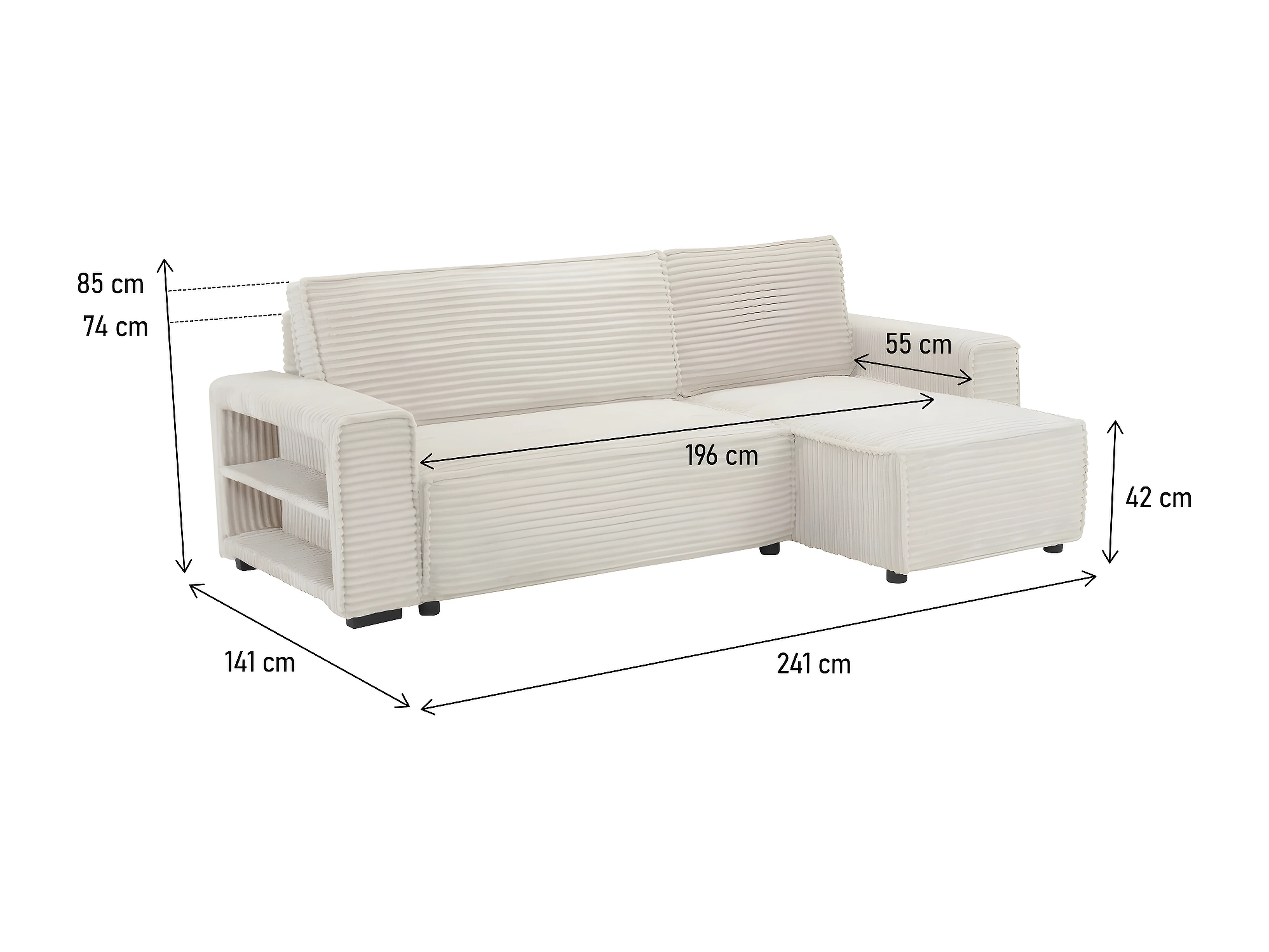 Canapé d'angle en velours côtelé "Opera" - 3 places - Beige