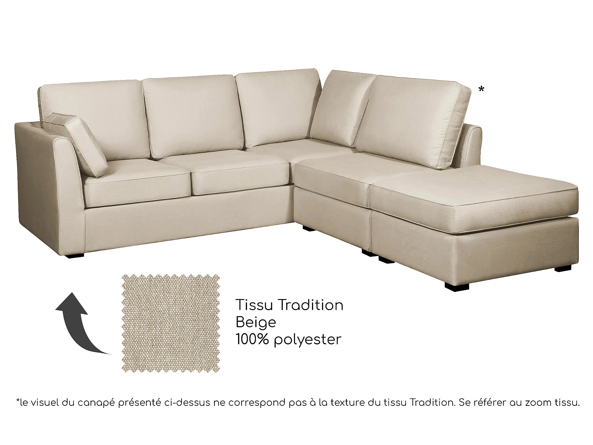Canapé d'angle ESCAUT fixe 225 x 237 cm Tradition Beige - 100% déhoussable - Fab. en France