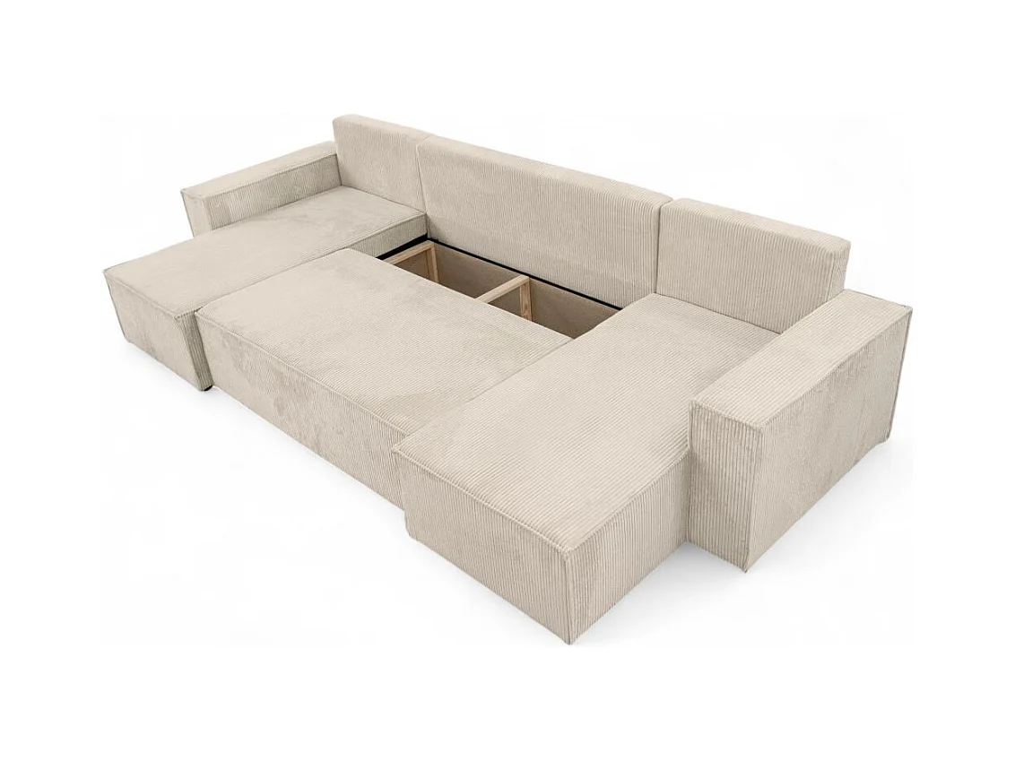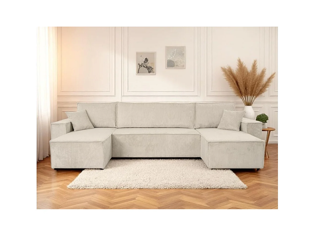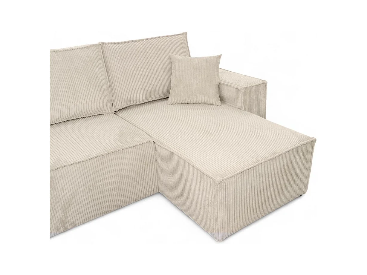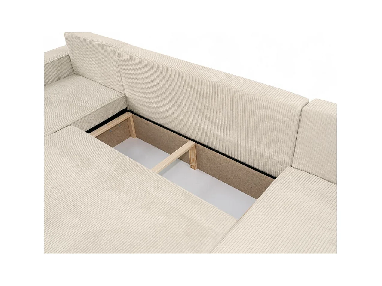 Canapé d'angle FARAH panoramique convertible 6 places en velours cotelé - Beige