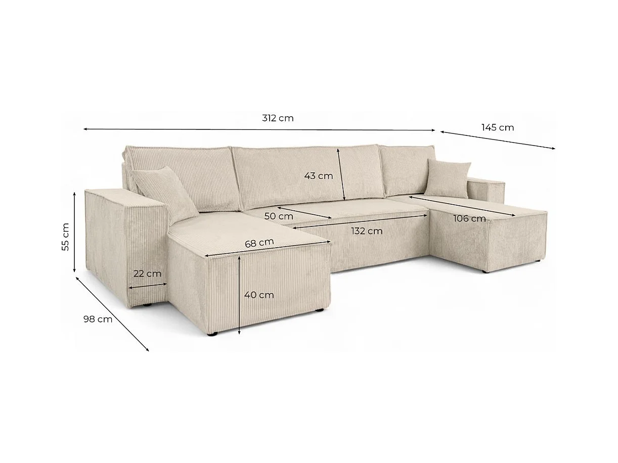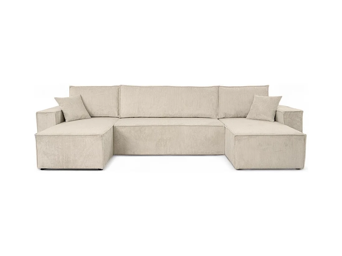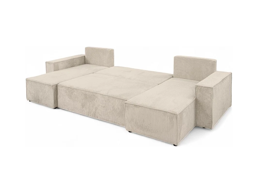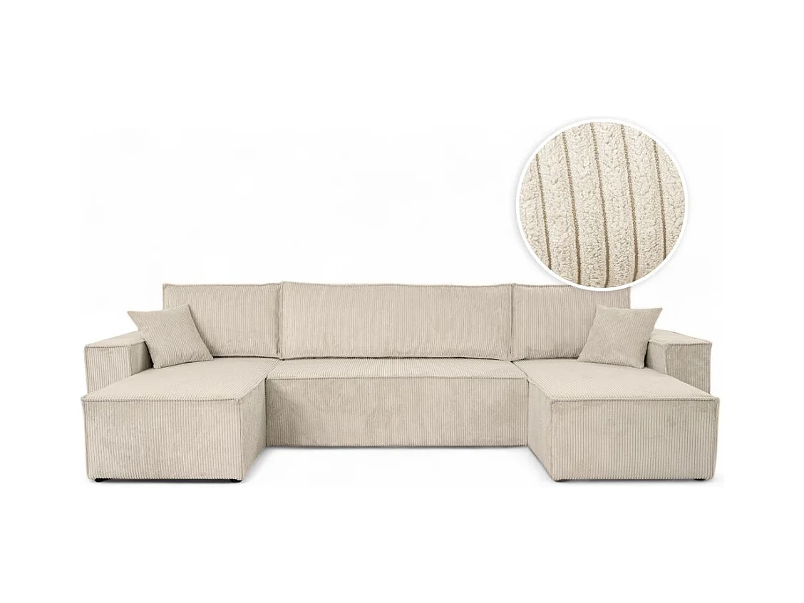 Canapé d'angle FARAH panoramique convertible 6 places en velours cotelé - Beige