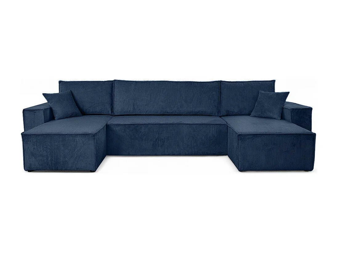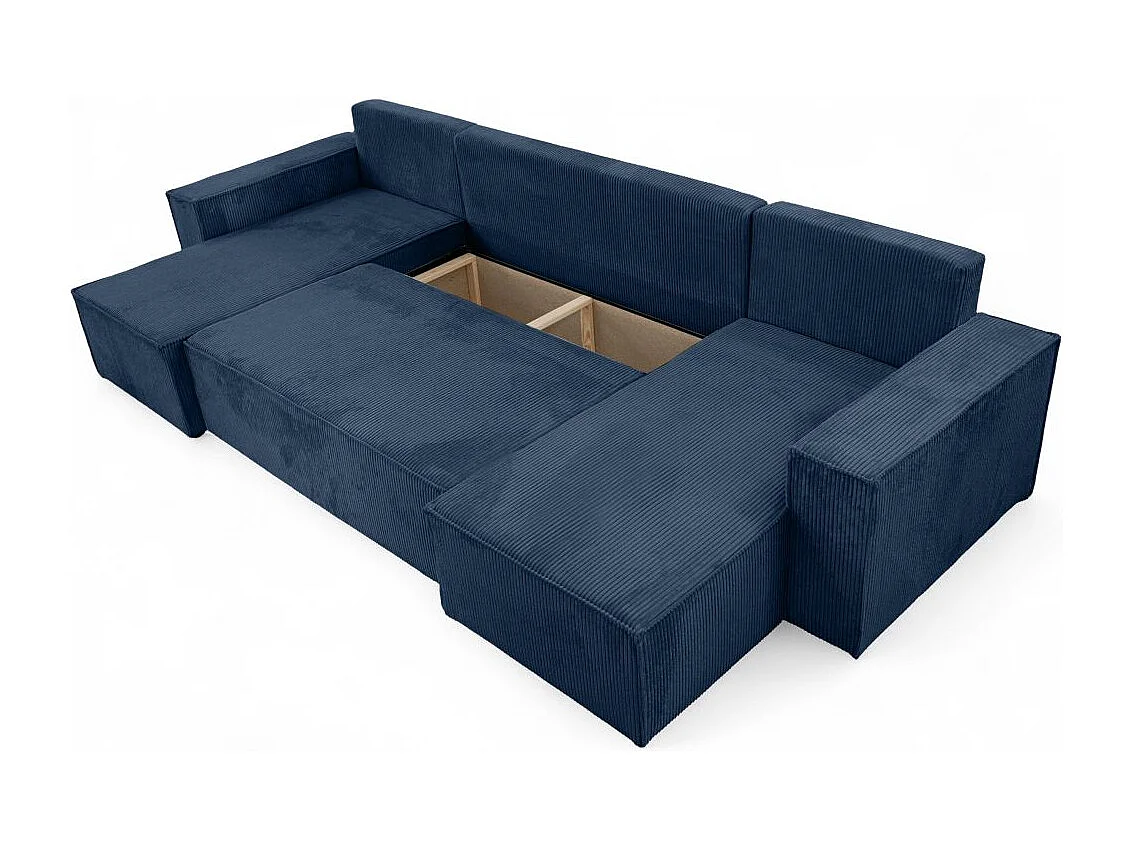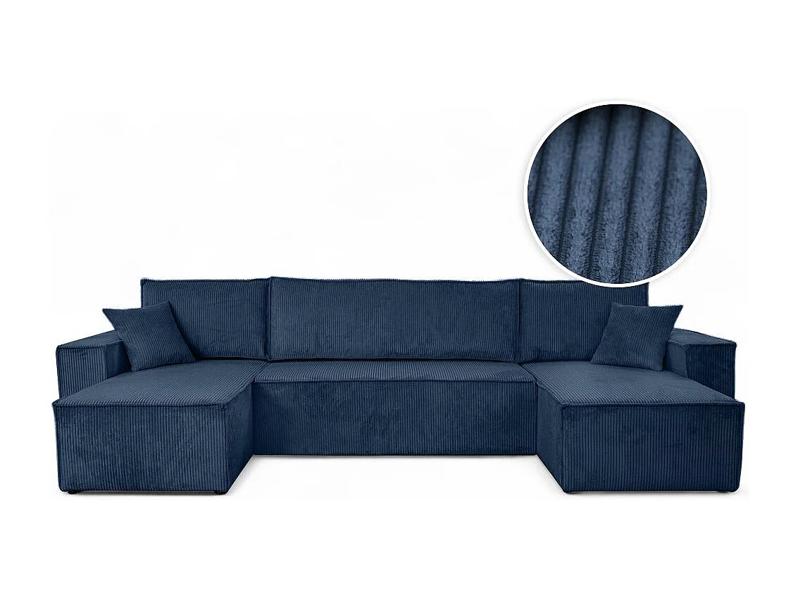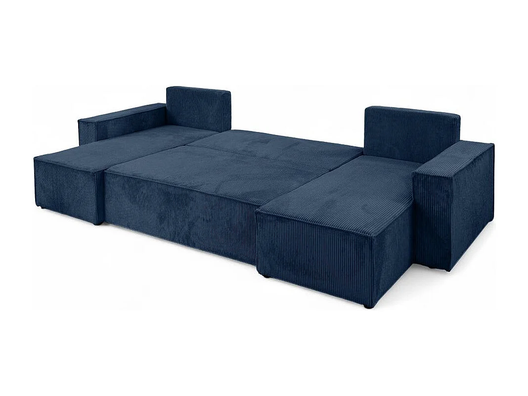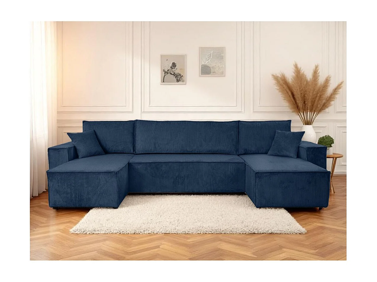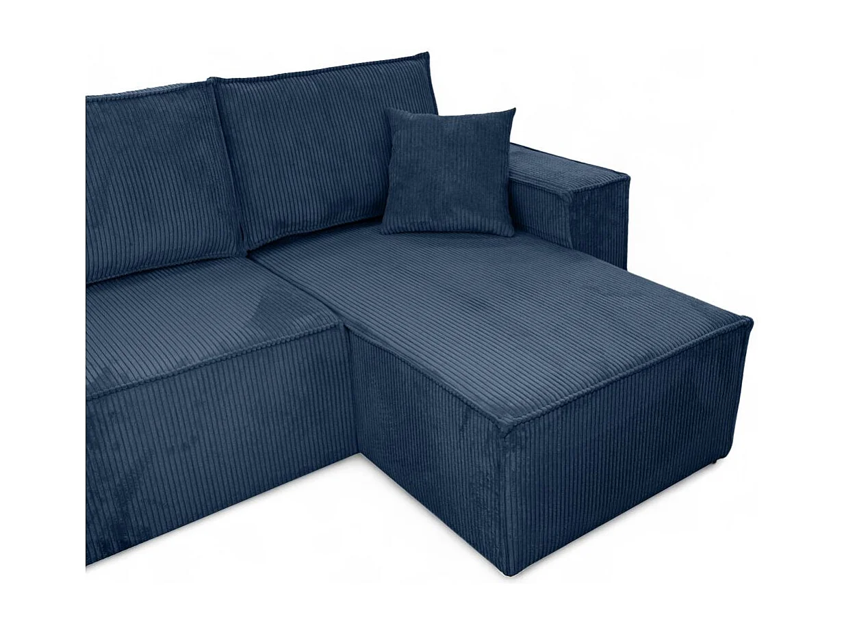 Canapé d'angle FARAH panoramique convertible 6 places en velours côtelé - Bleu foncé