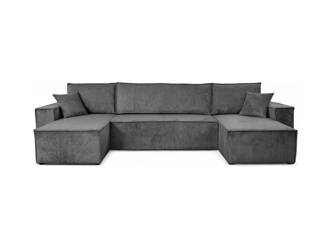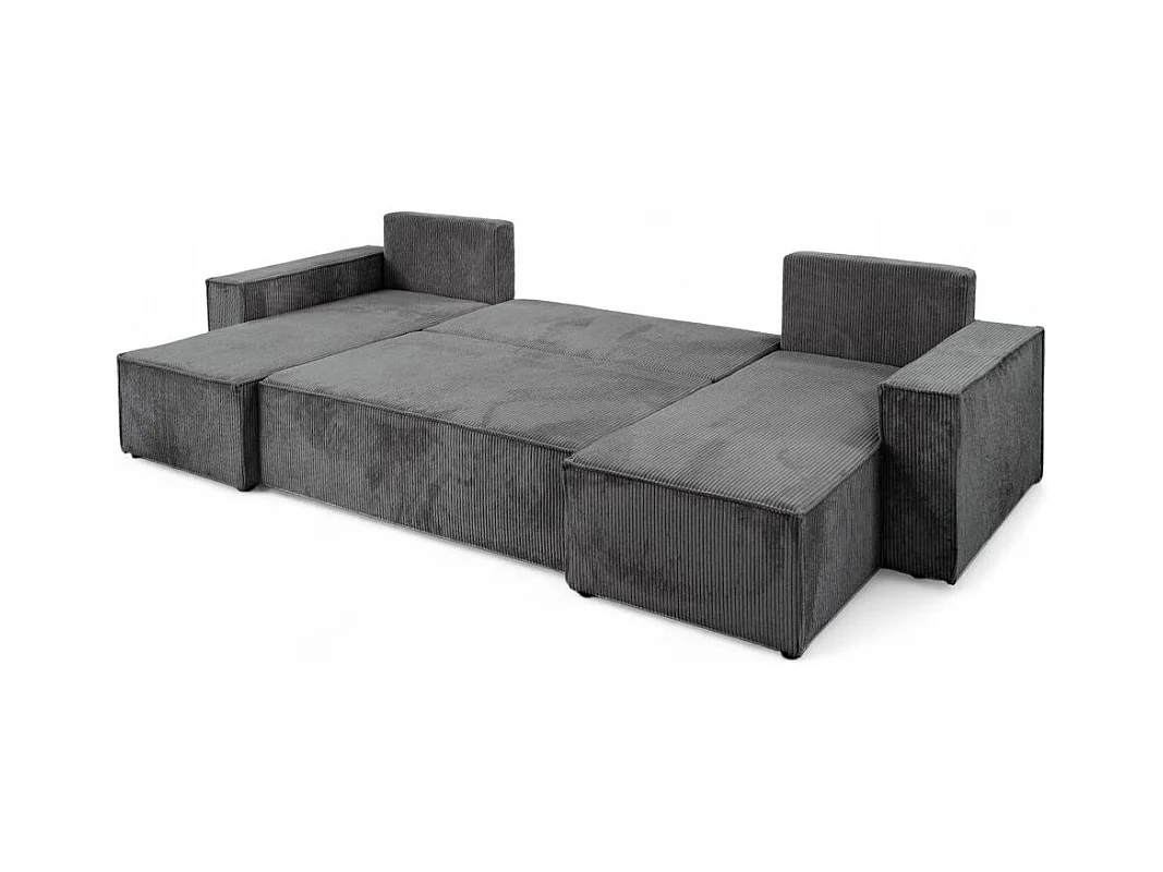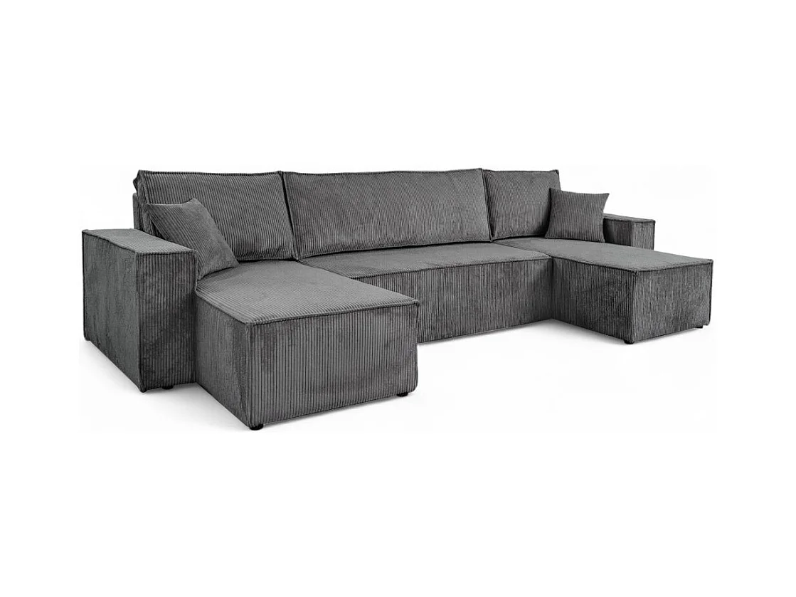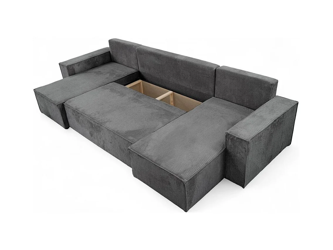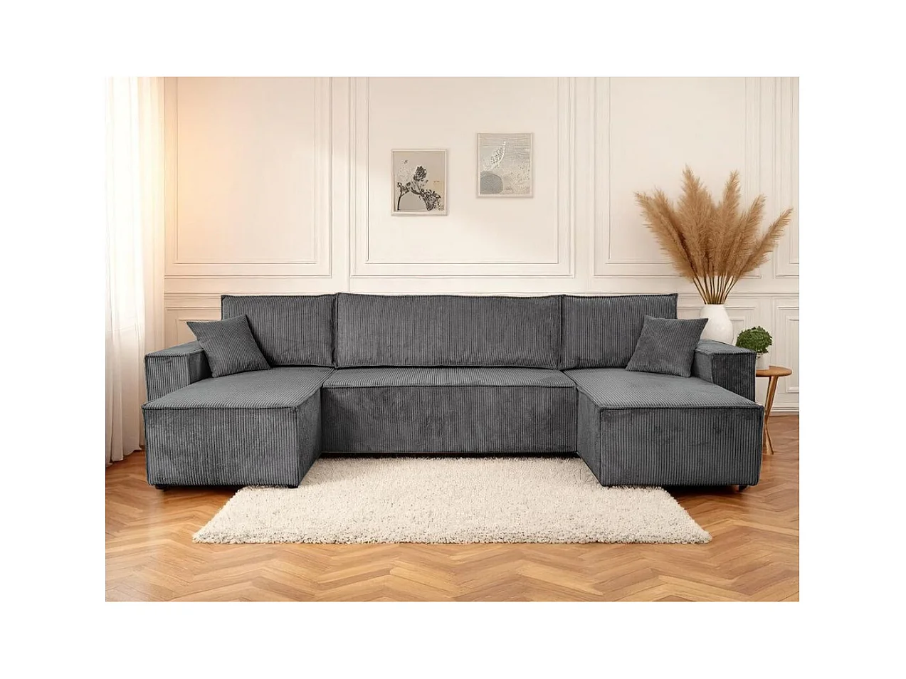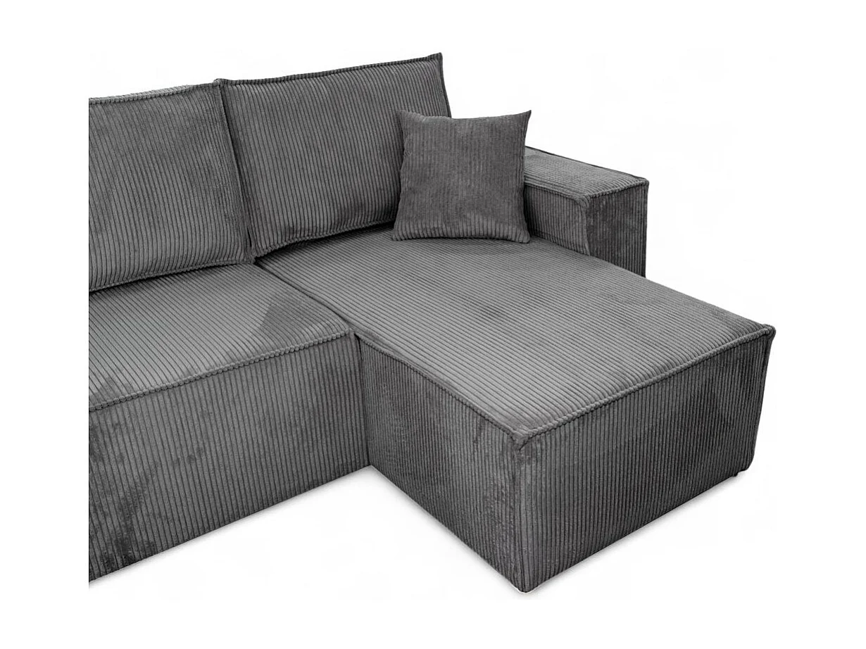 Canapé d'angle FARAH panoramique convertible 6 places en velours côtelé - Gris anthracite