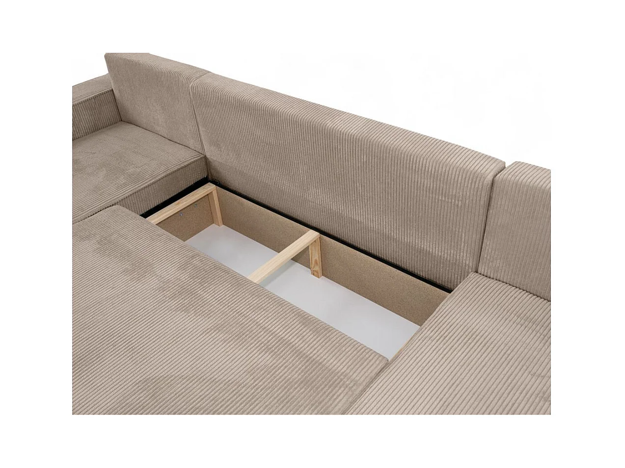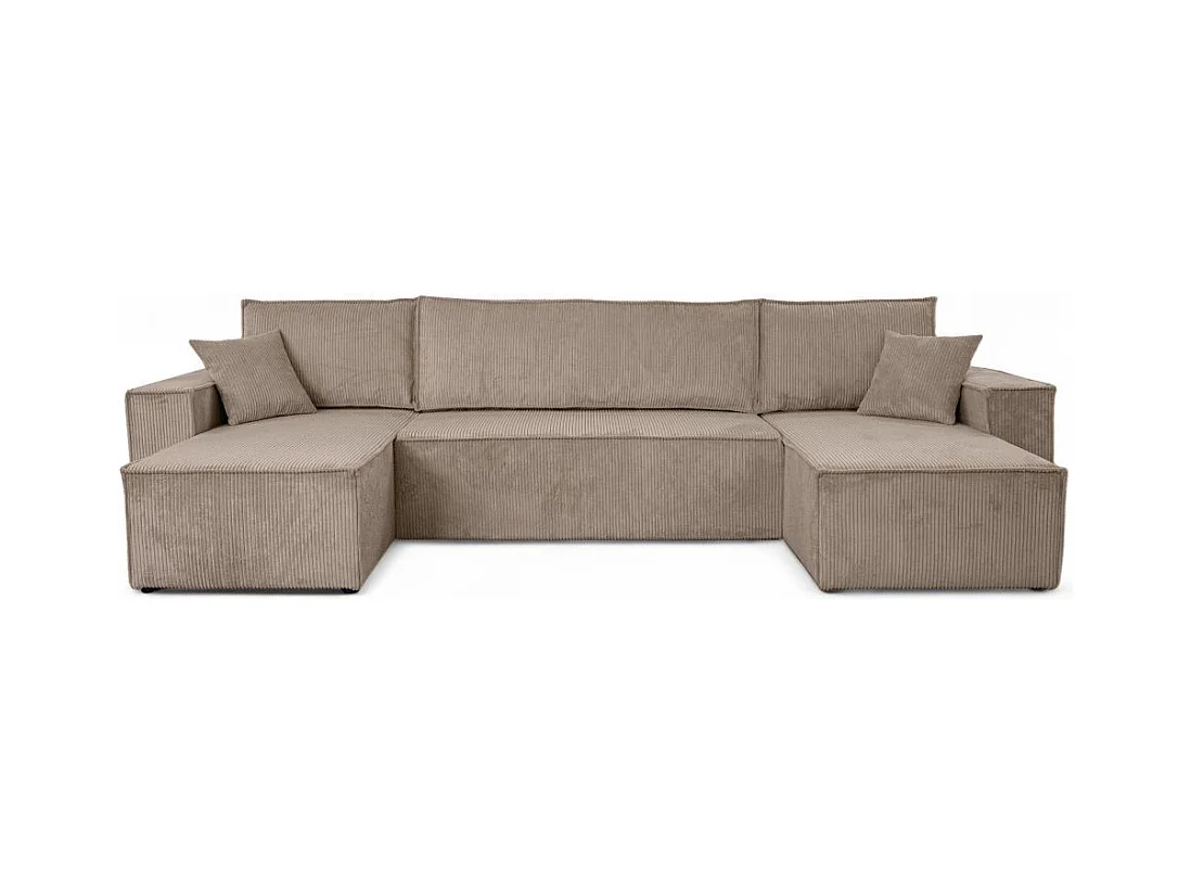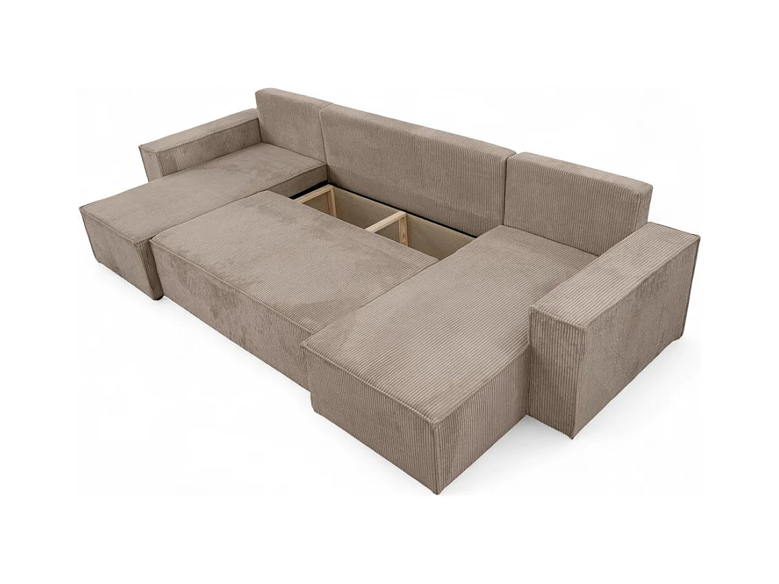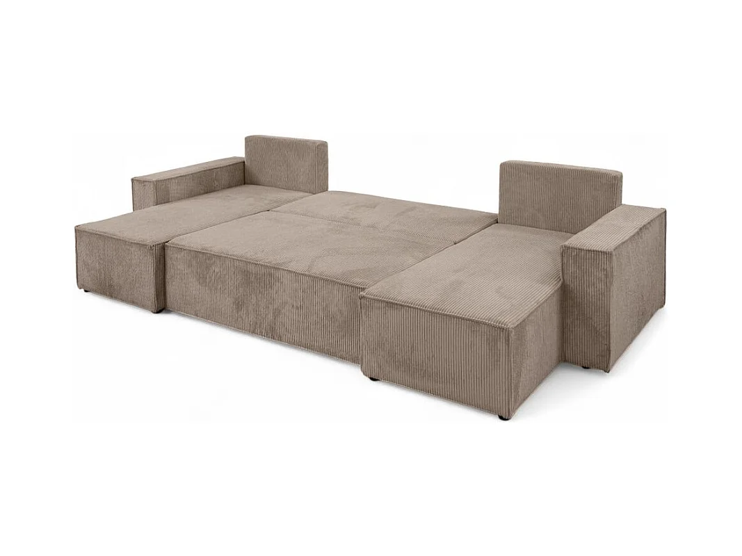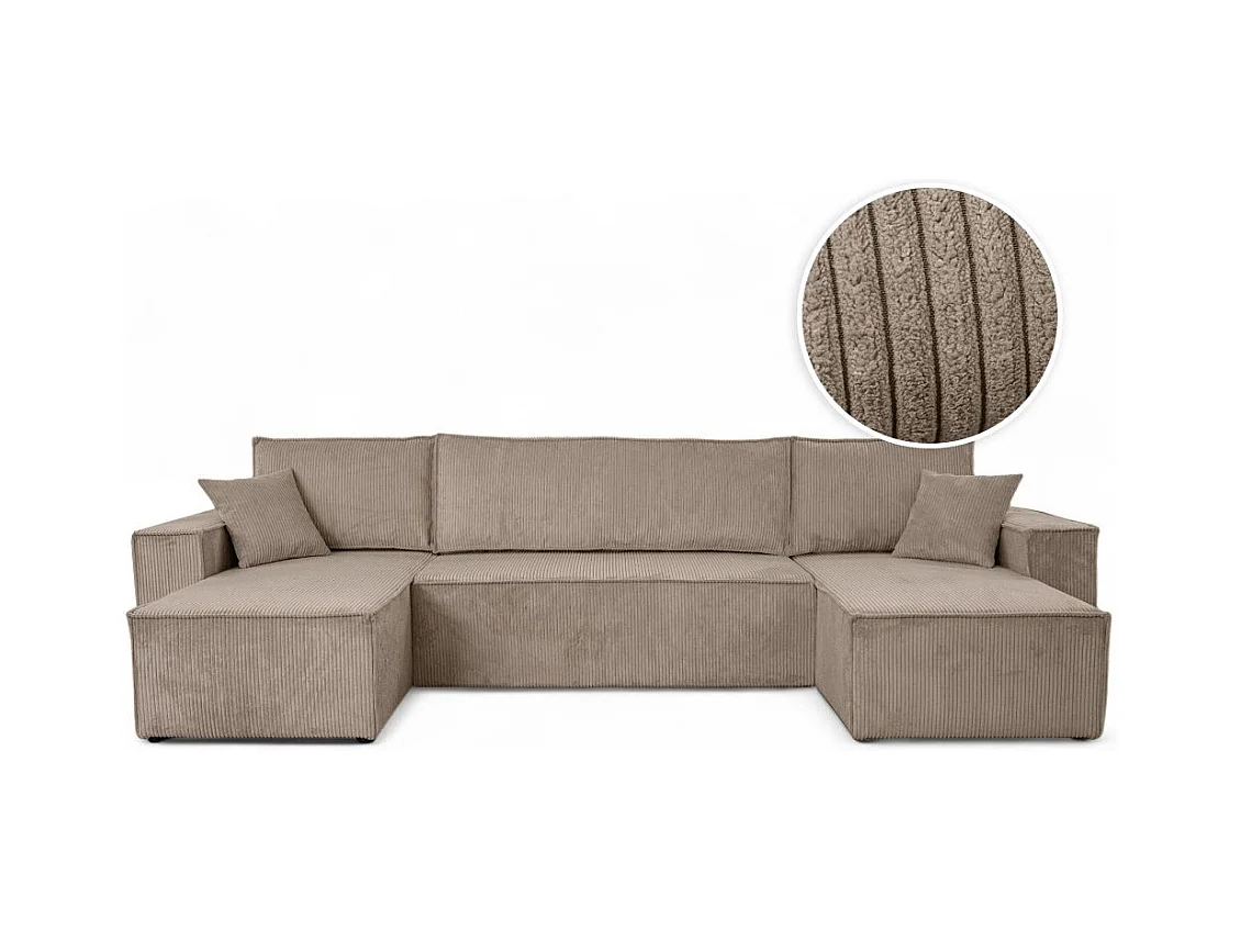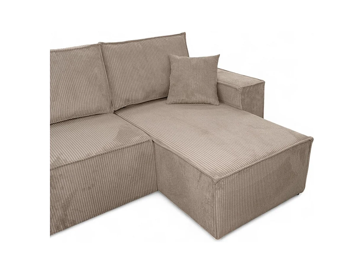 Canapé d'angle FARAH panoramique convertible 6 places en velours cotelé - Taupe