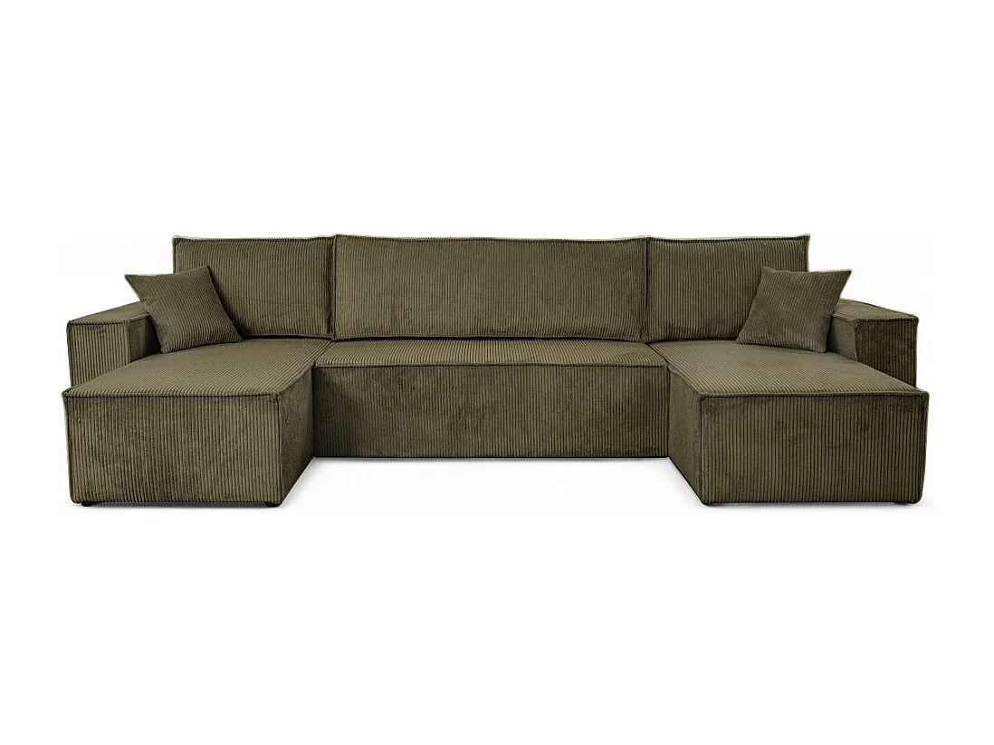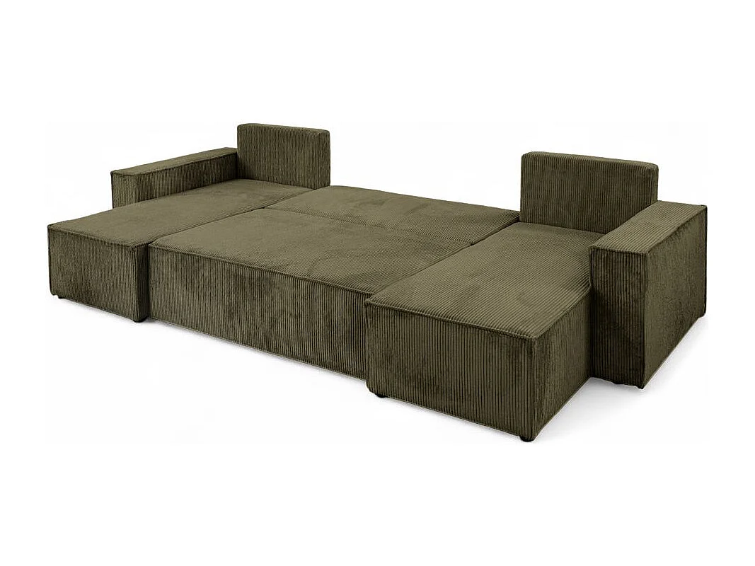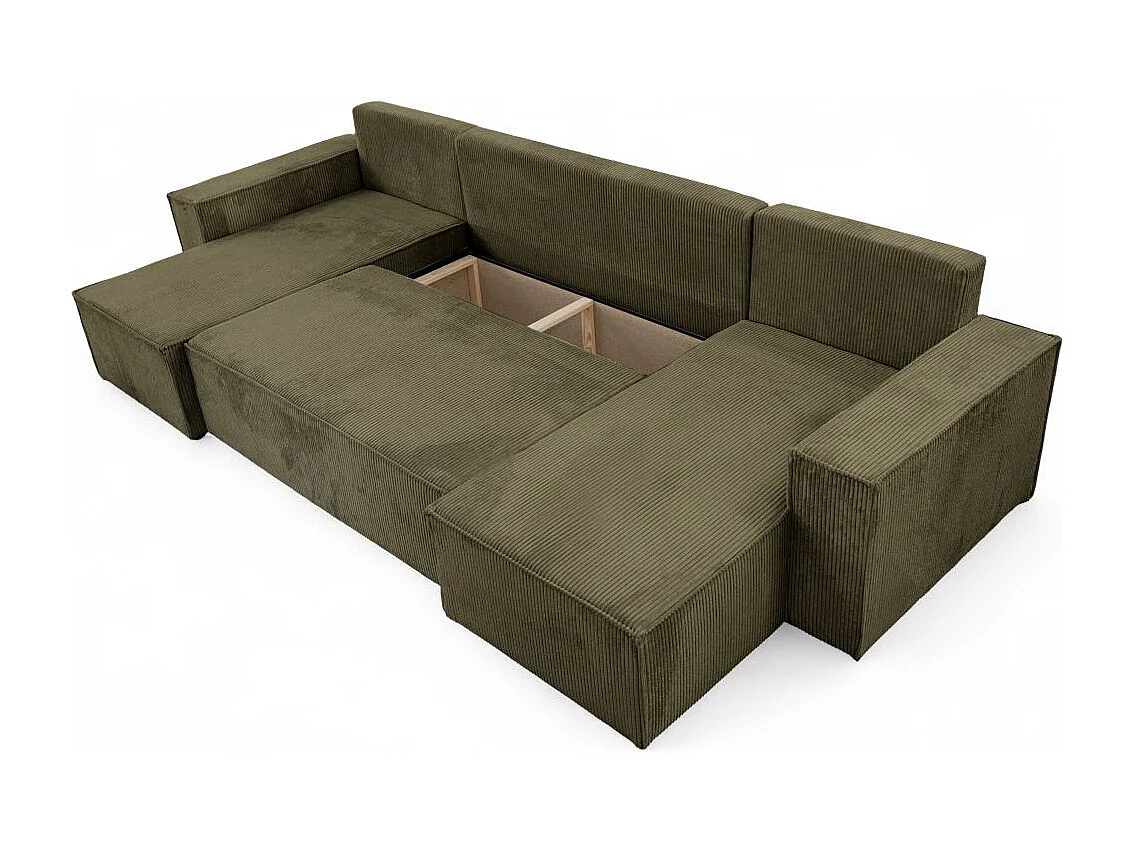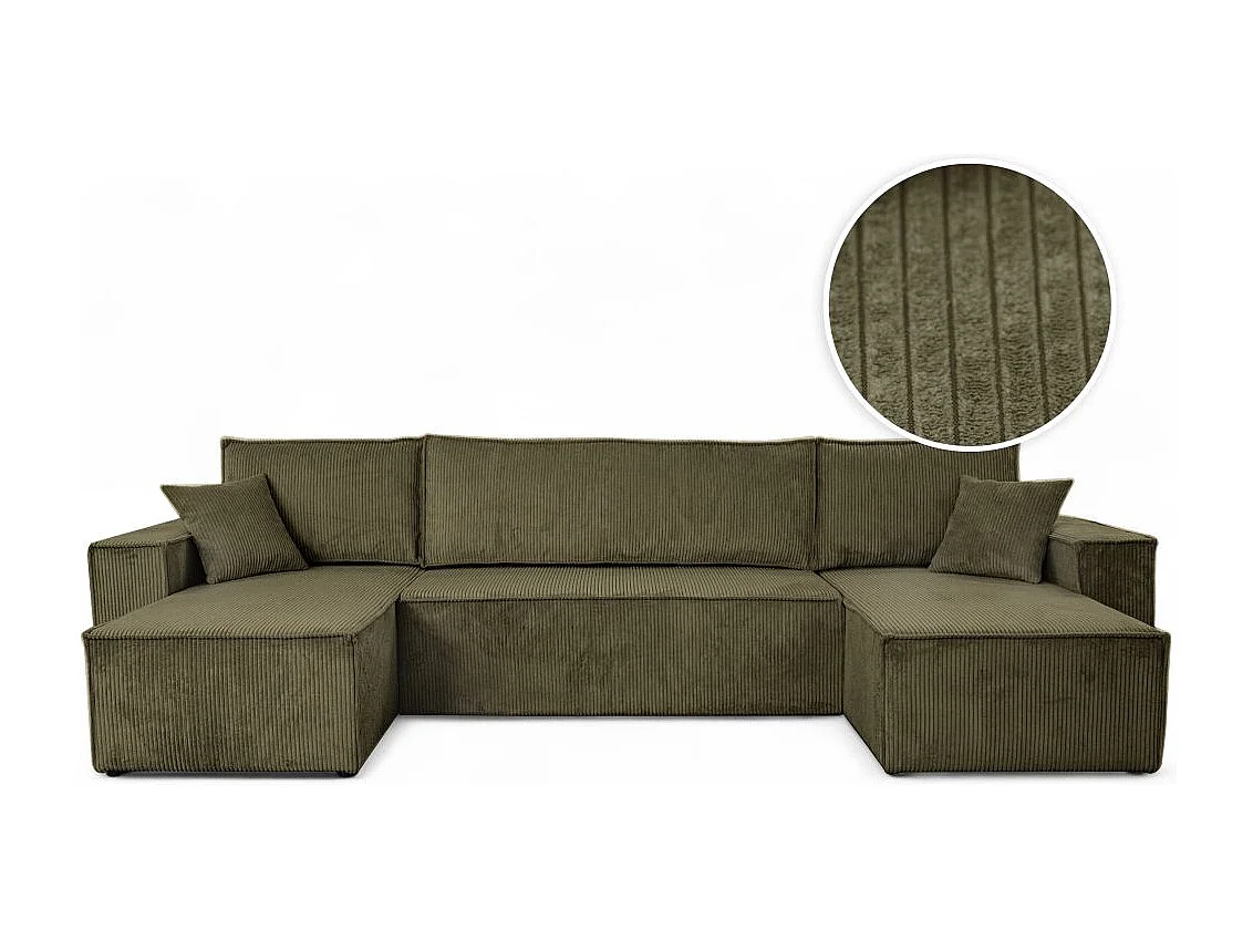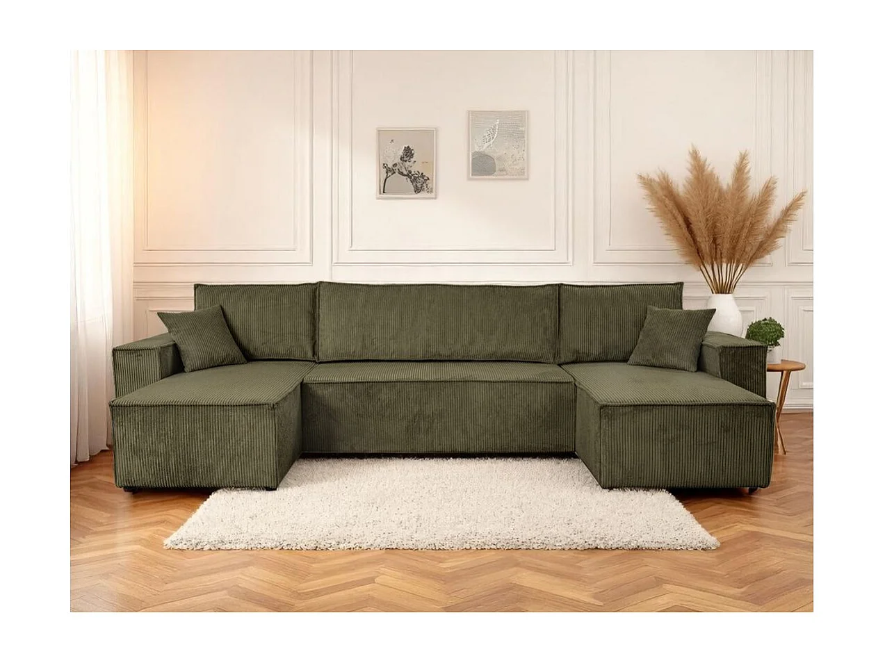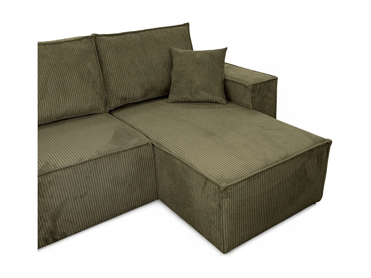 Canapé d'angle FARAH panoramique convertible 6 places en velours côtelé - Vert kaki