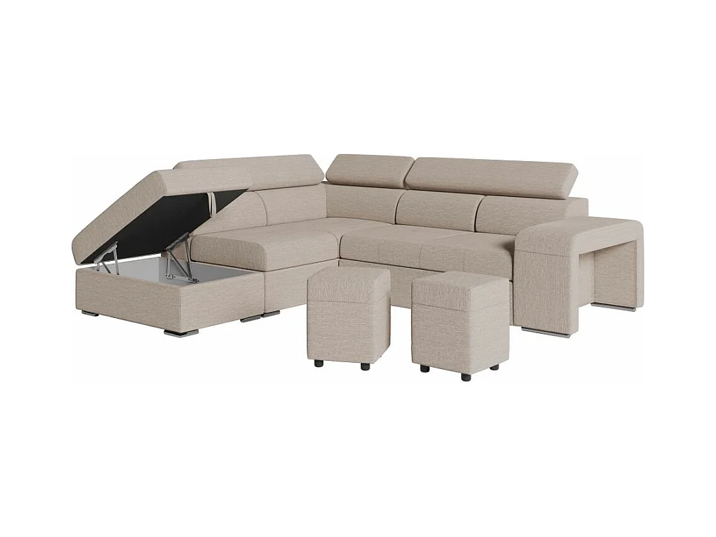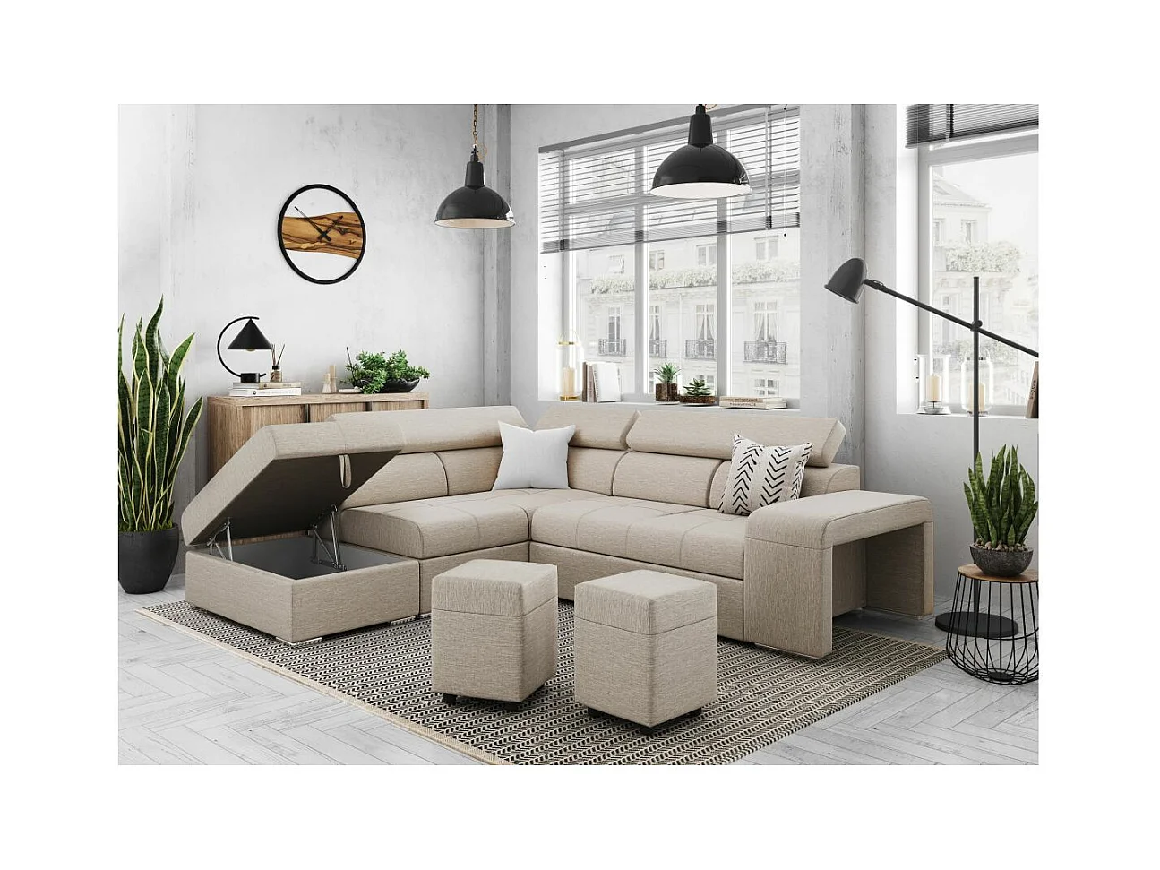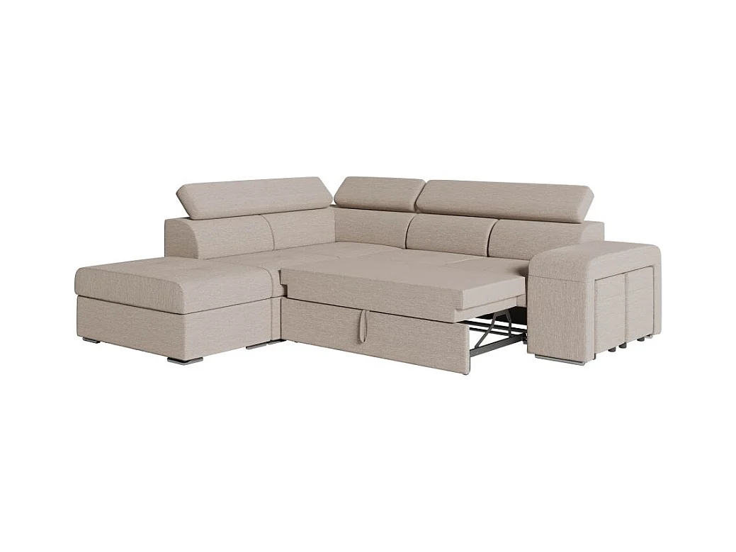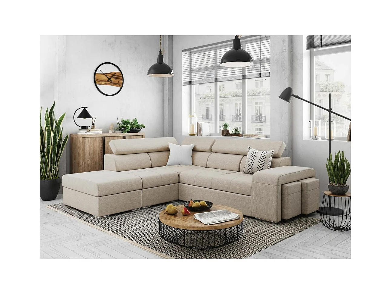 Canapé d'angle gauche 3 places Soan convertible en tissu - Beige - L262 x P220 x H76cm - Loungitude