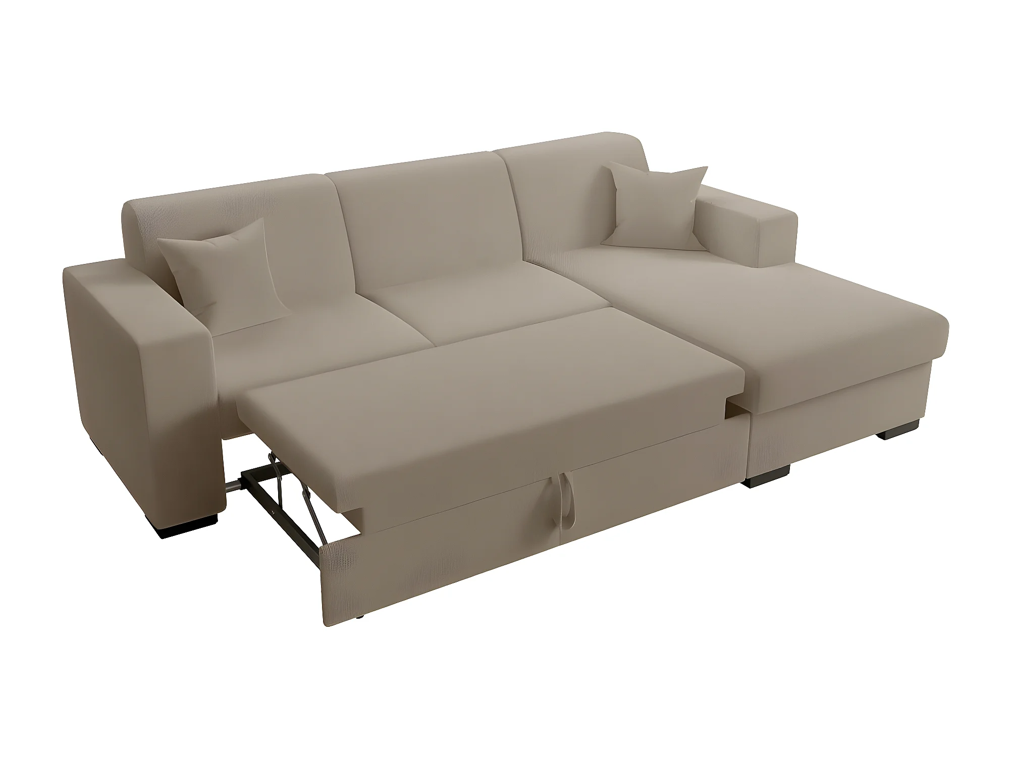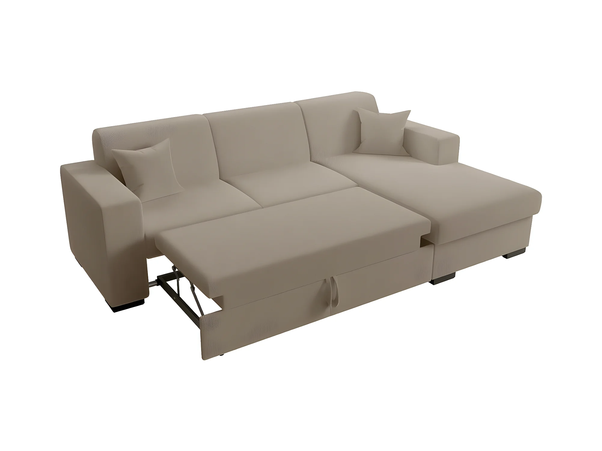 Canapé d'angle droit 4 places Fuji XL convertible avec coffre en tissu bouclette - Taupe - L262 x P157 x H83cm - Loungitude