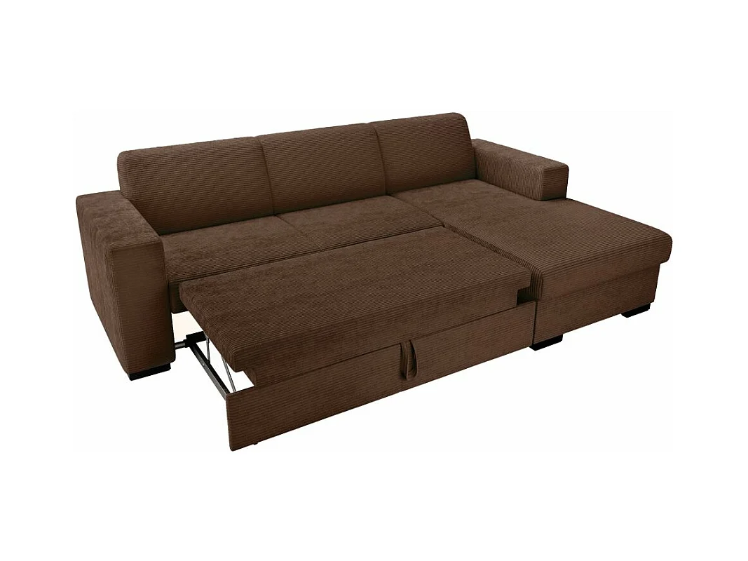 Canapé d'angle droit 4 places Fuji XL convertible avec coffre en velours côtelé - Marron - L262 x P157 x H83cm - Loungitude