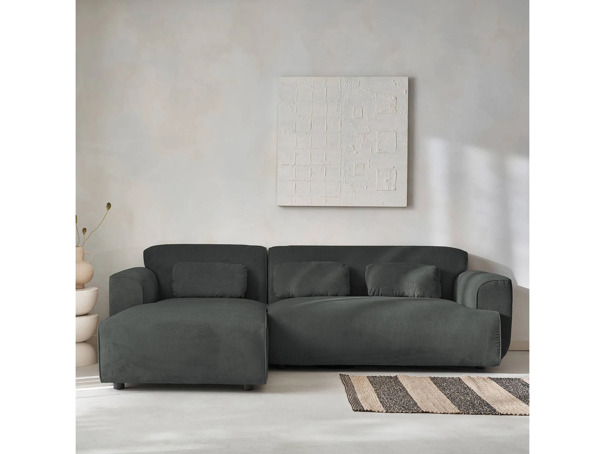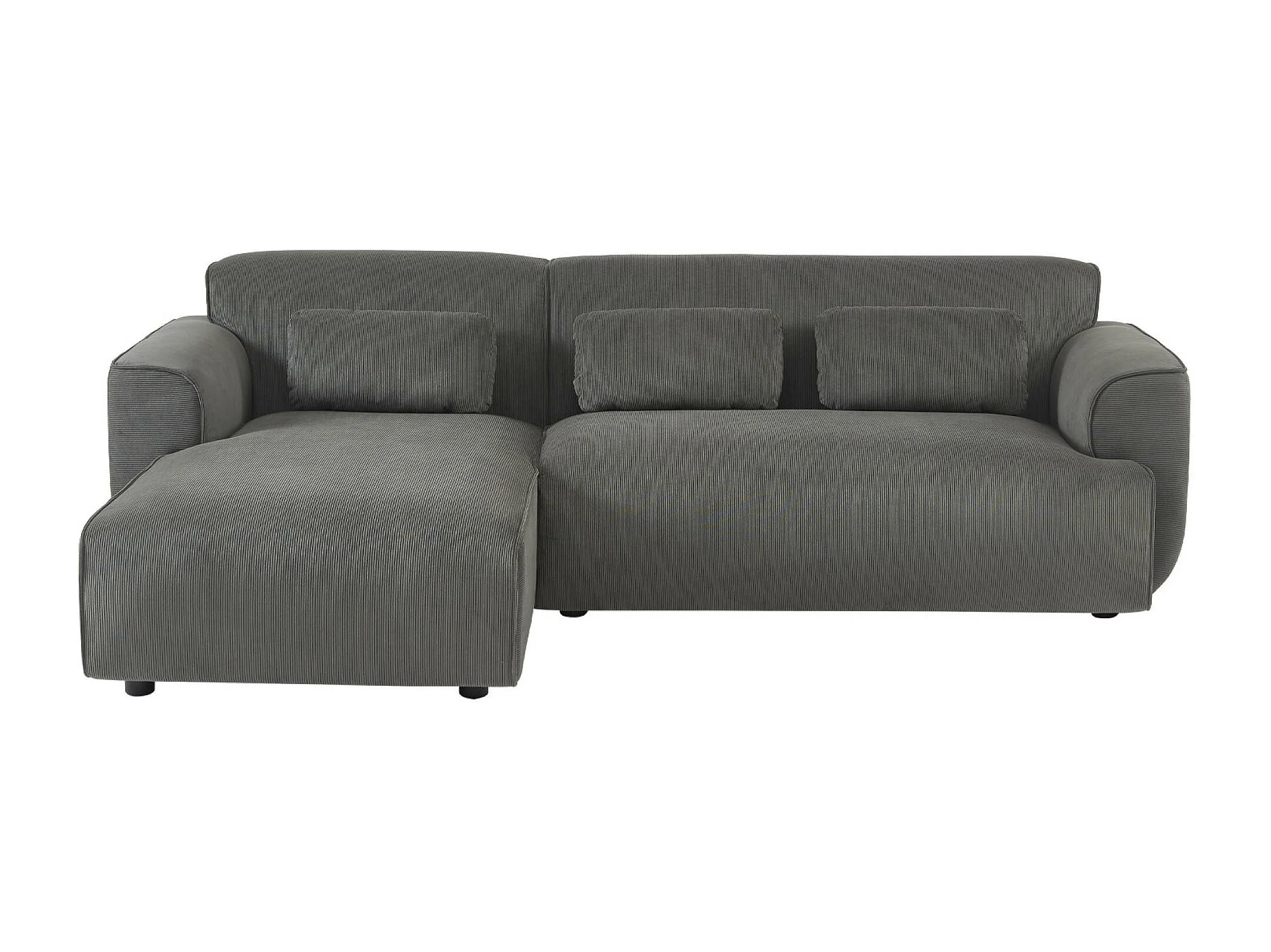 Canapé d'angle gauche. 2 à 3 places. velours côtelé gris. Wallas L 196 x P 151 / 91 / x H 73cm