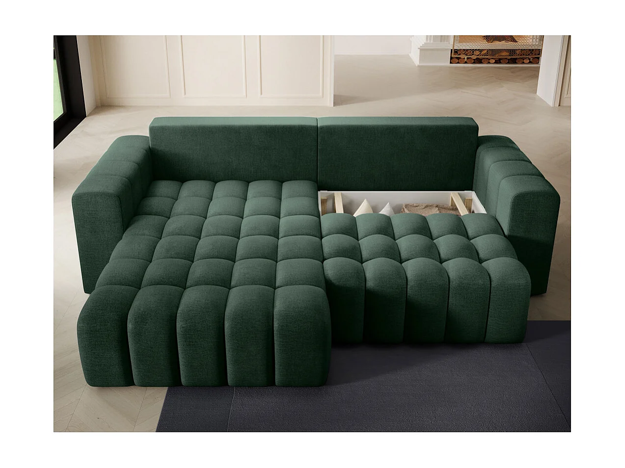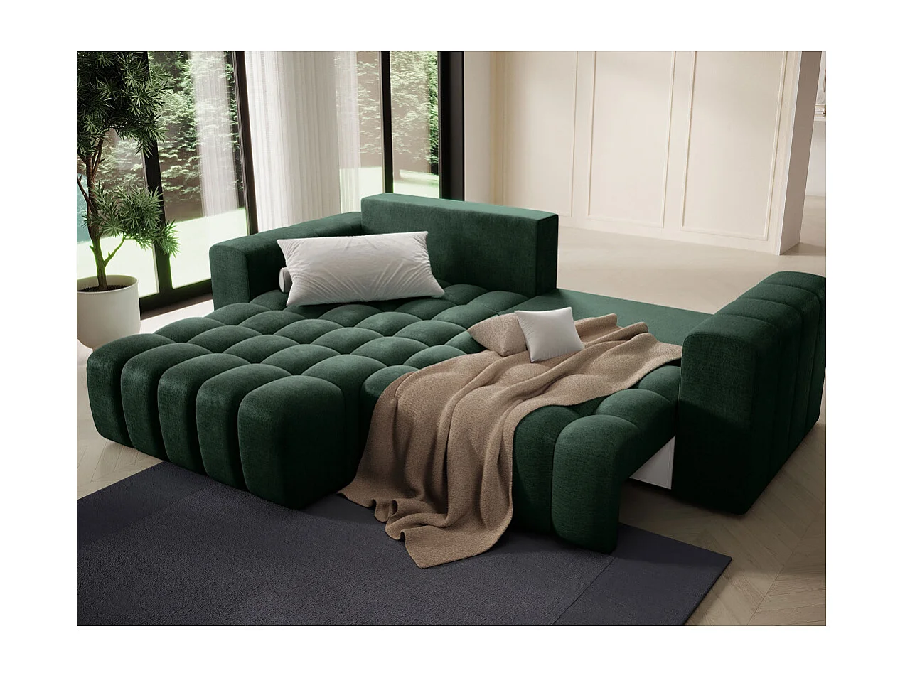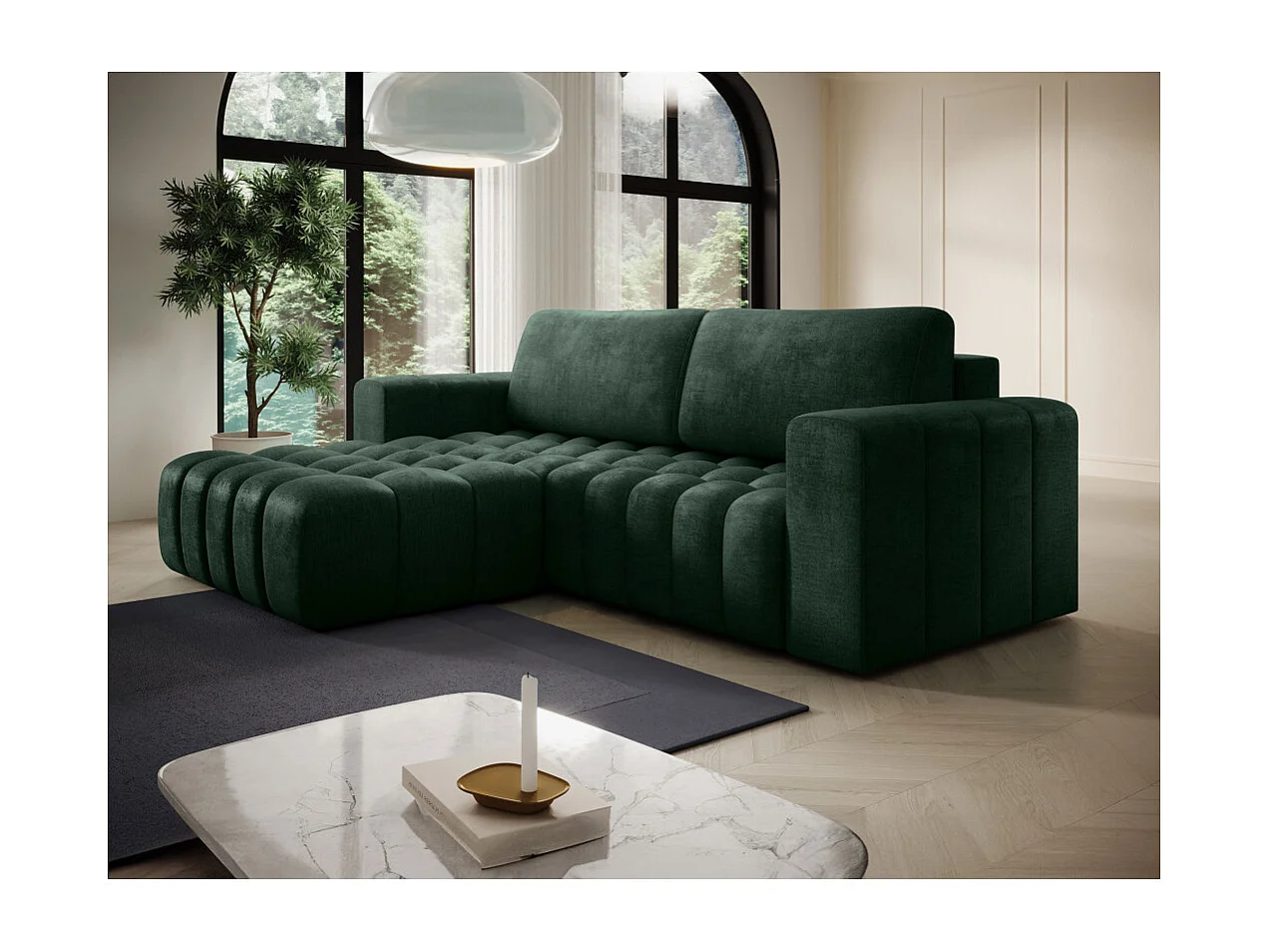 Canapé d'angle gauche 3 places ASSIA convertible en tissu - Vert foncé