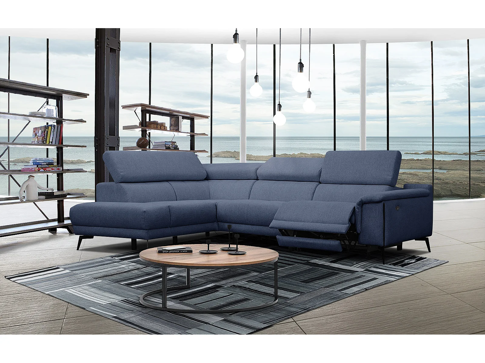 Canapé d'angle gauche 4 places avec un relax électrique tissu bleu foncé - Matera