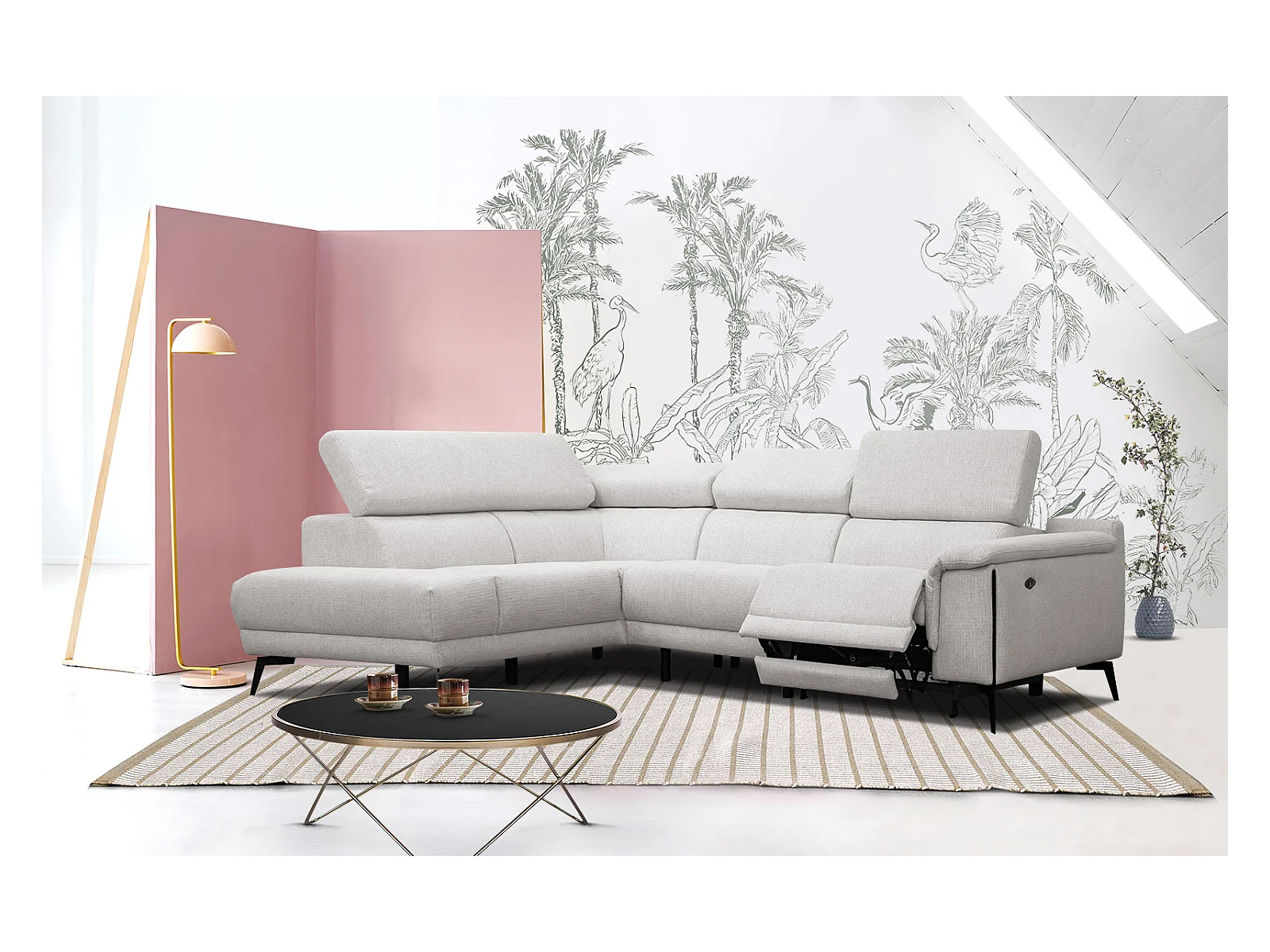 Canapé d'angle gauche 4 places avec un relax électrique tissu écru - Matera