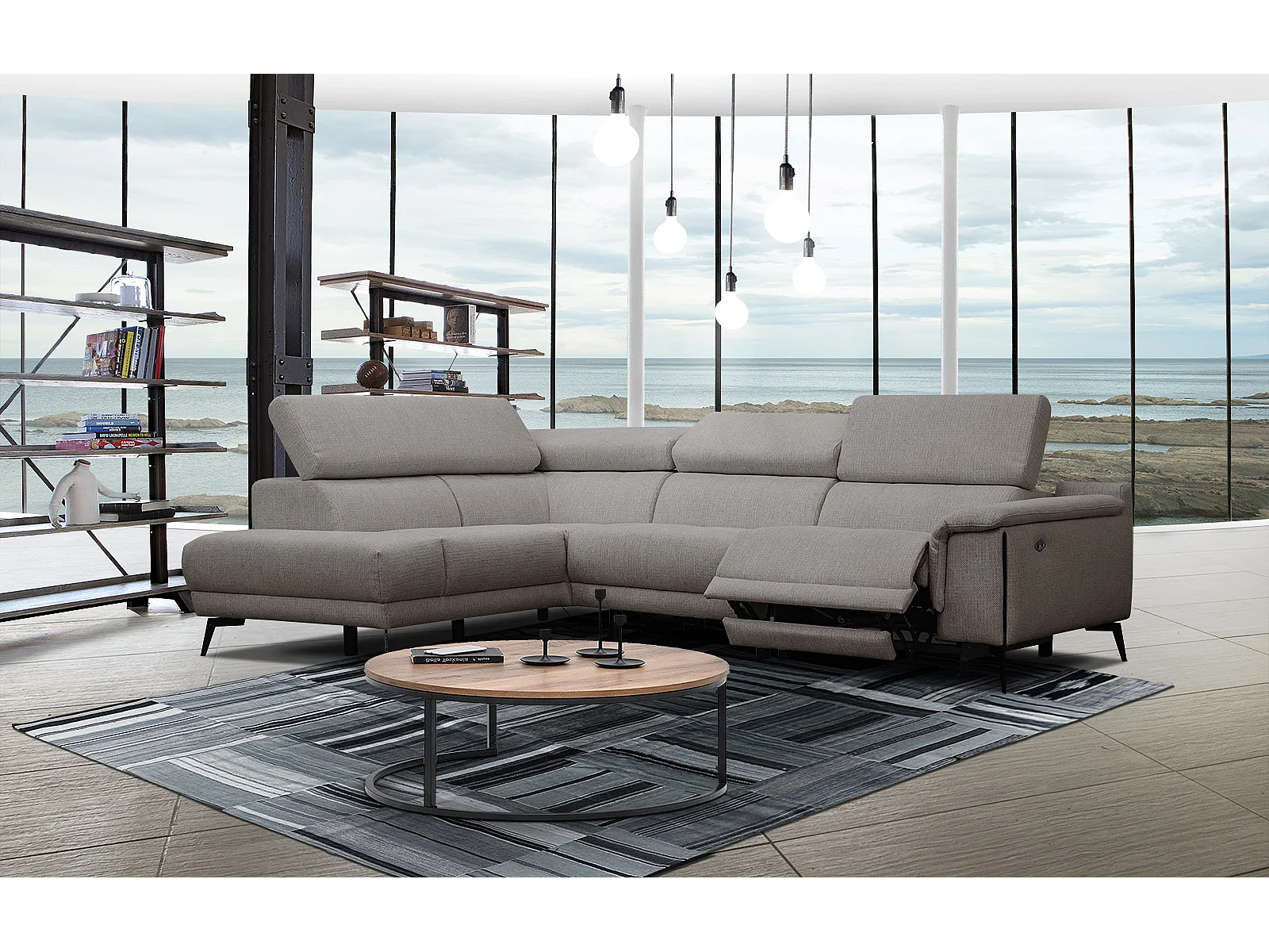 Canapé d'angle gauche 4 places avec un relax électrique tissu taupe - Matera