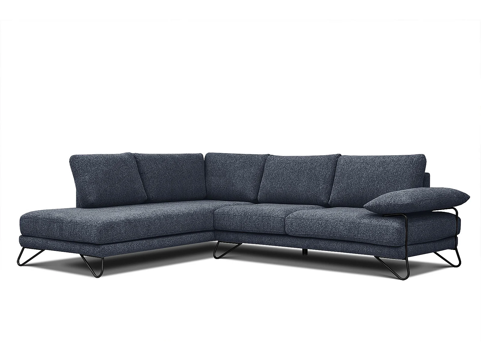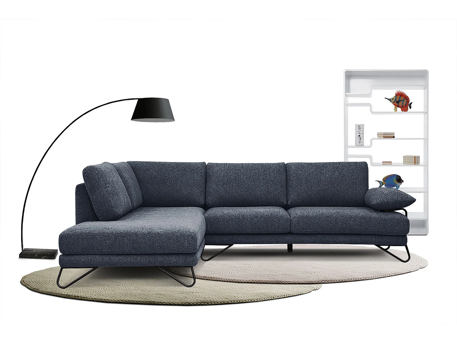 Canapé d'angle gauche 5 places tissu bleu - Lori