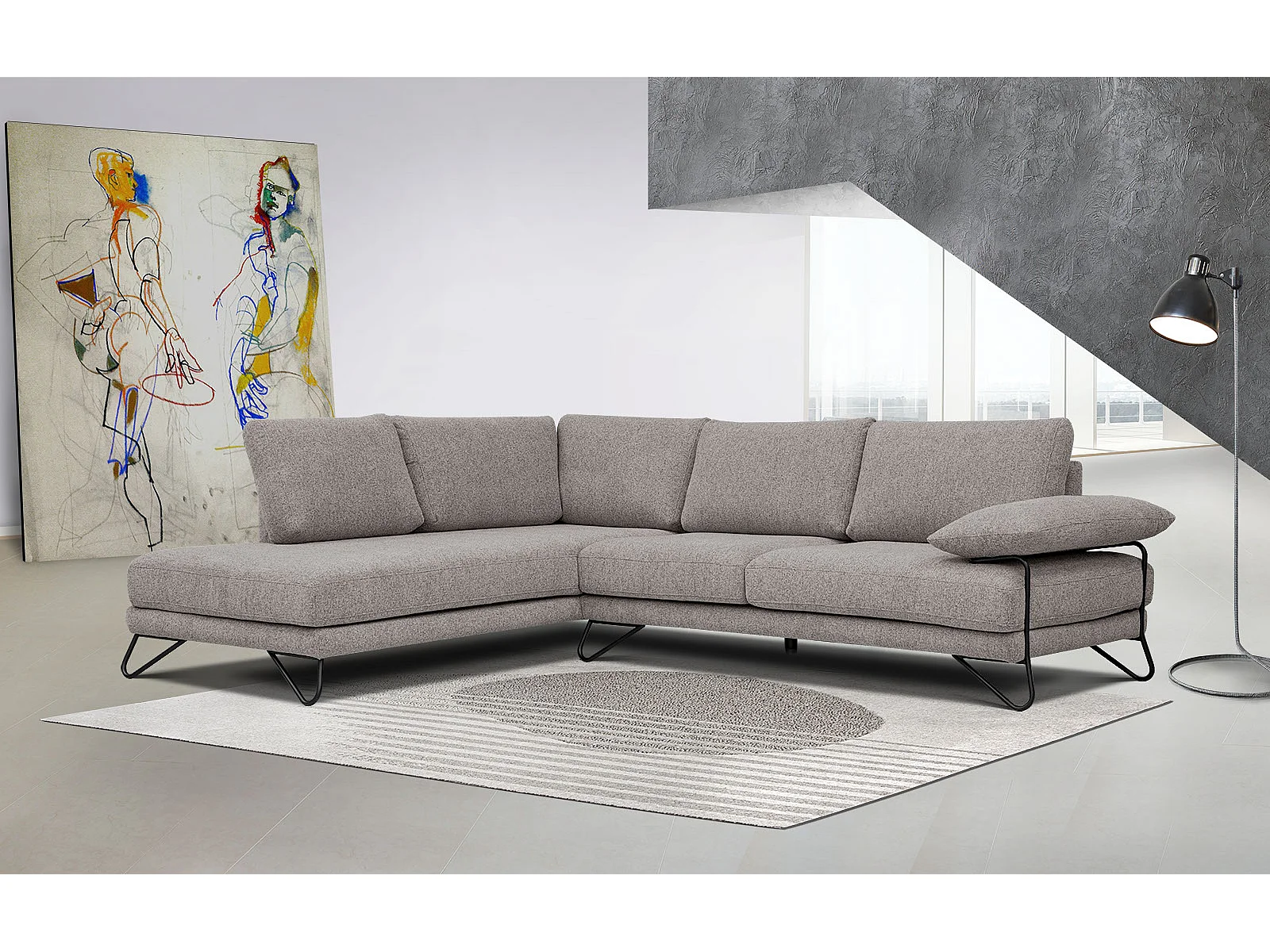 Canapé d'angle gauche 5 places tissu marron clair - Lori