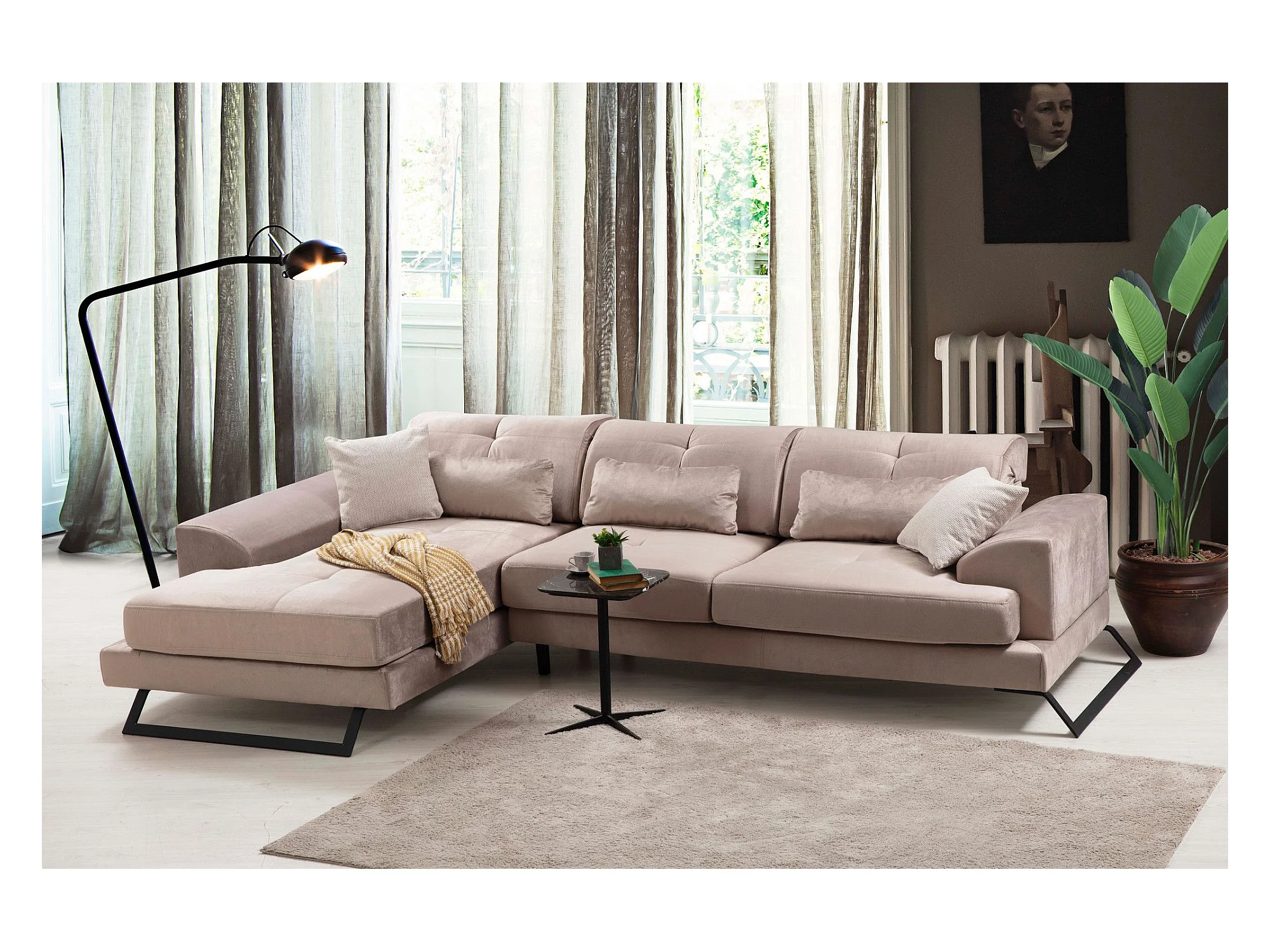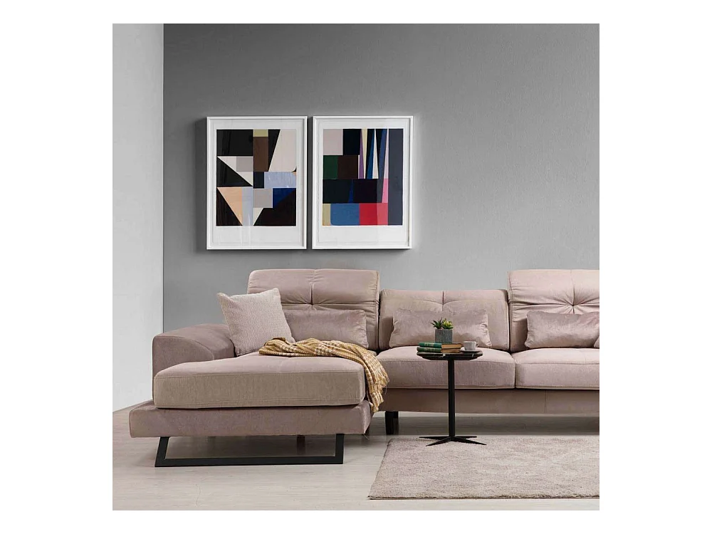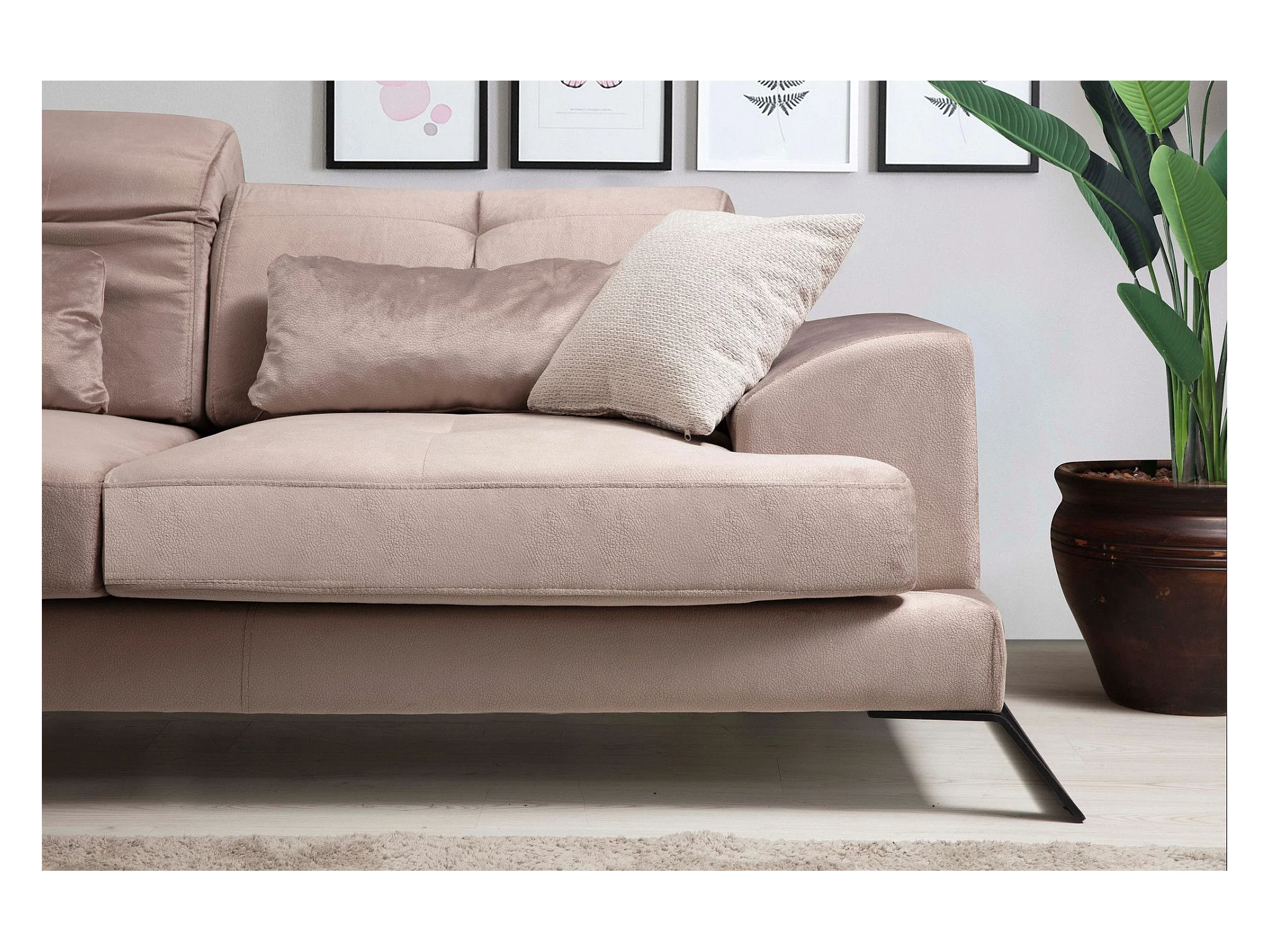 Canapé d'angle gauche avec 5 coussins Cyclades Velours texturé effet simili de vachette Beige