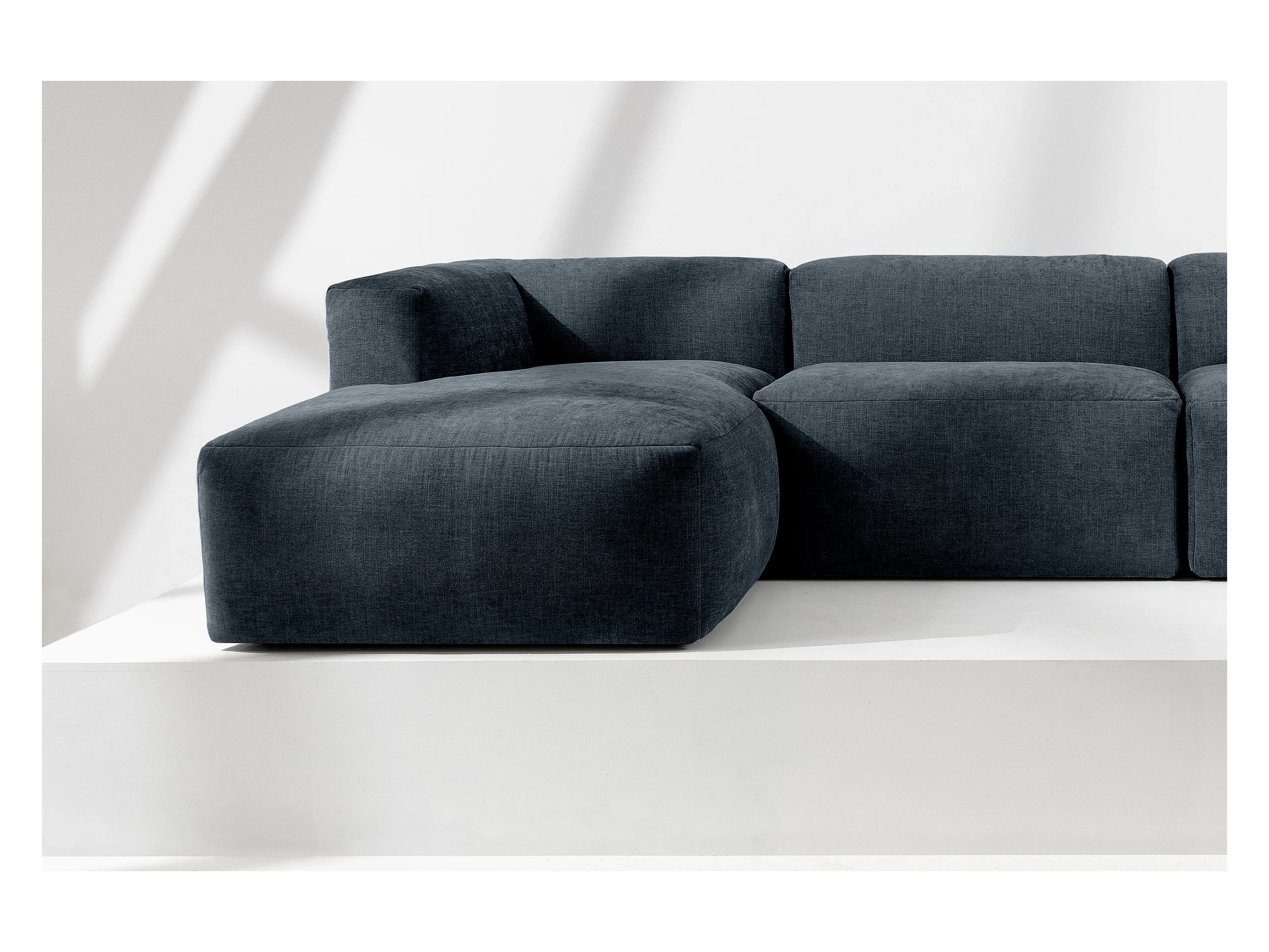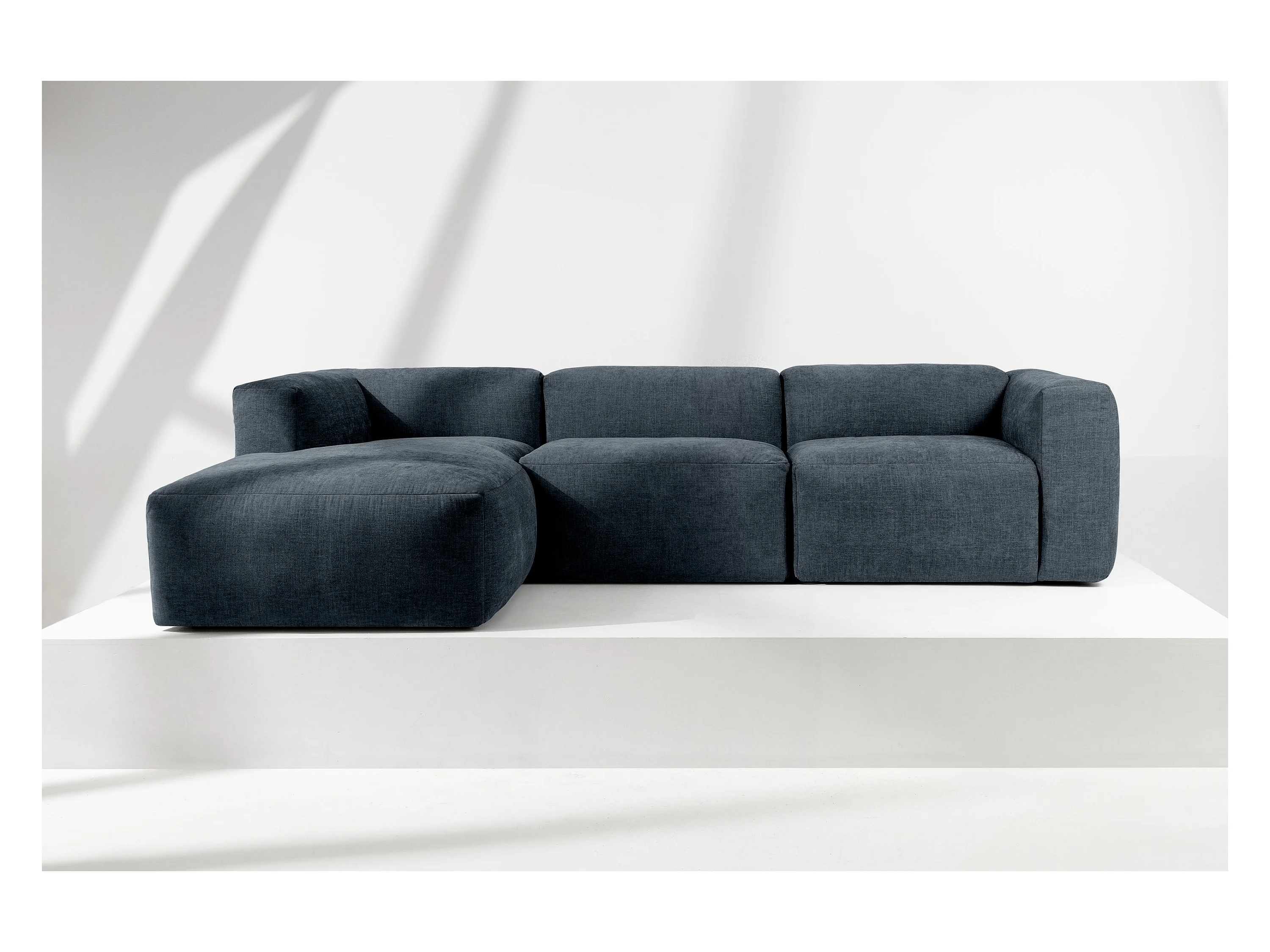 Canapé d'angle gauche avec assise extrêmement moelleuse et confortable - bleu foncé - BUFFO