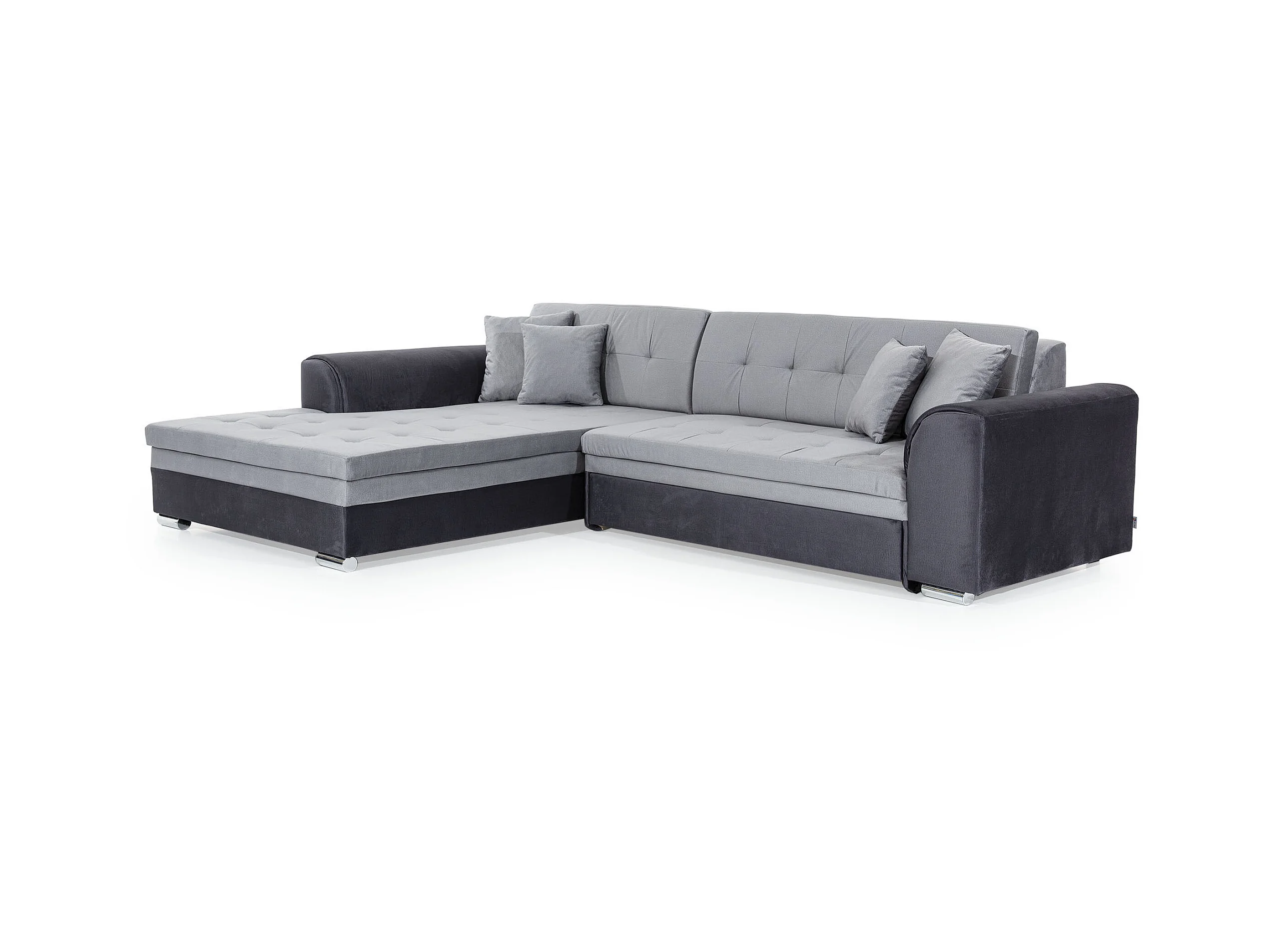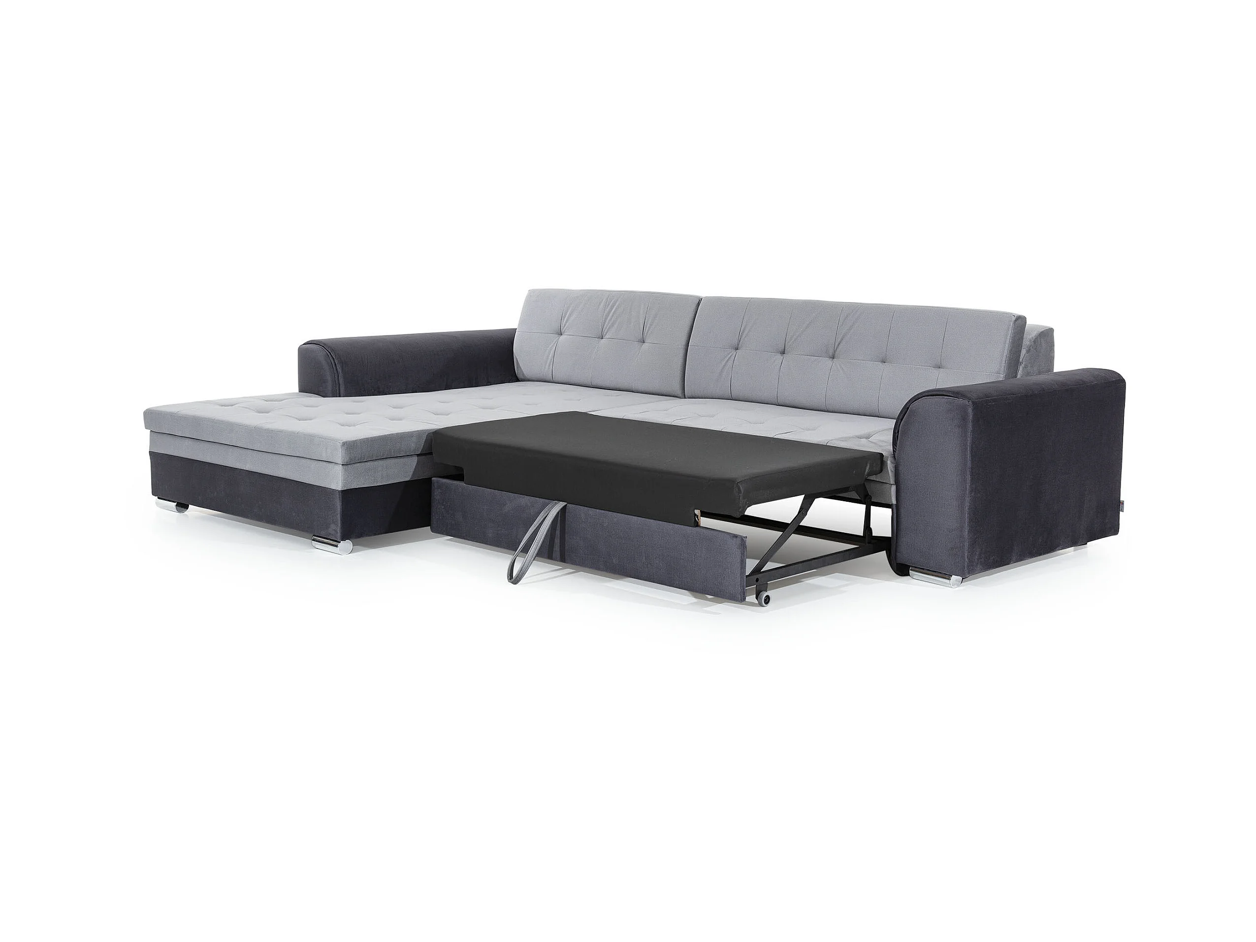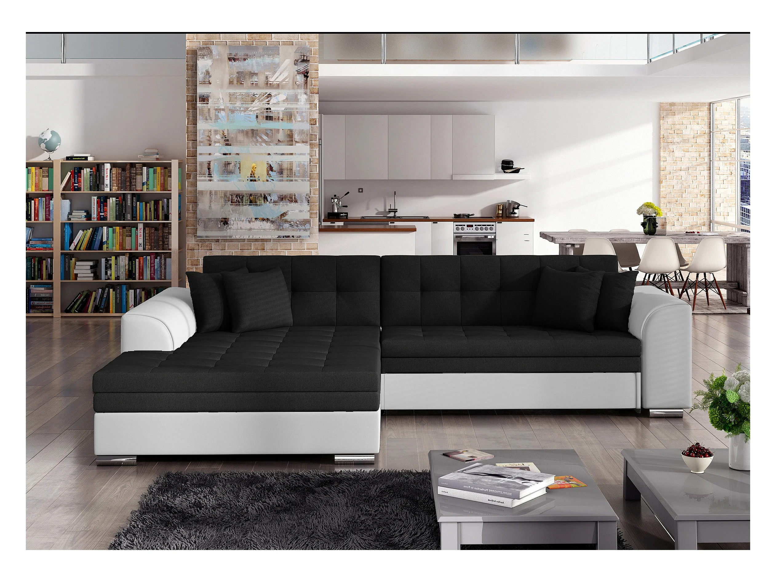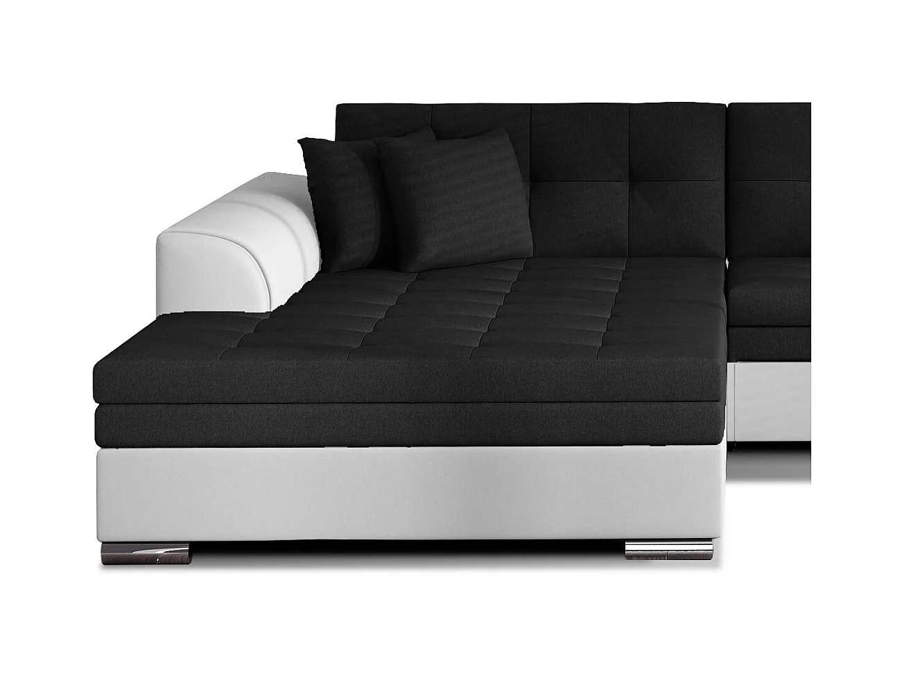 Canapé d'angle gauche convertible 4 places tissu noir et simili blanc Looka 295cm