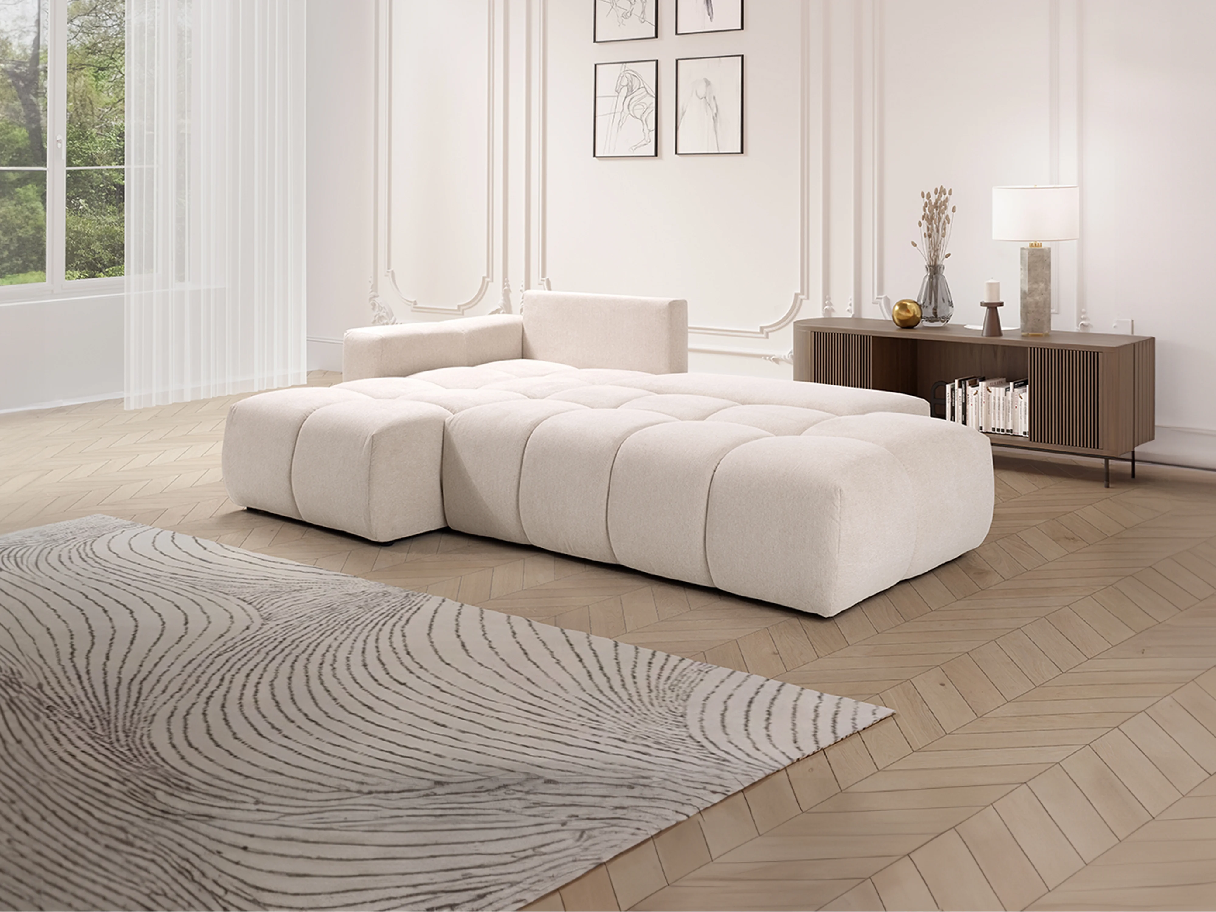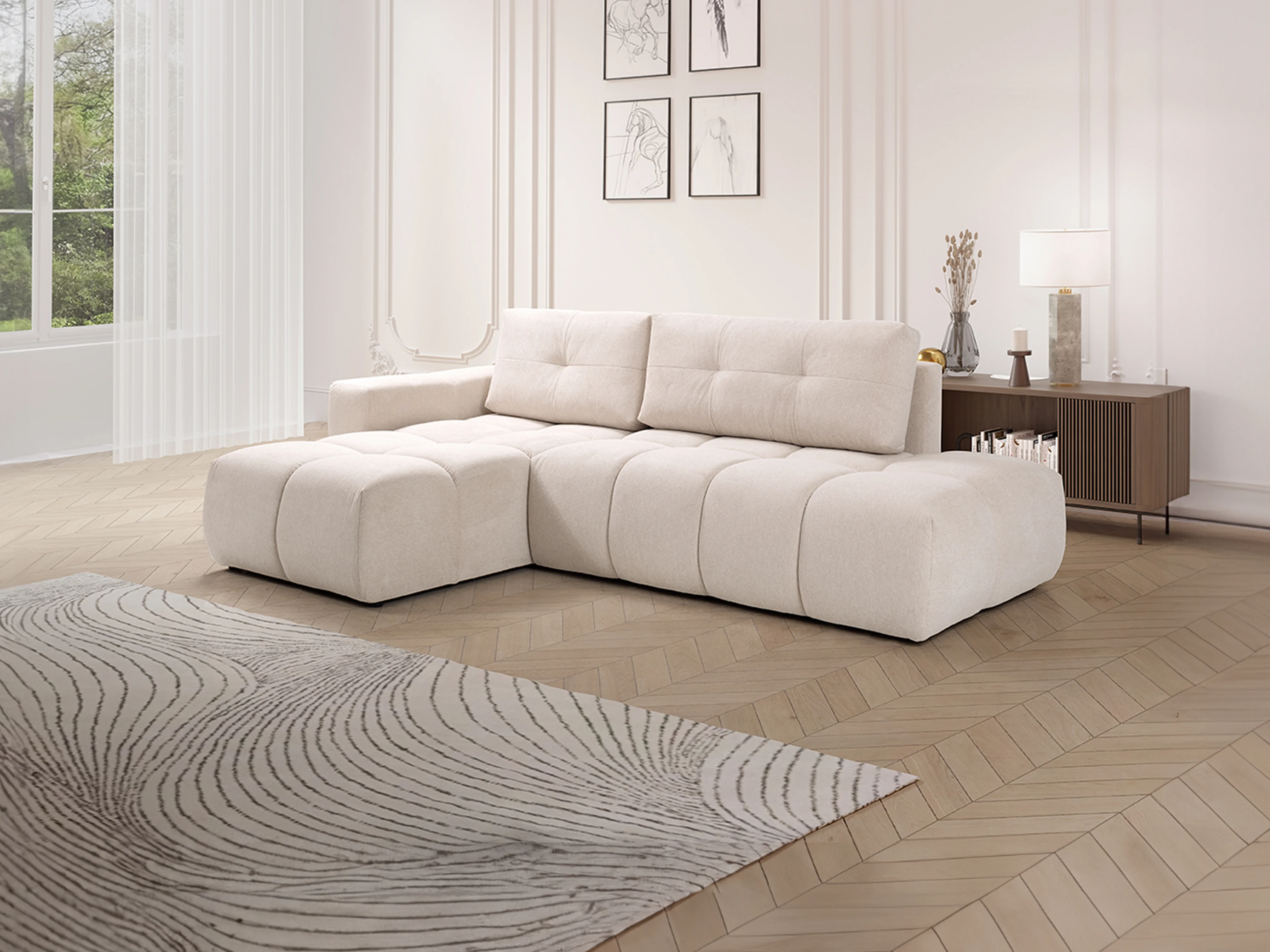 Canapé d'angle gauche convertible en tissu texturé beige TRIMALDI