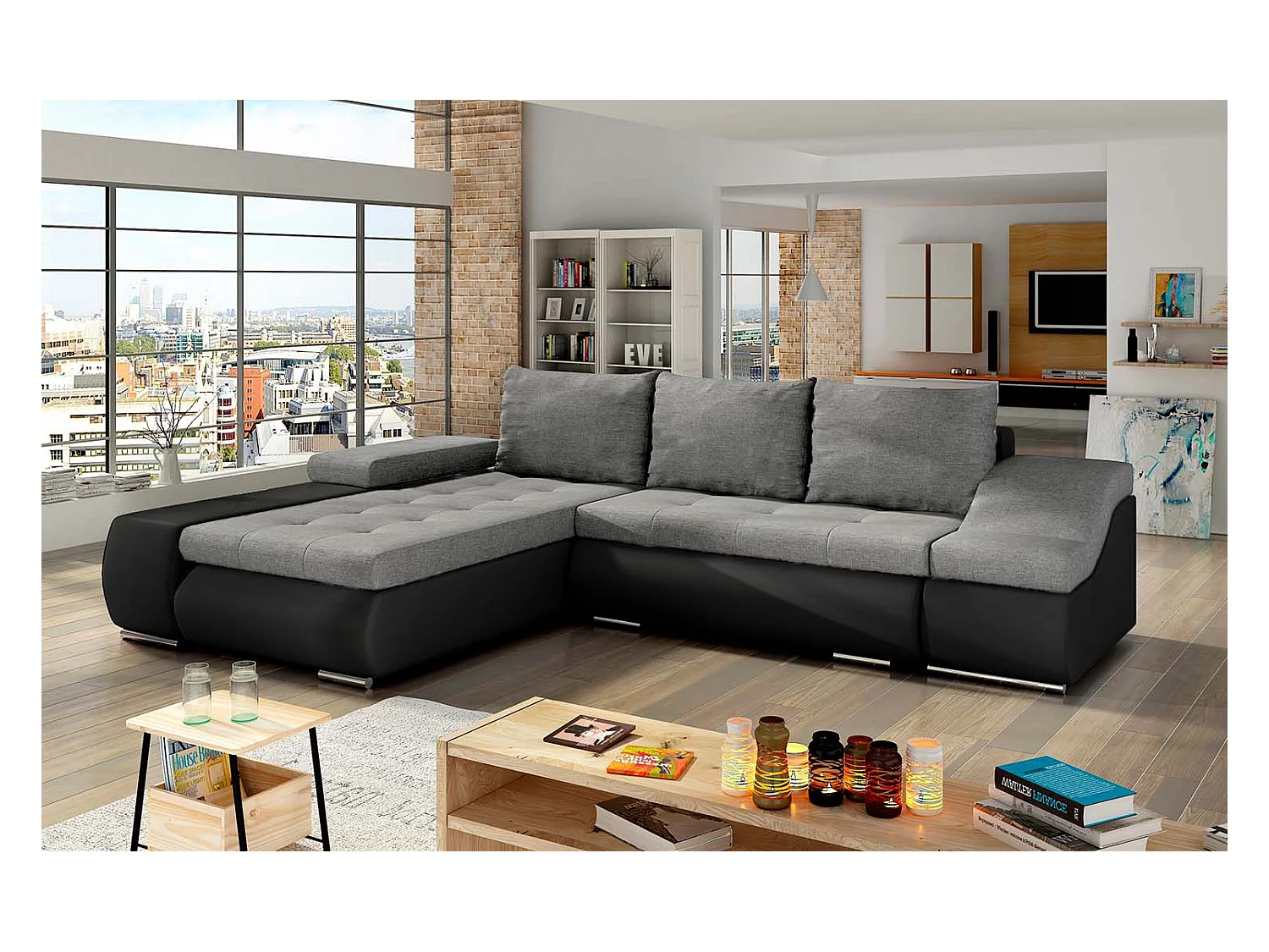 Canapé d'angle gauche convertible Lizio Gris et Noir
