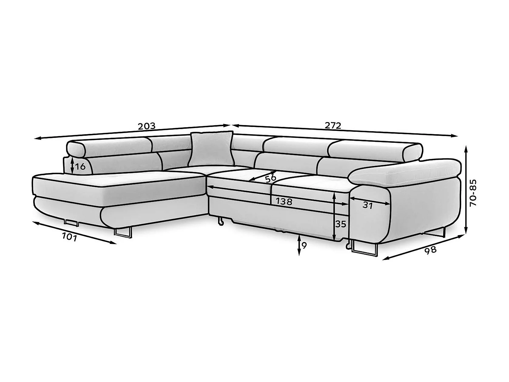 Canapé d'angle gauche convertible Marius tissu Beige